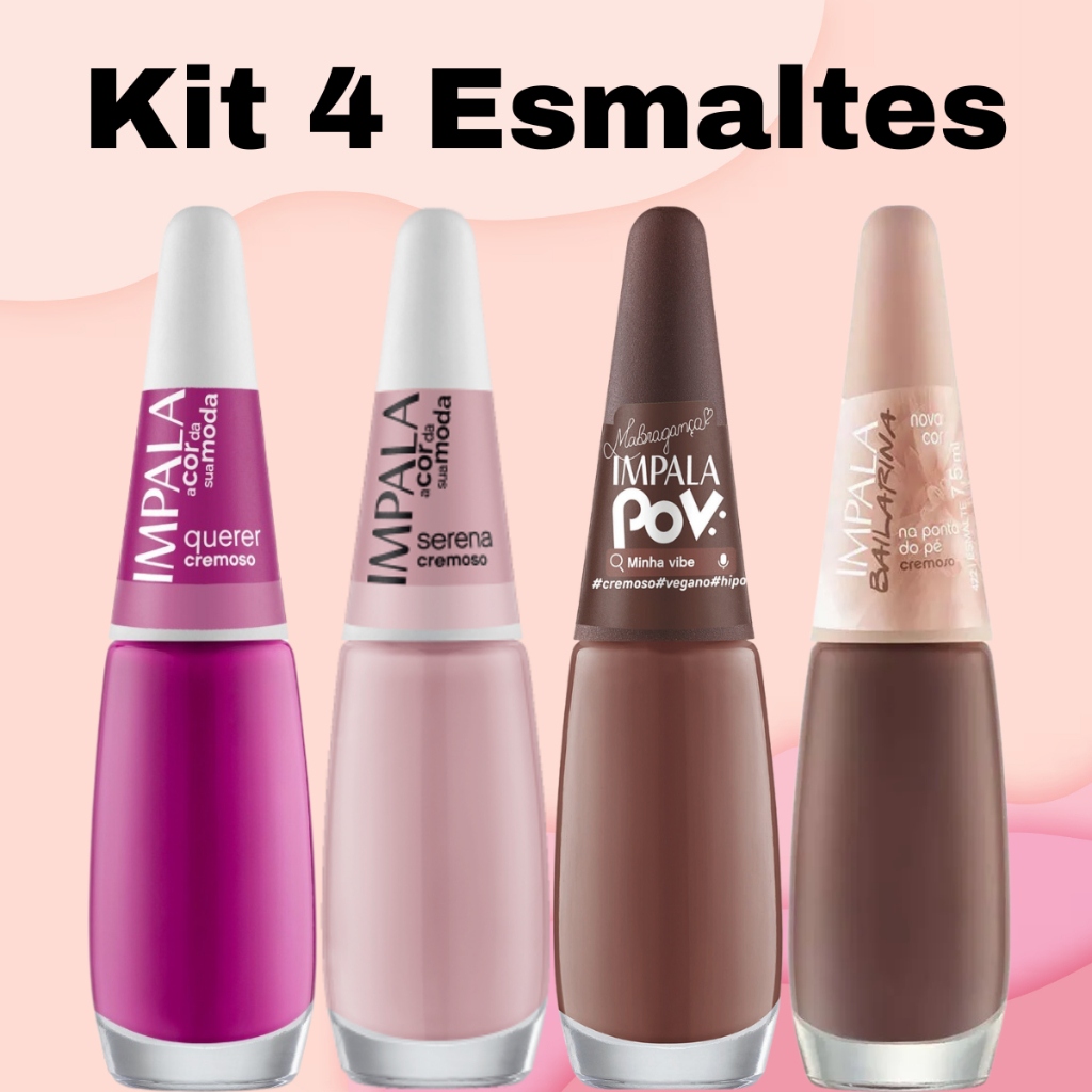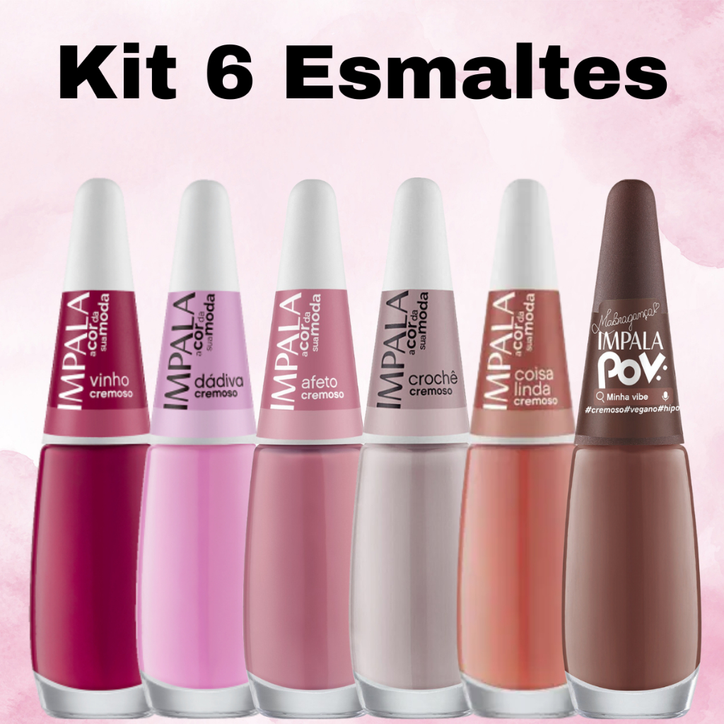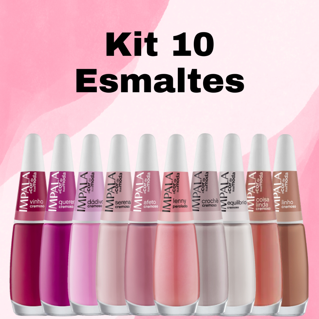 Kit 12 Esmaltes Impala Lançamento Cores Variadas Rosas Nude Manicures