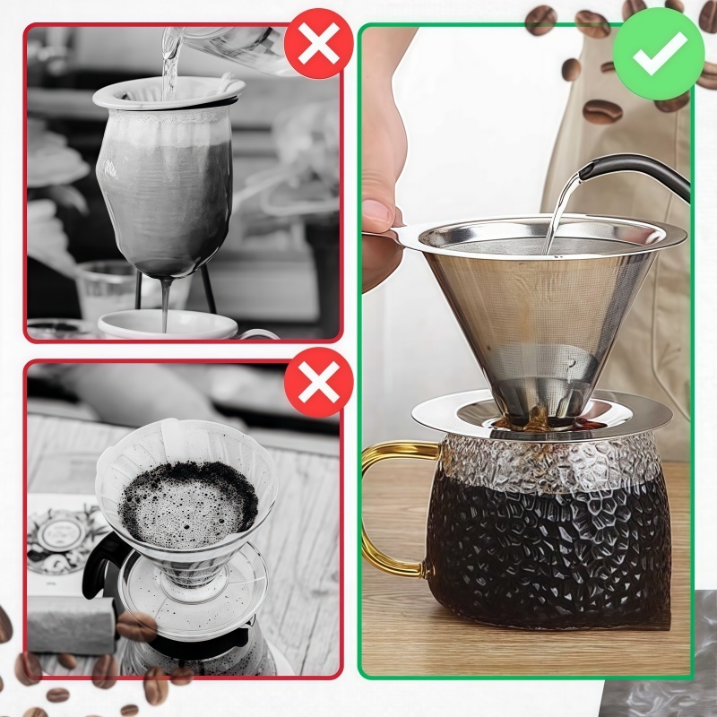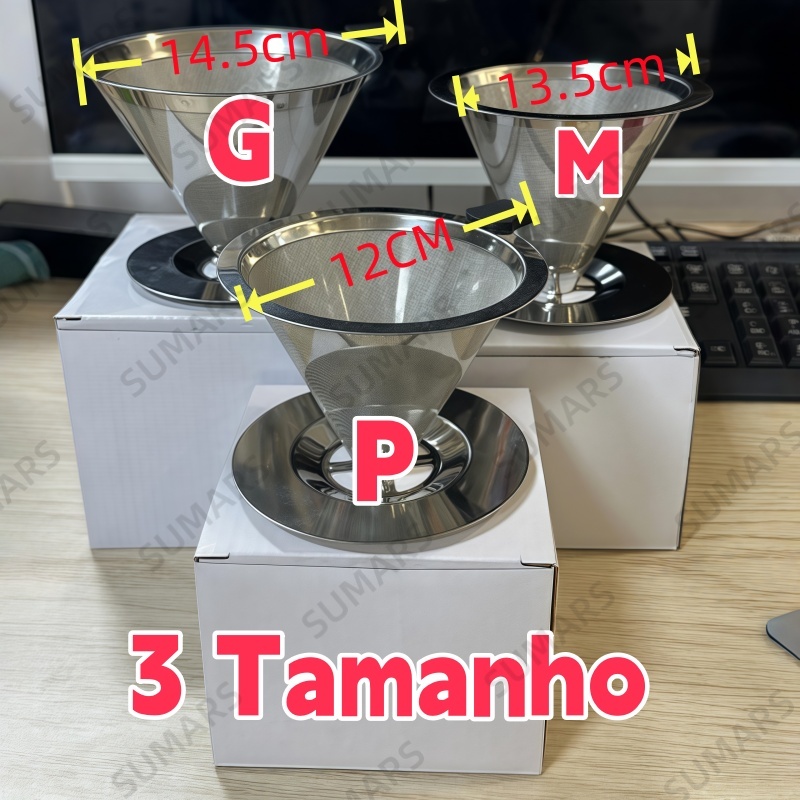 14/13/12CM Filtro Café Coador Mini Inox Sem Uso Papel Reutilizável Alta Densidade Malha Fina Lavável