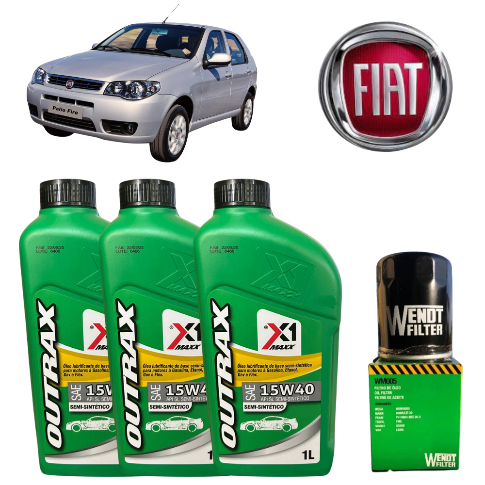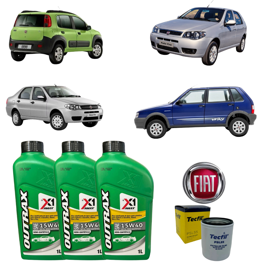 KIT TROCA 3L ÓLEO SEMISSINTÉTICO 15W40 FILTRO DE ÓLEO FIAT PALIO UNO STRADA SIENA CARROS MOTOR FIRE Revisao