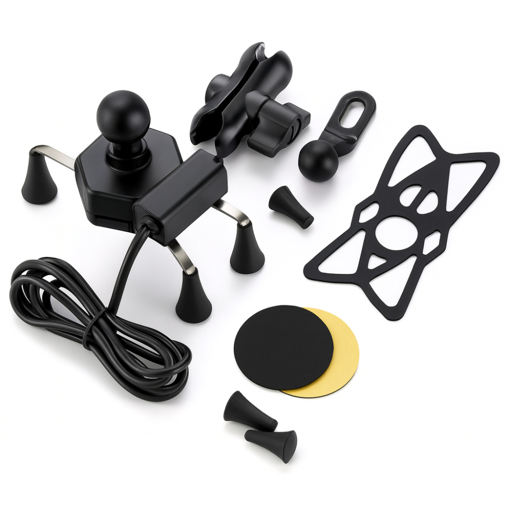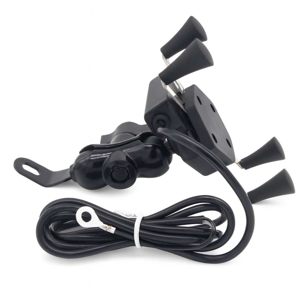 Suporte de Celular com Carregador USB Garra para Moto Fixação no Retrovisor Parafuso do Guidão