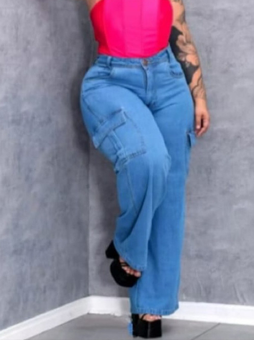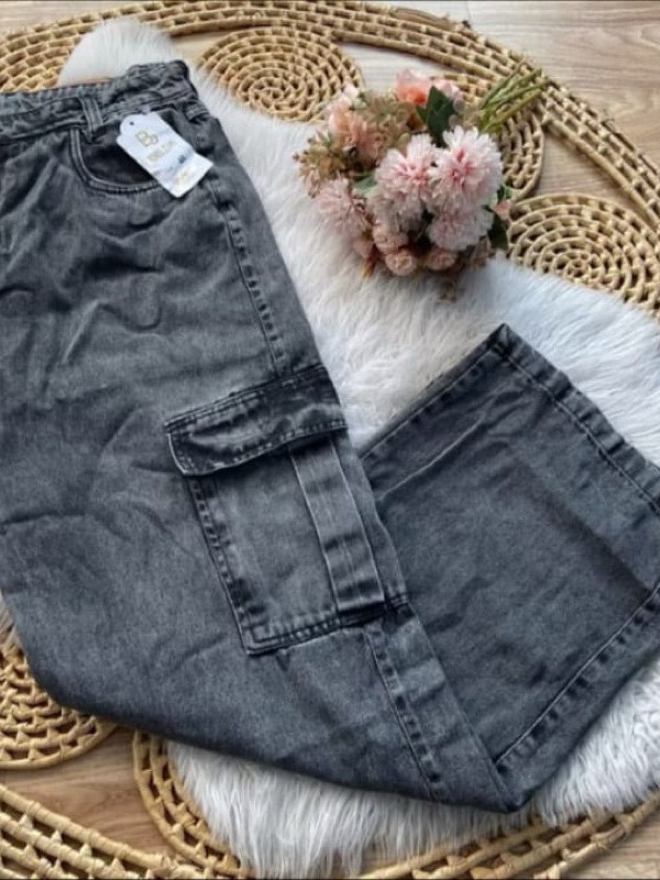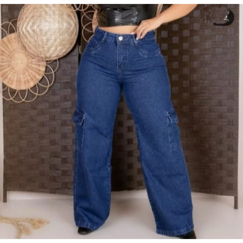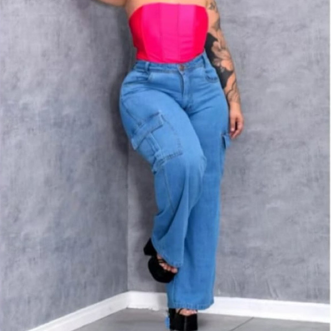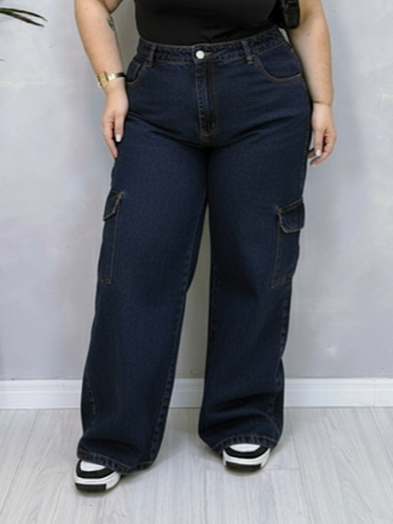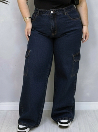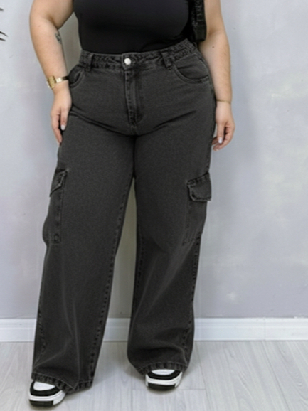 calça cargo feminina wide leg pantalona grafite Plus size Modeladora Cintura Alta Premium