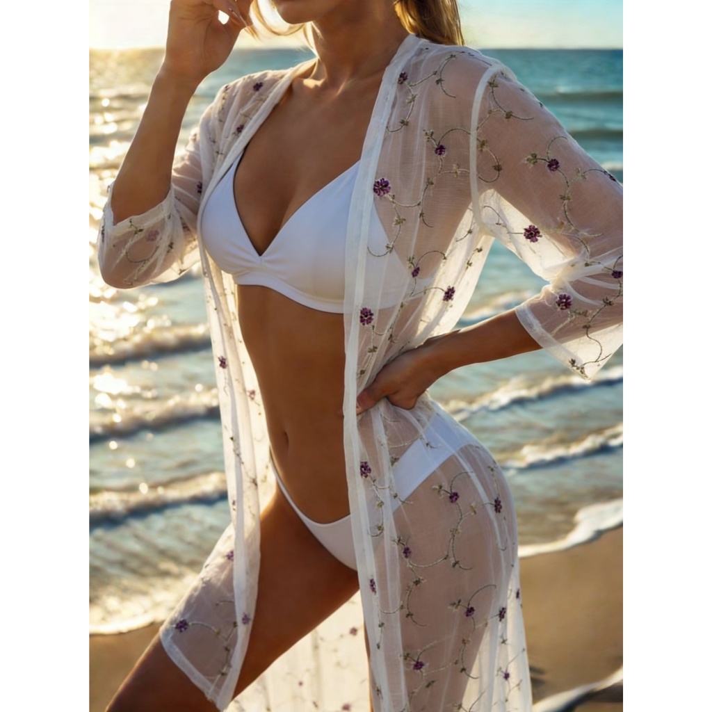Bin Hang - Kimono Feminino Saida de Praia | Protetor Solar | Cardigan Leve de Chiffon | Capa de Verao Para Biquini