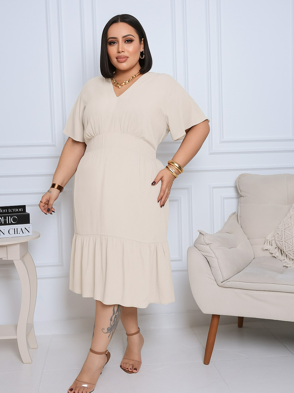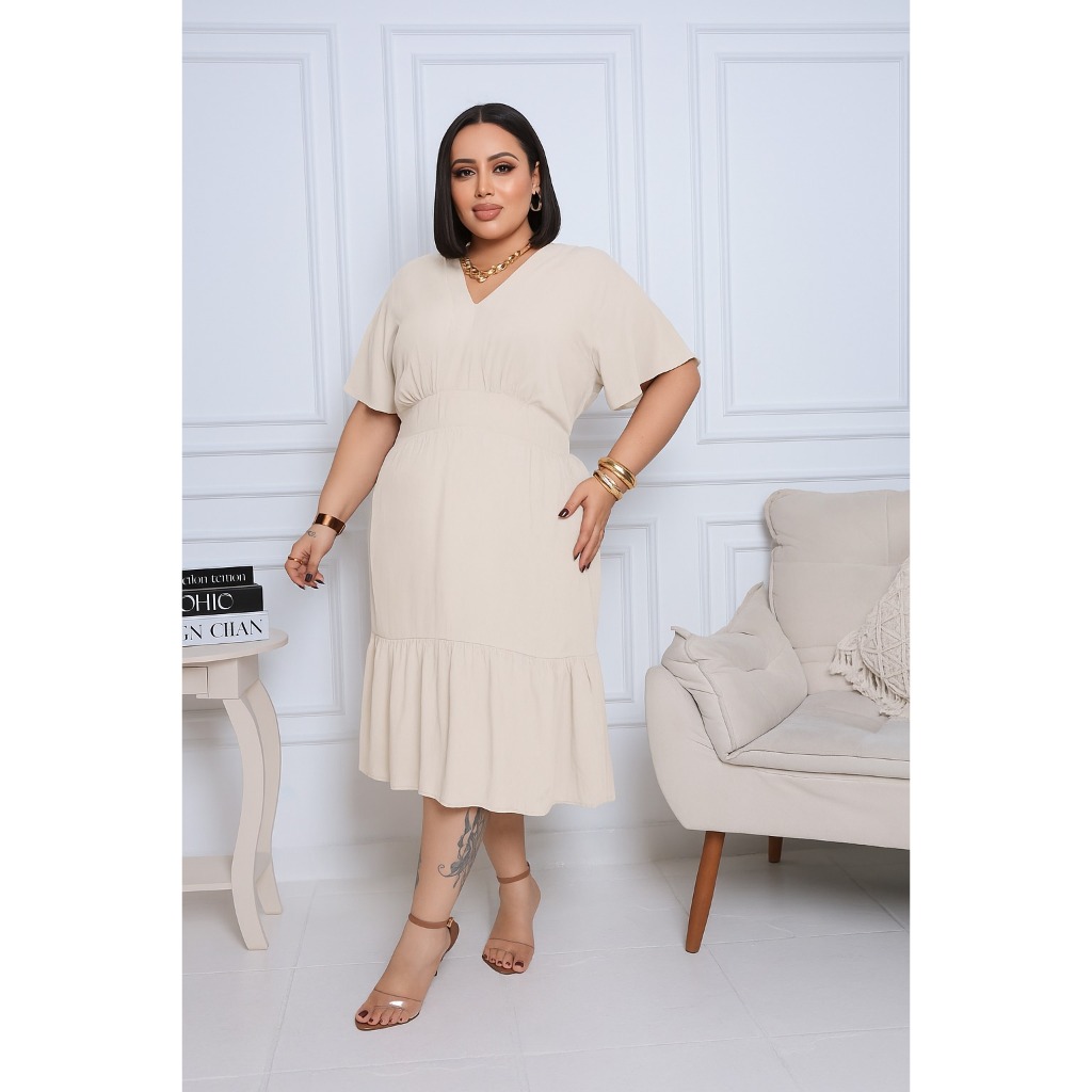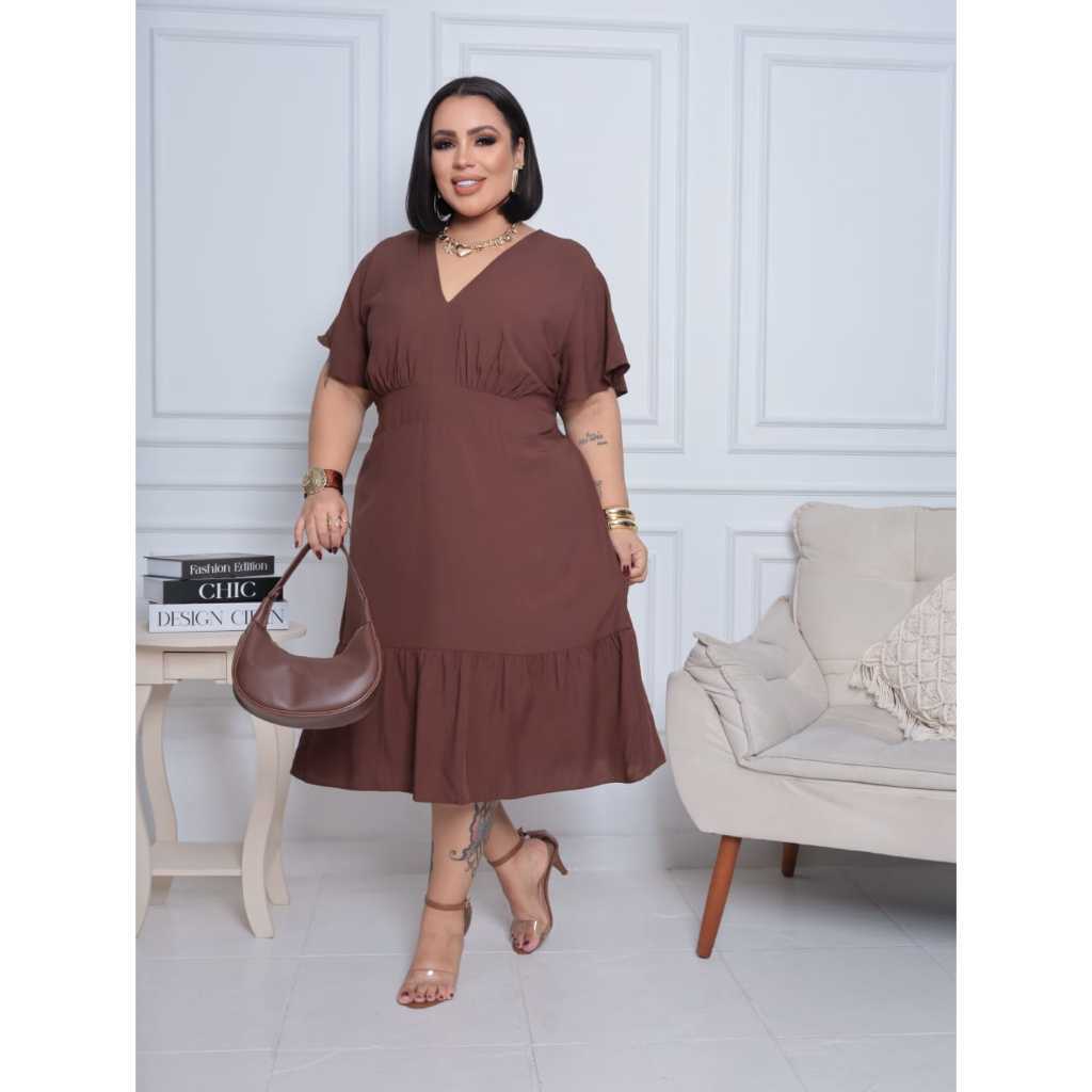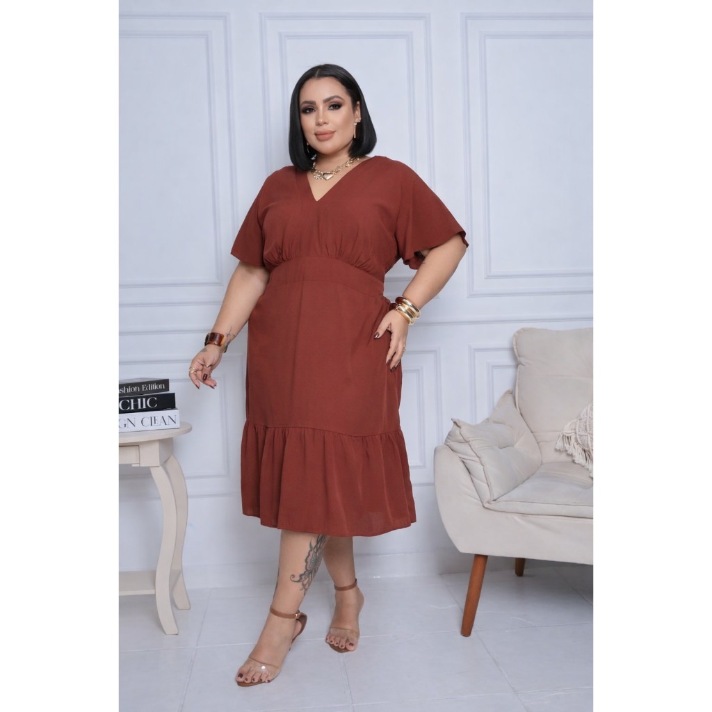 Vestido feminino viscolinho Midi Plus size com manga elegante