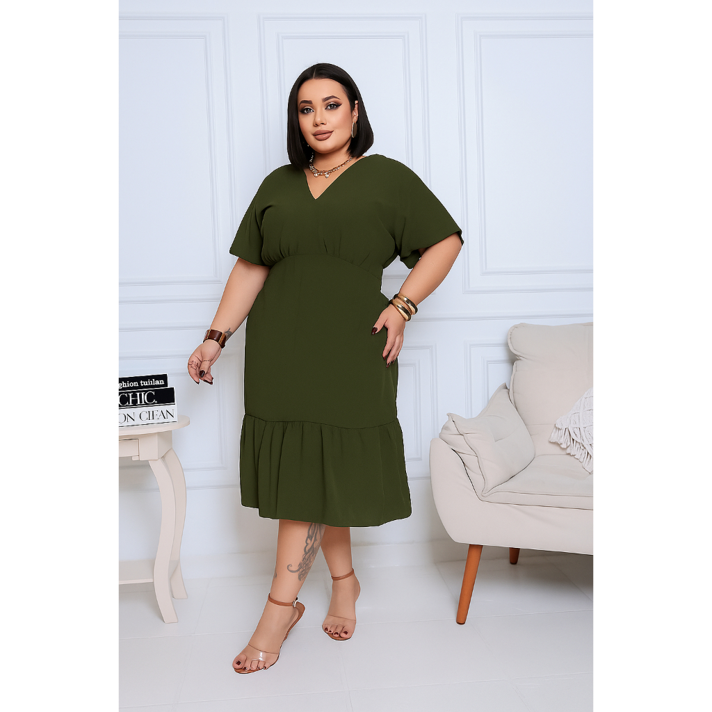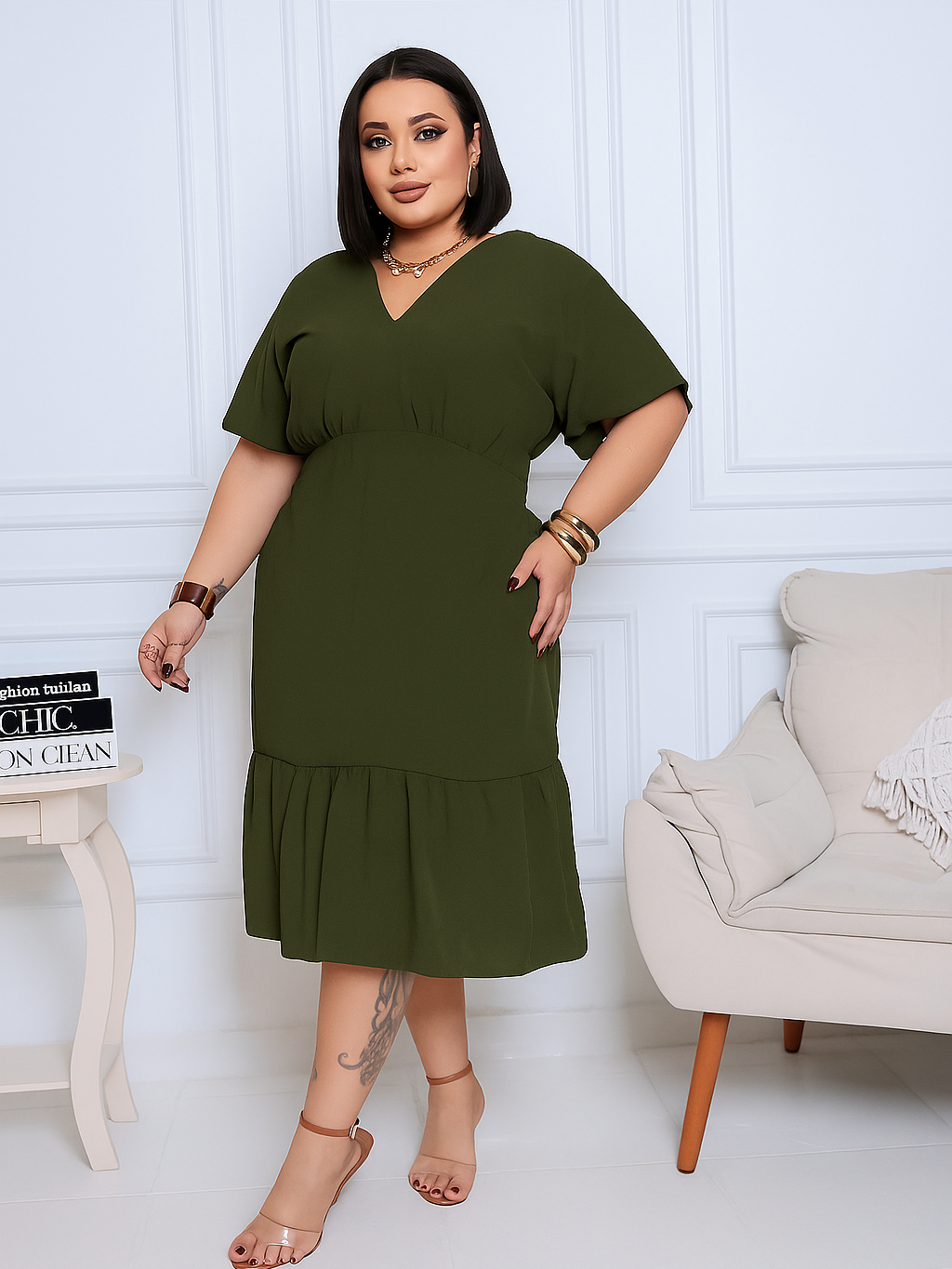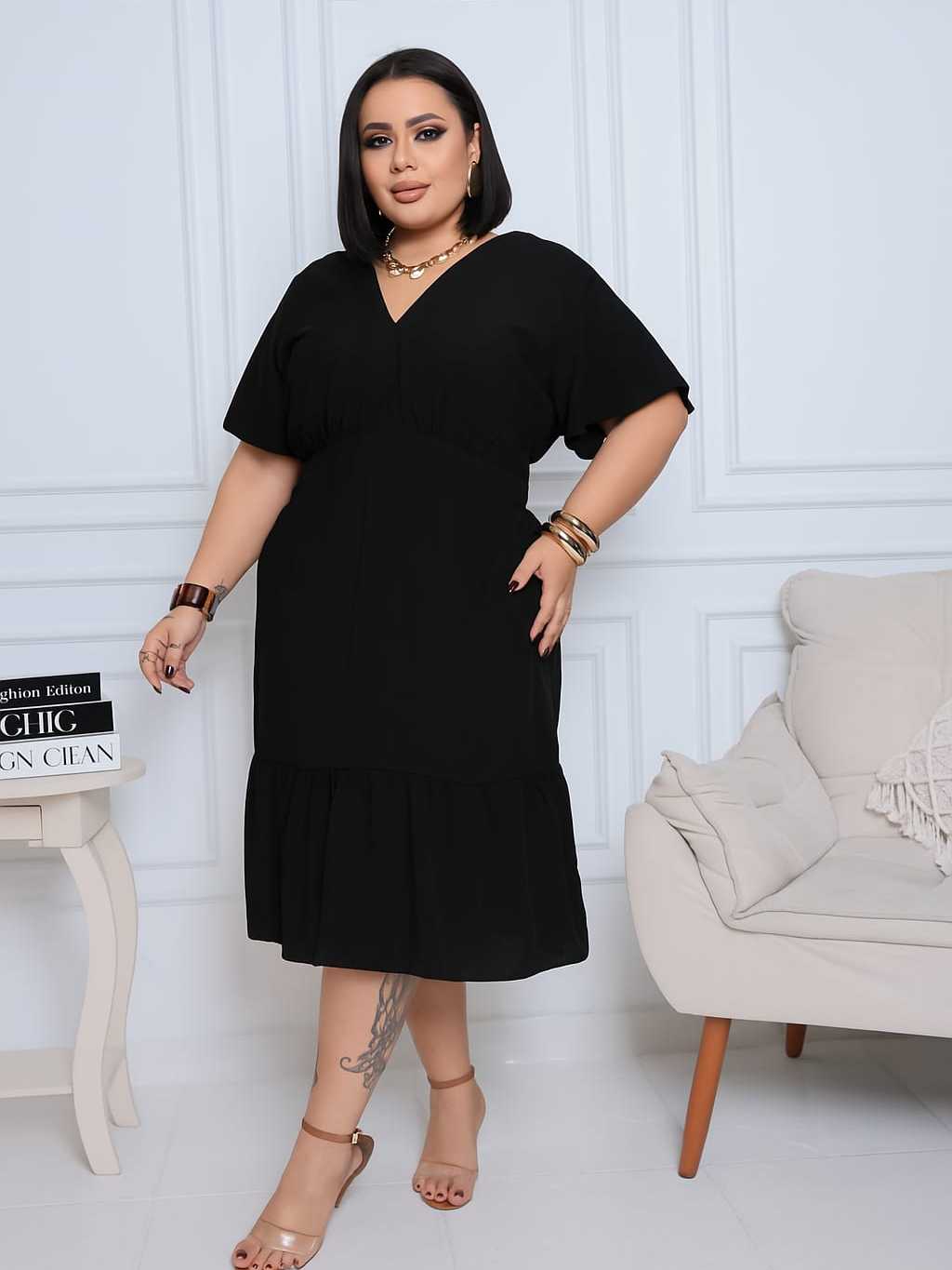 Vestido feminino viscolinho Midi Plus size com manga elegante