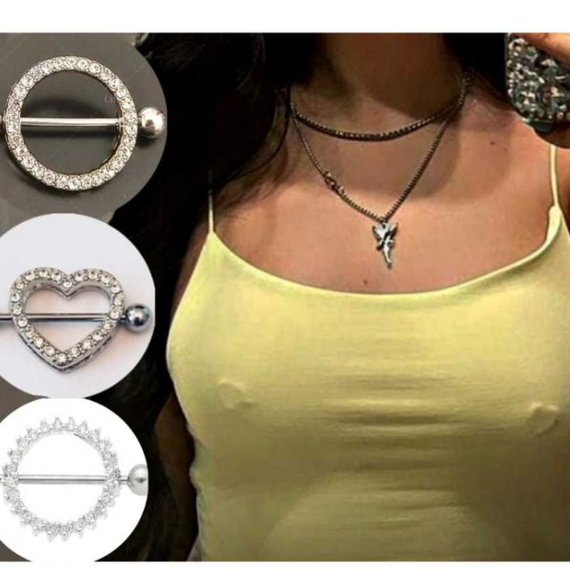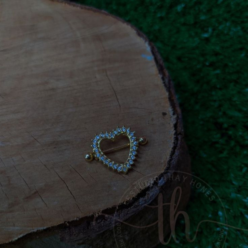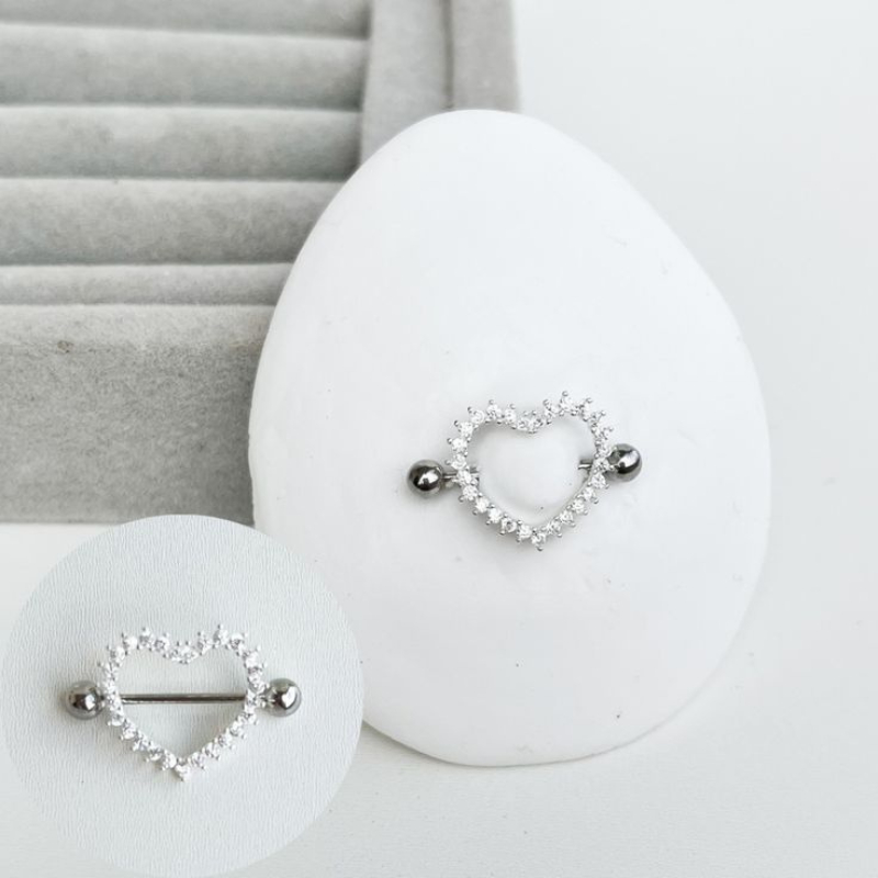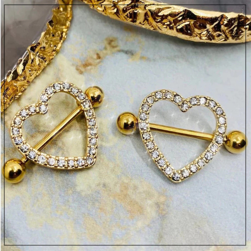 Kit 2 Piercing Mamilo Seios Peito Modelo Coração Cravejado com Zirconia Cristal Aço Inox