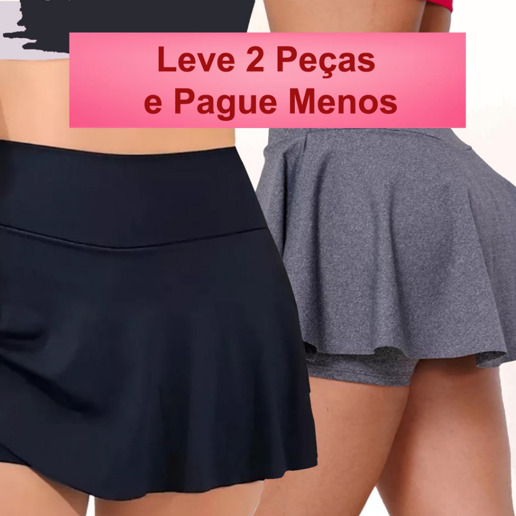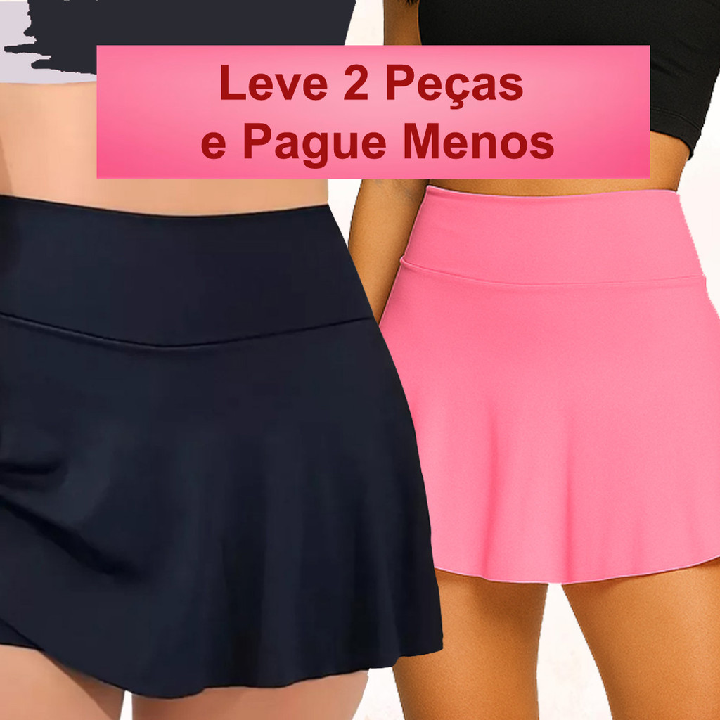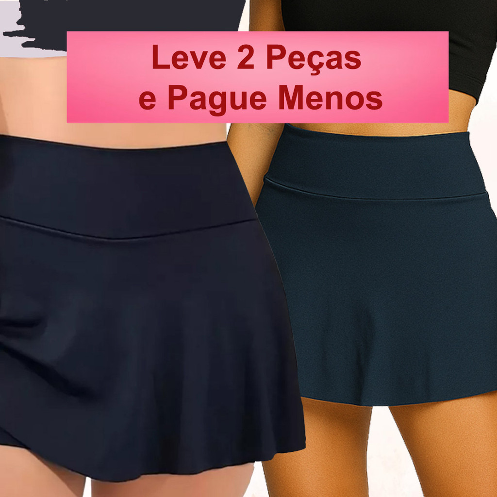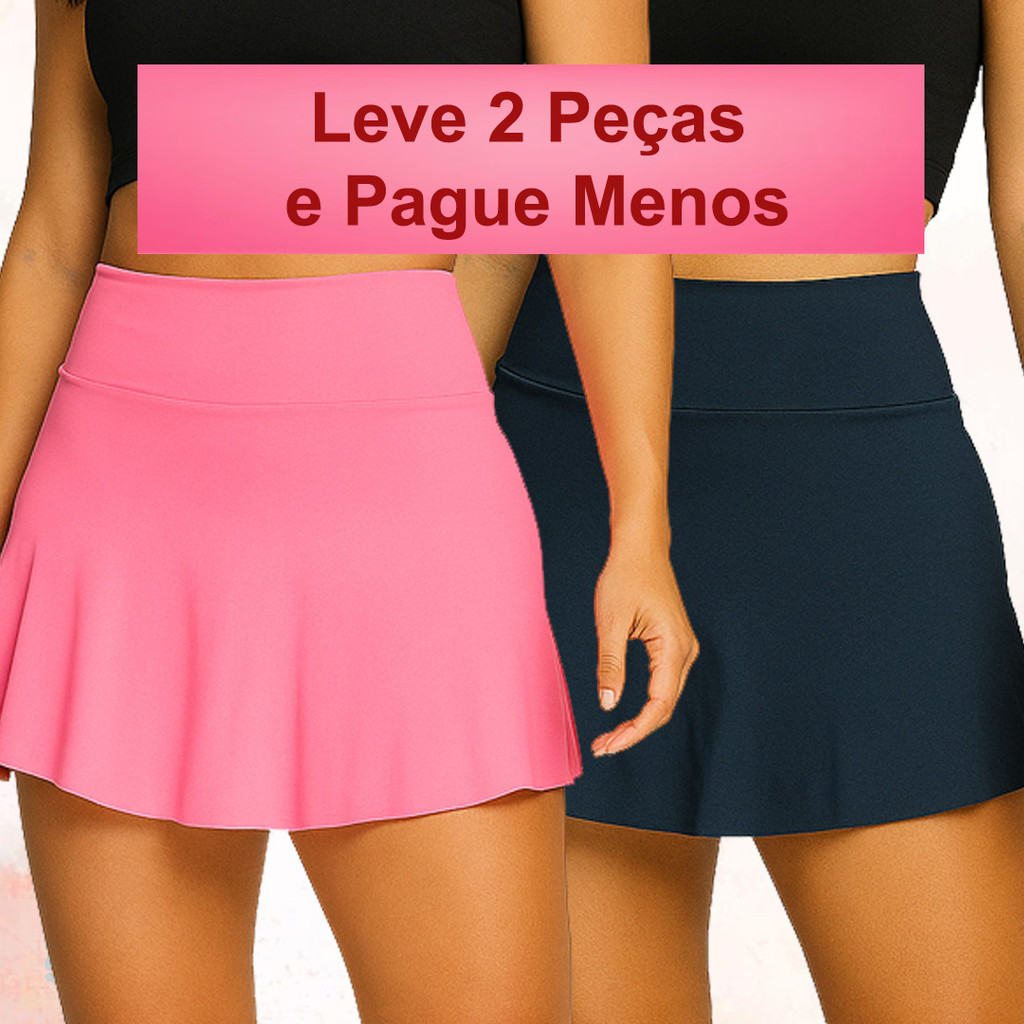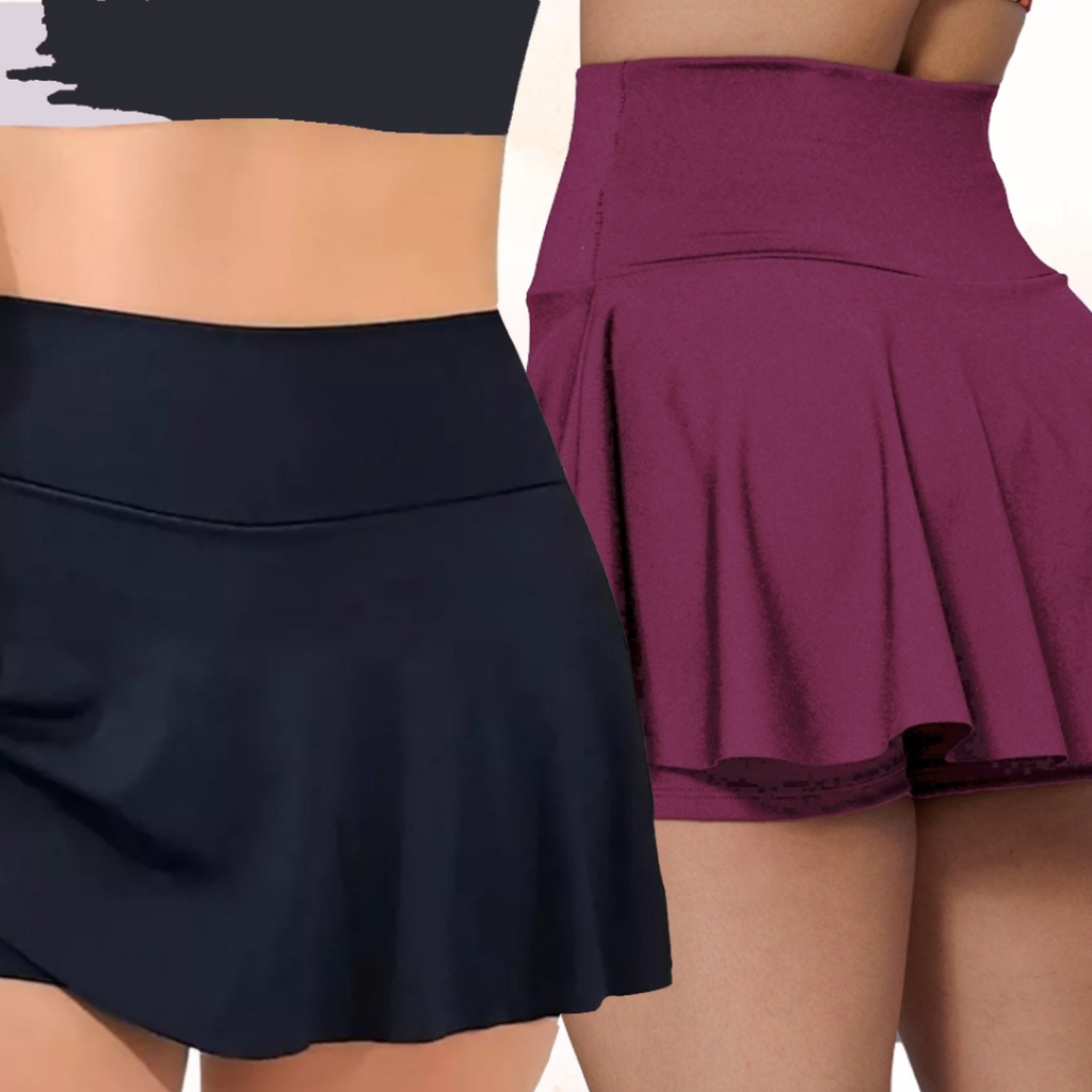 Kit 2 Short Saia Fitness Feminino Academia Cós Alto Suplex Confortável