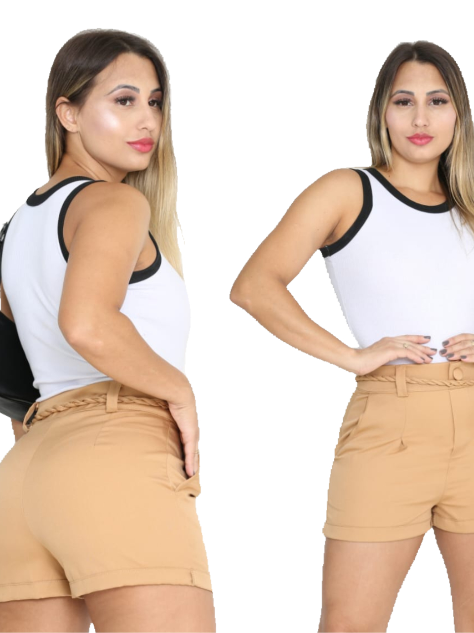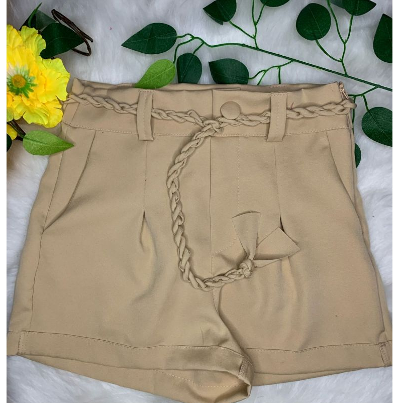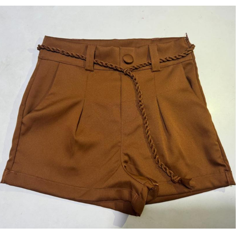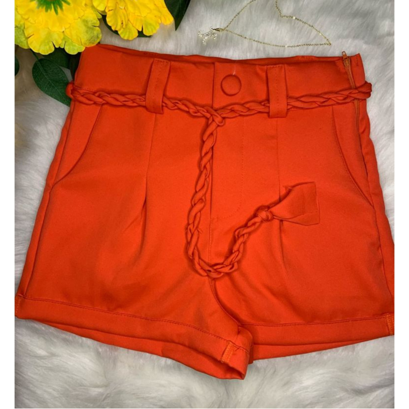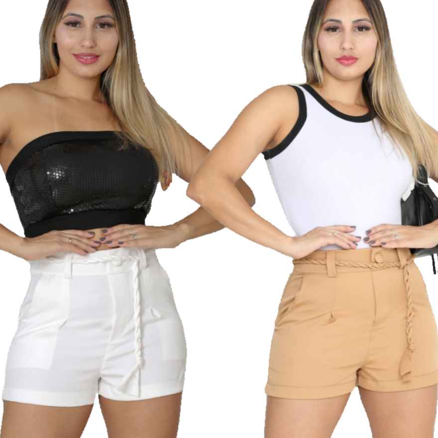 Short Feminino Cintura Alta Tecido Alfaiataria com Cinto Cordão Moda Verão Cores Variados