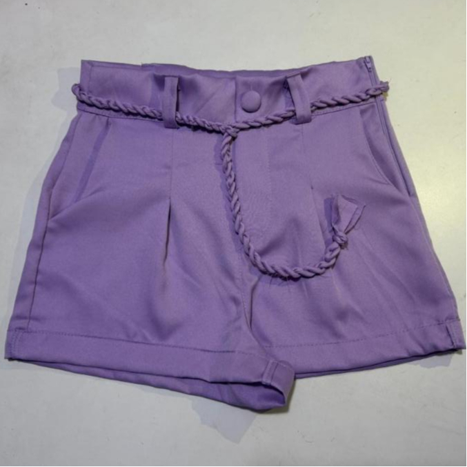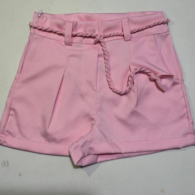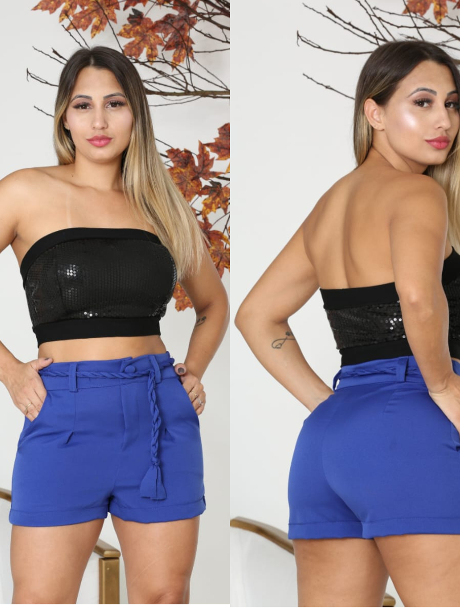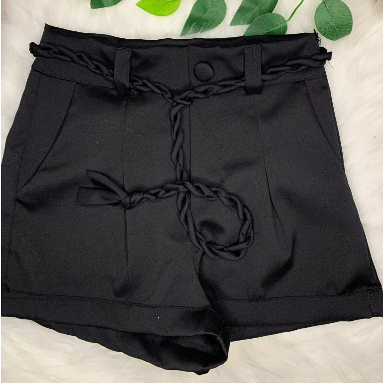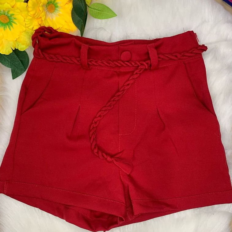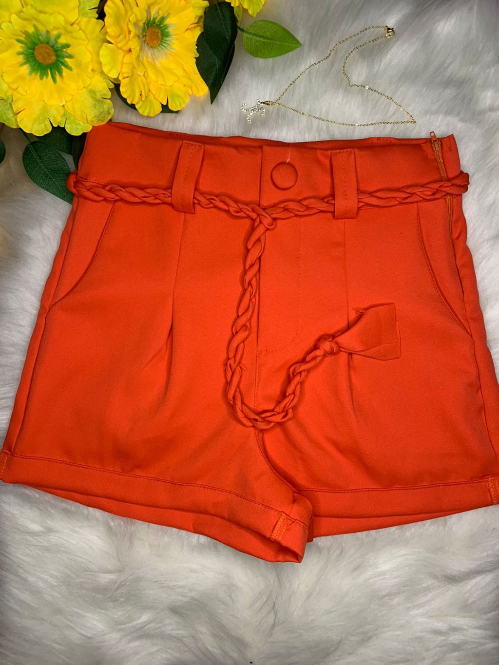 Short Feminino Cintura Alta Tecido Alfaiataria com Cinto Cordão Moda Verão Cores Variados