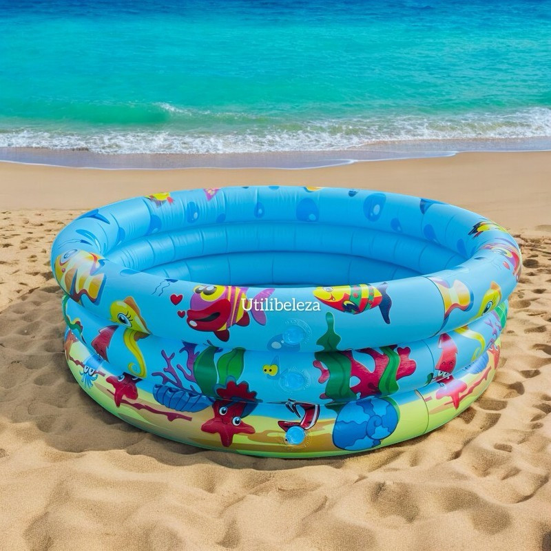 Piscina Infantil Inflável 60-100Cm 3 Gomos 3 Anéis Redonda Criança Bebe Alta Qualidade