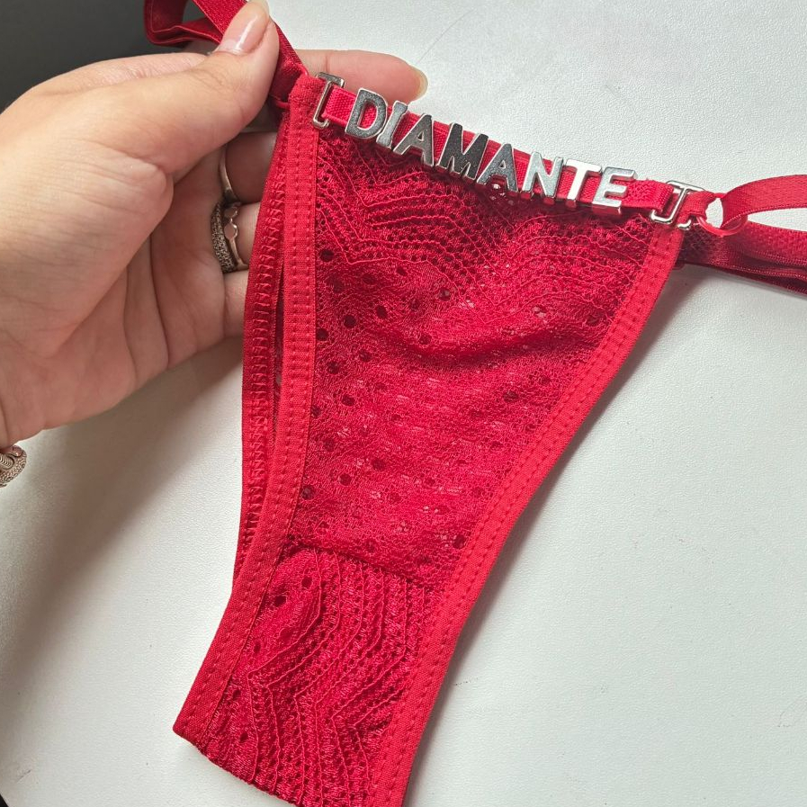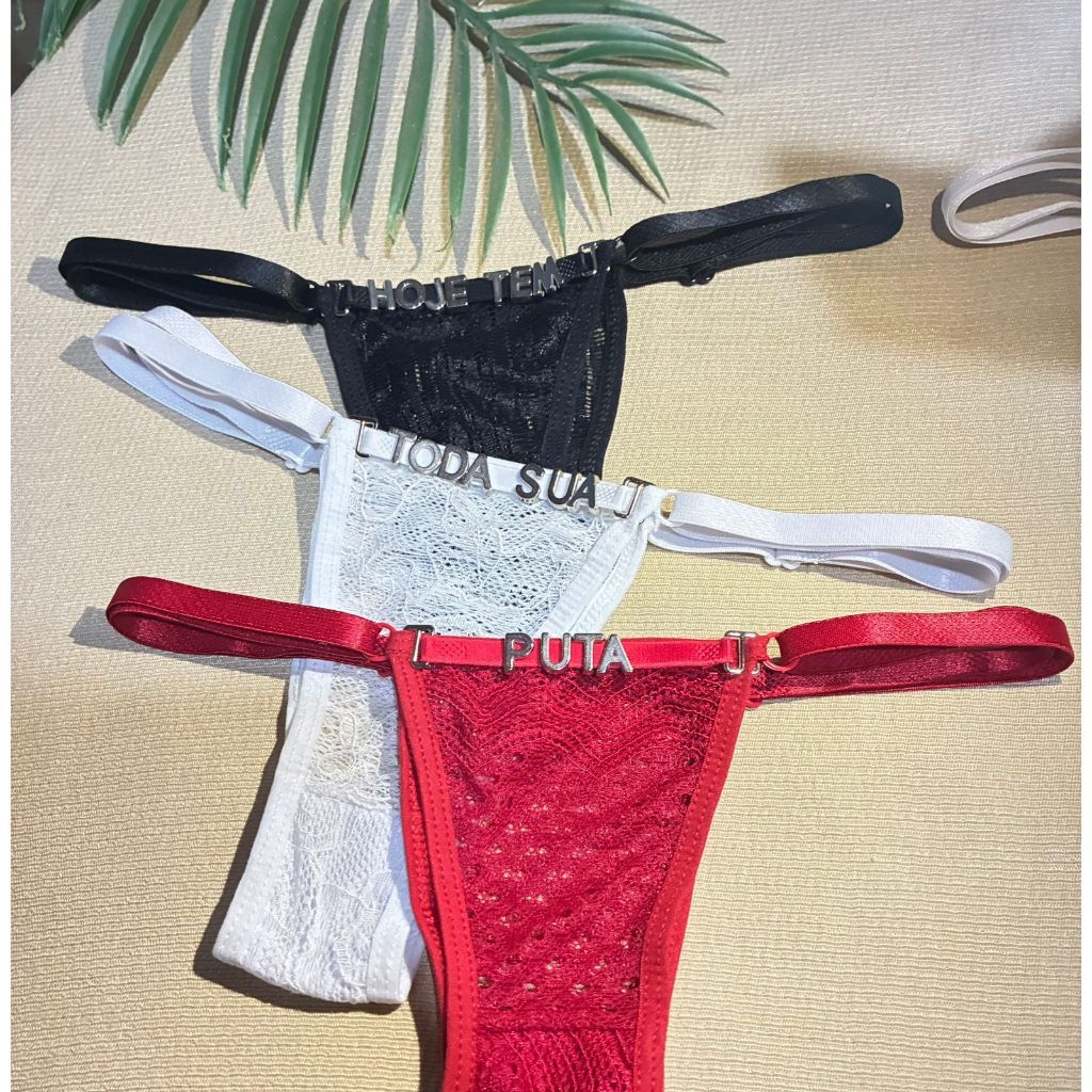 Calcinha tanga sensual personalizada com nome e palavras atrás com calcinha reguladora