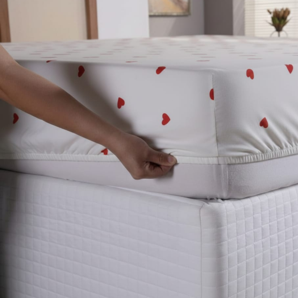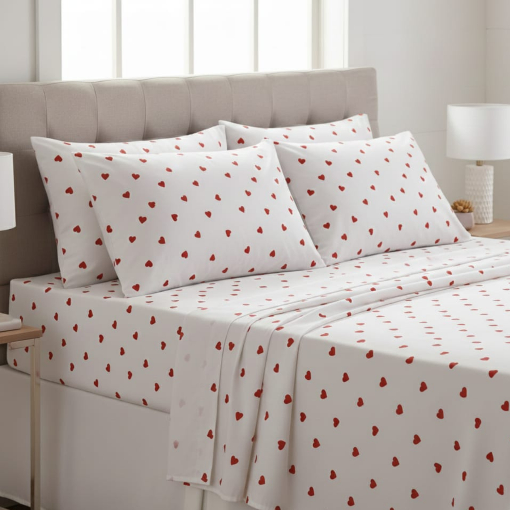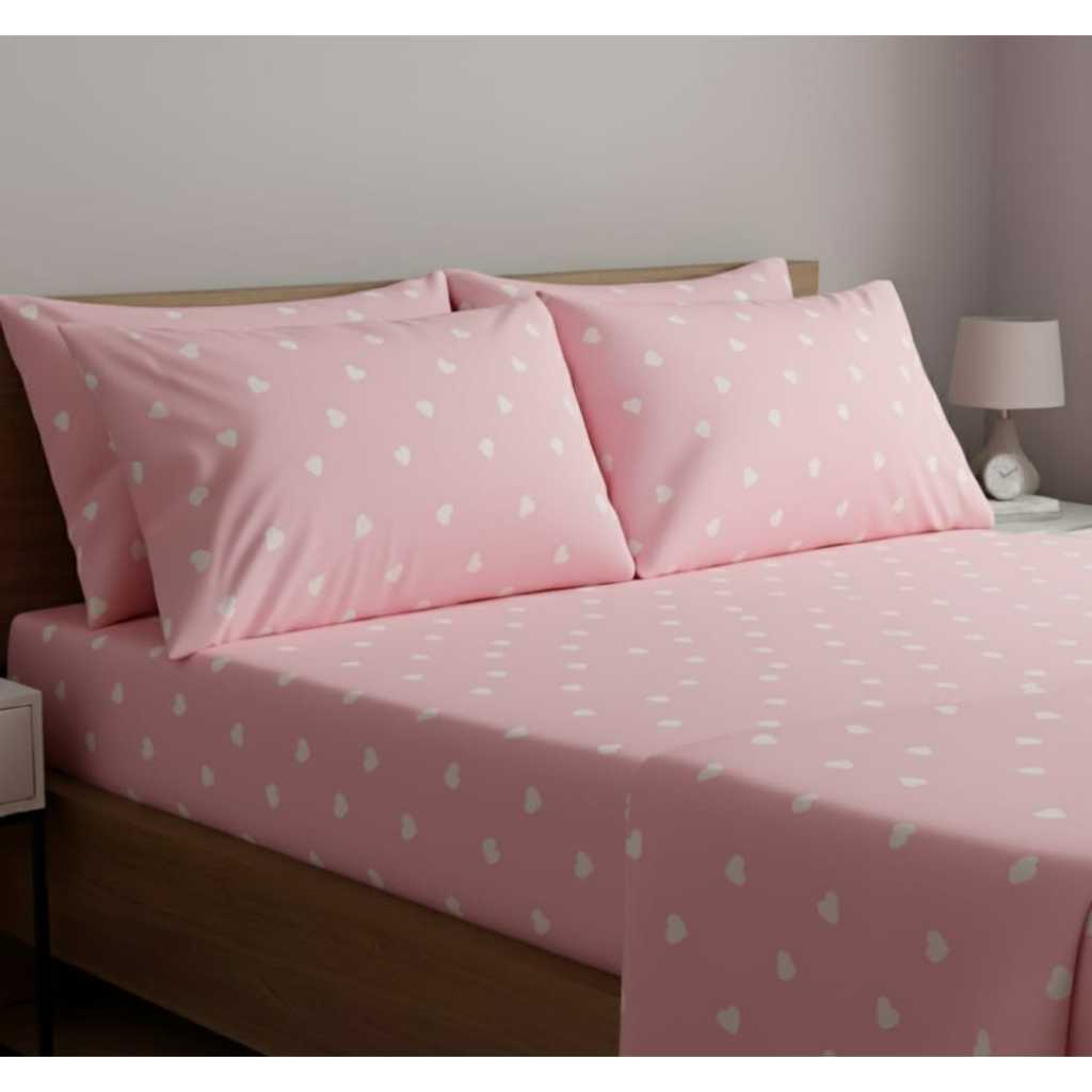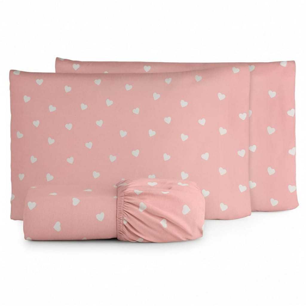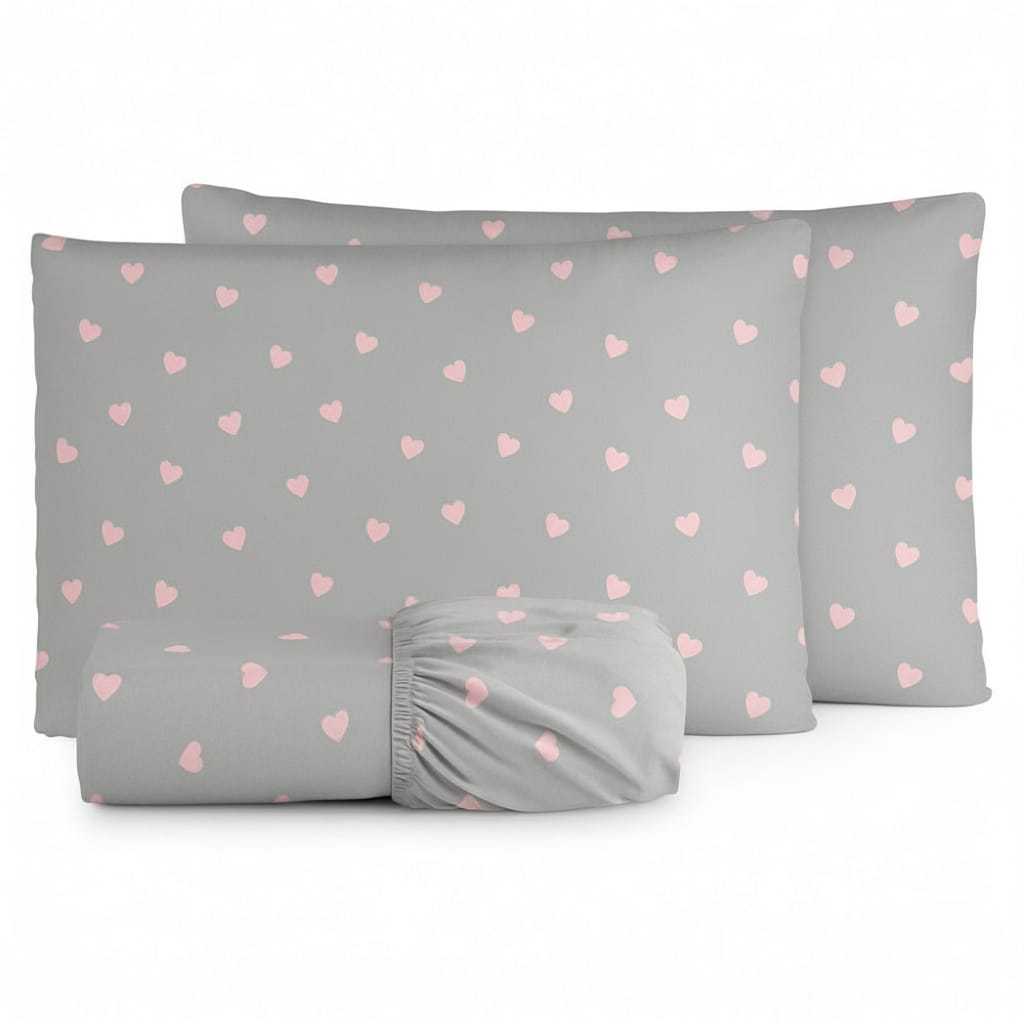 Jogo De Cama Estampa Coração Macio Algodão 180 Fios C/ Elástico Toda Volta