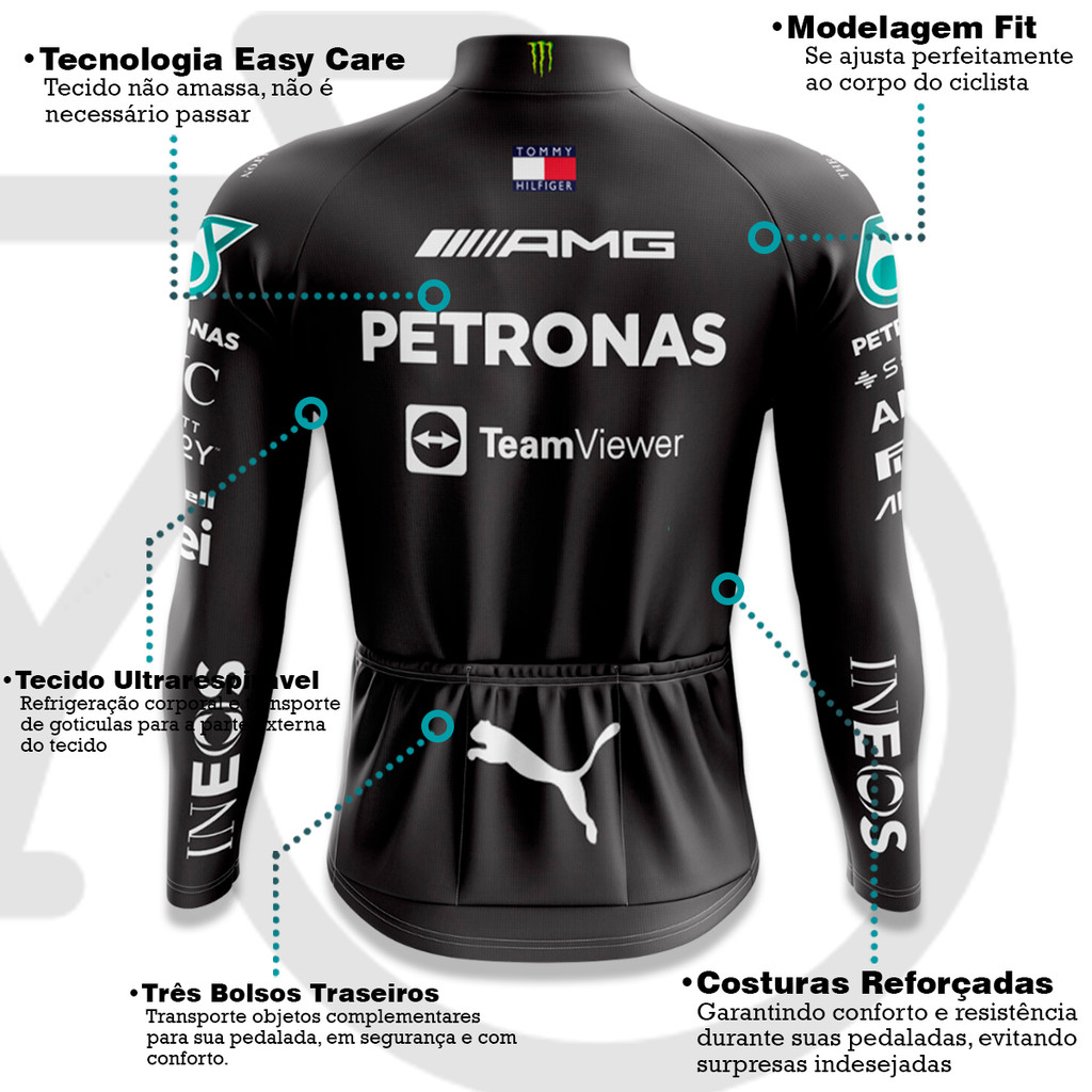 CAMISA CICLISMO MASCULINO PETRONAS INEOS COM BOLSOS UV 50+