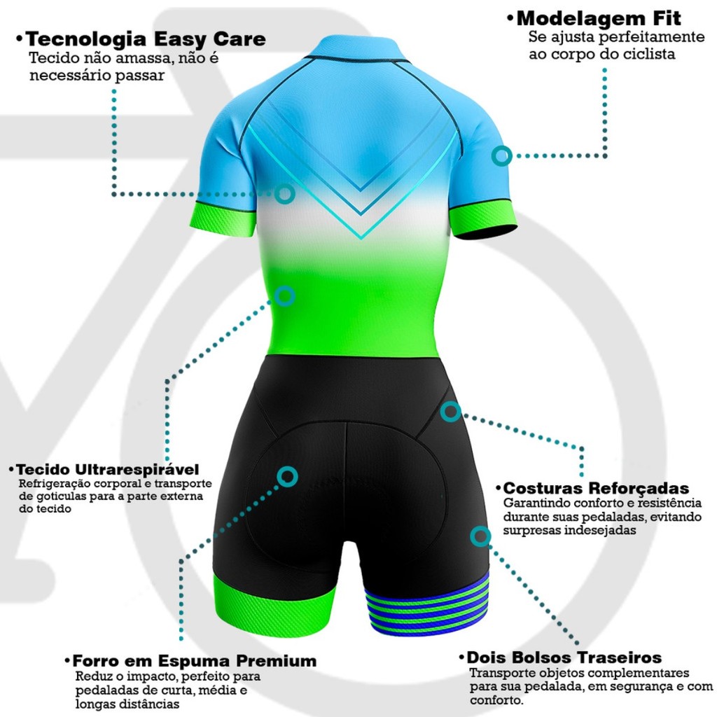 Macaquinho Ciclismo Feminino Profissional Gel Acolchoado UV Proteção MTB Speed Stella Sky