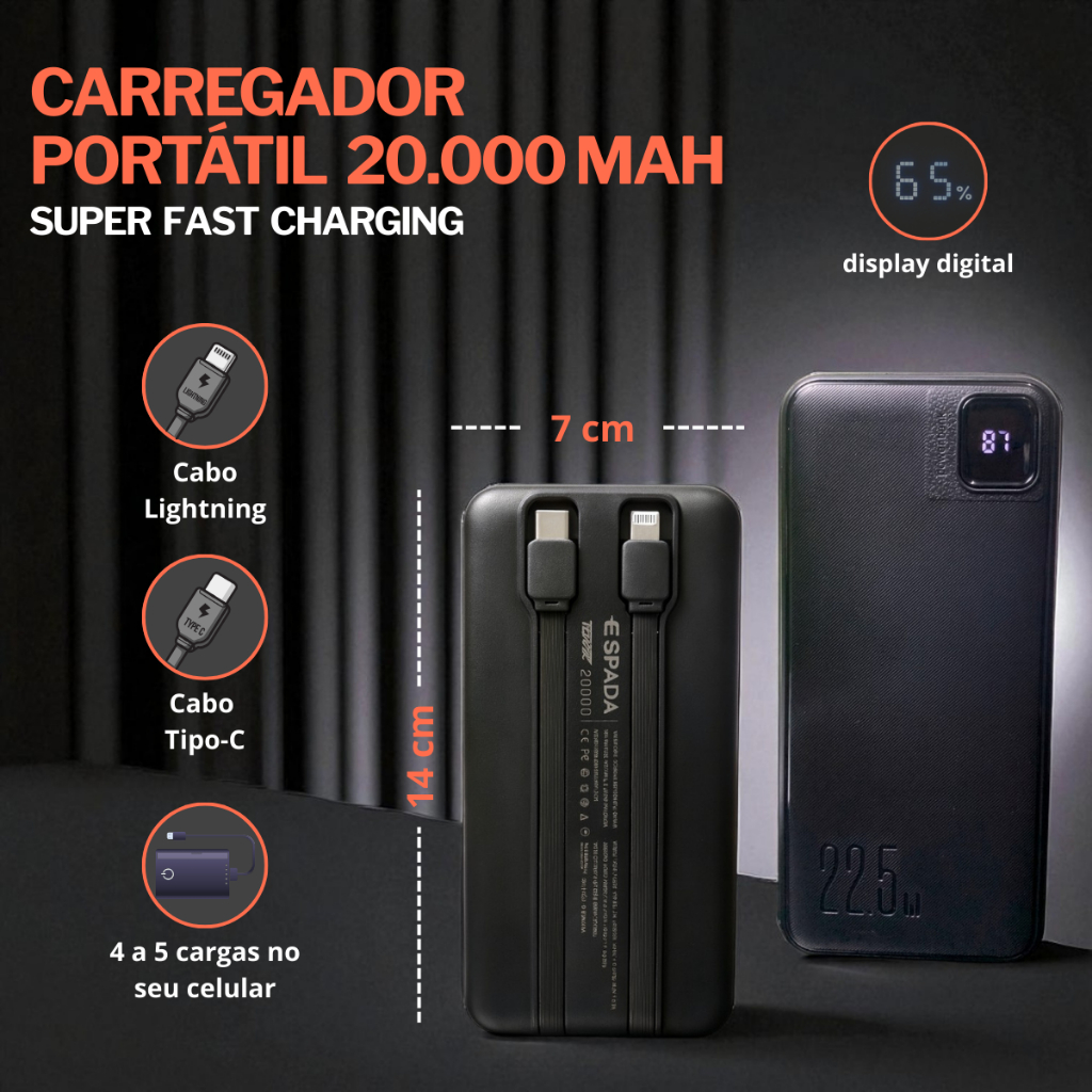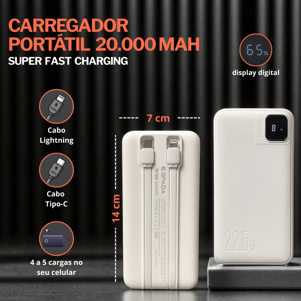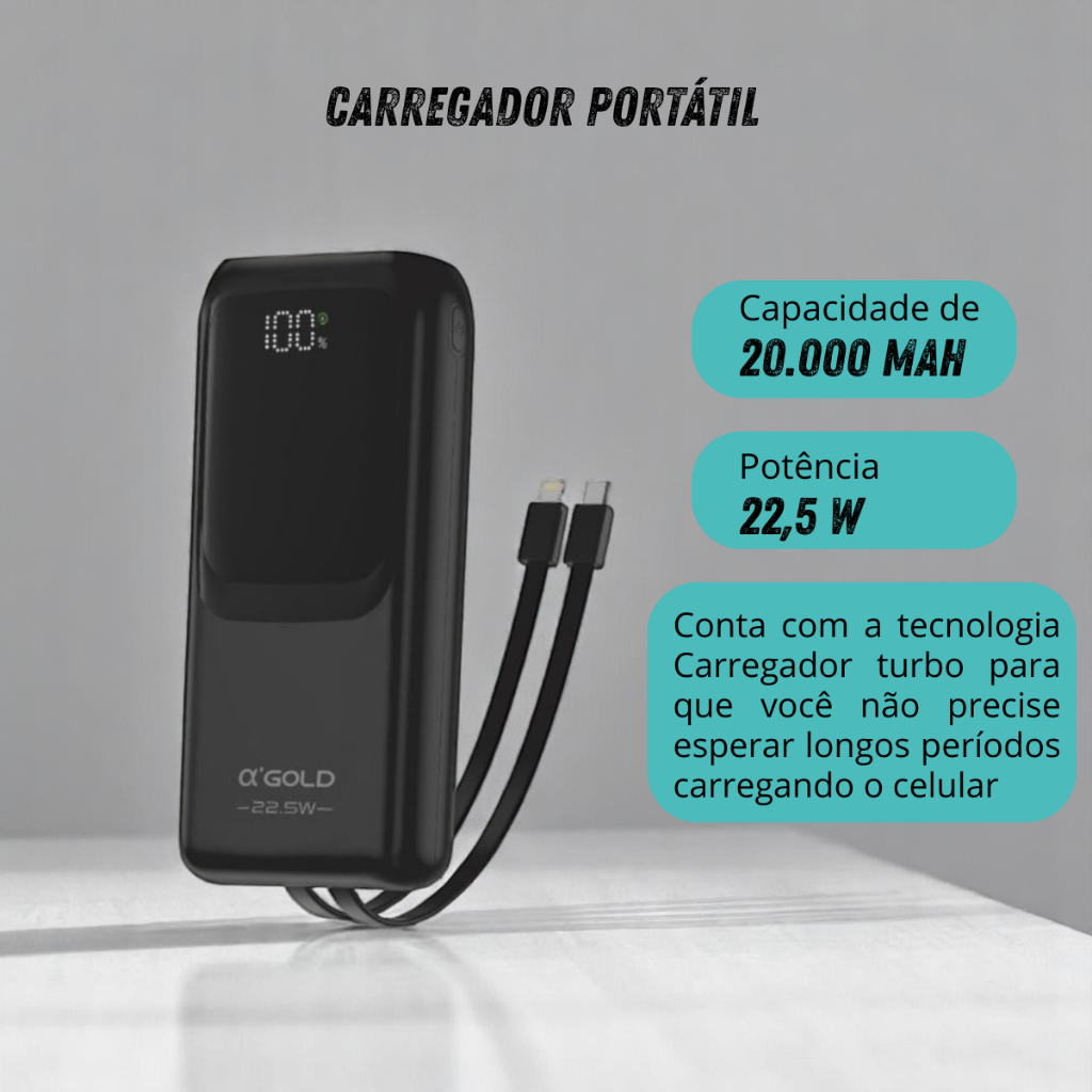 Carregador Portátil 20000 Turbo 22.5w Power Bank Universal