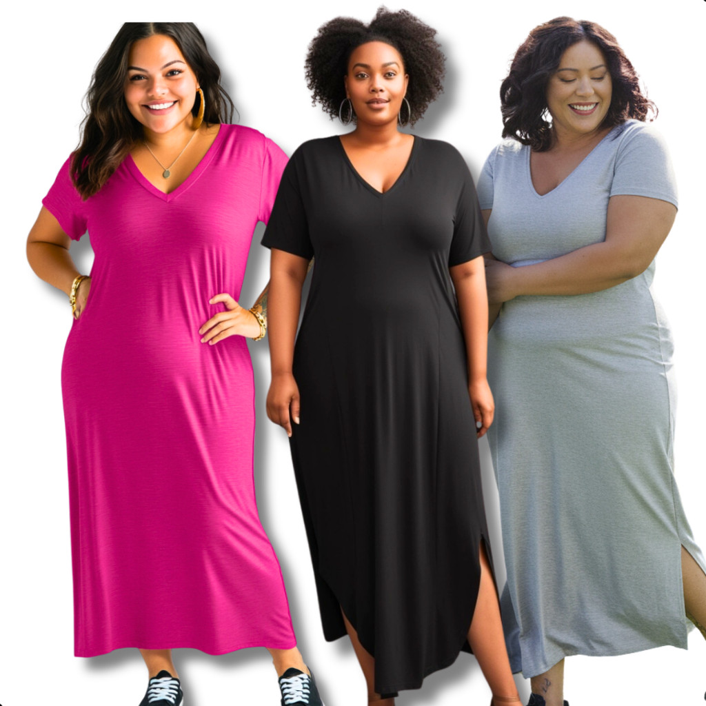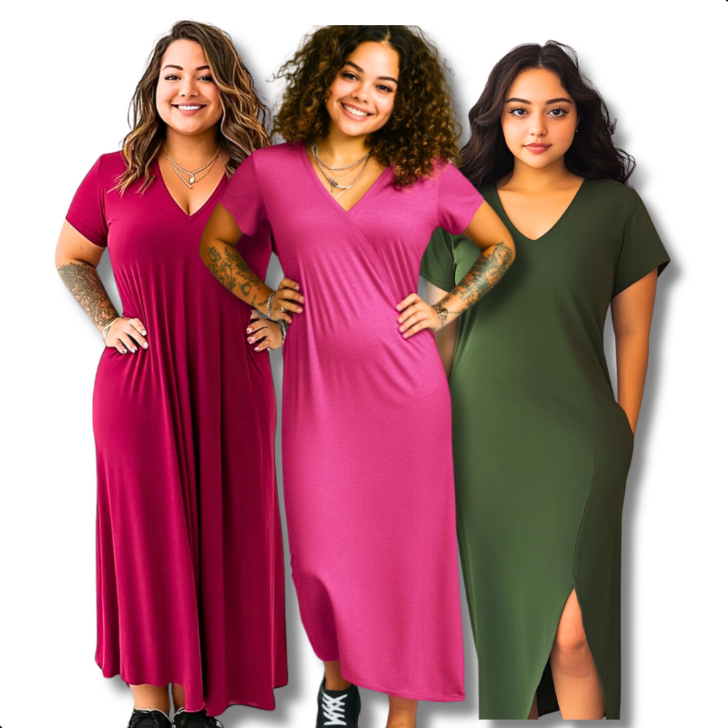Kit Vestido Feminino Longo Saruel Midi Com Fenda Lateral Liso Elegante