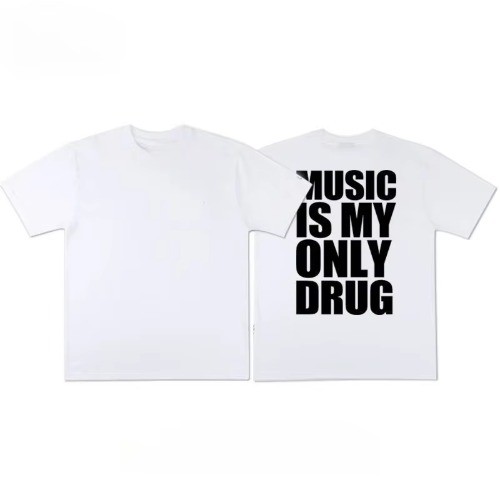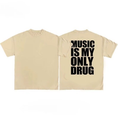 "música é minha única droga" diversão inglês camiseta de manga curta verão algodão manga curta na moda streetwear