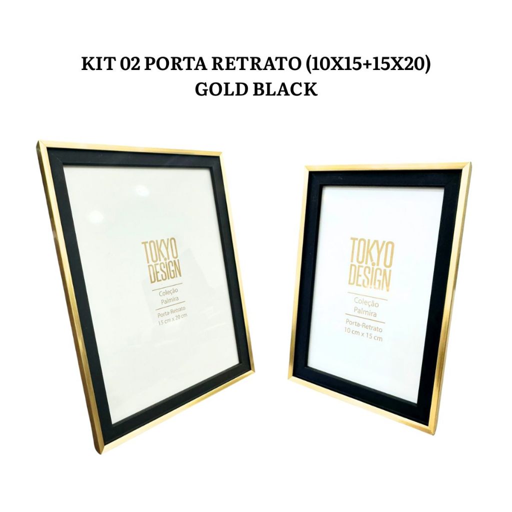 KIT PORTA RETRATO 10X15 E 15X20 GOLD BLACK LUXO PREMIUM HOME DECOR, CASA, SALA, QUARTO, ESCRITÓRIO