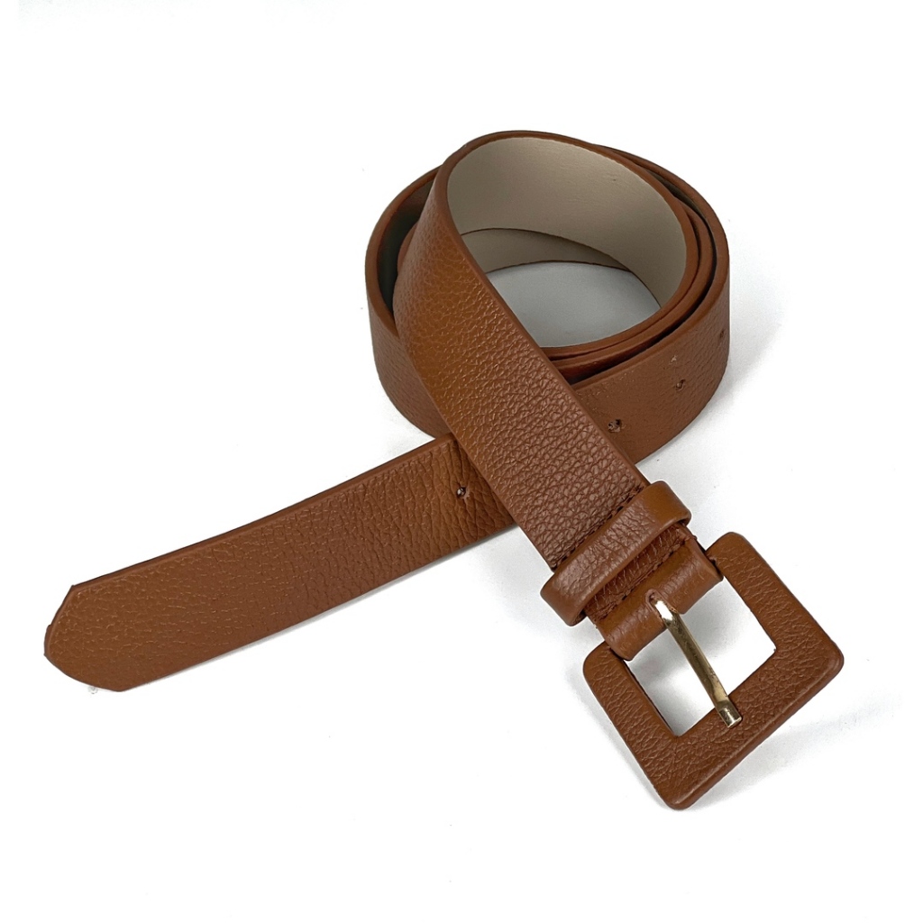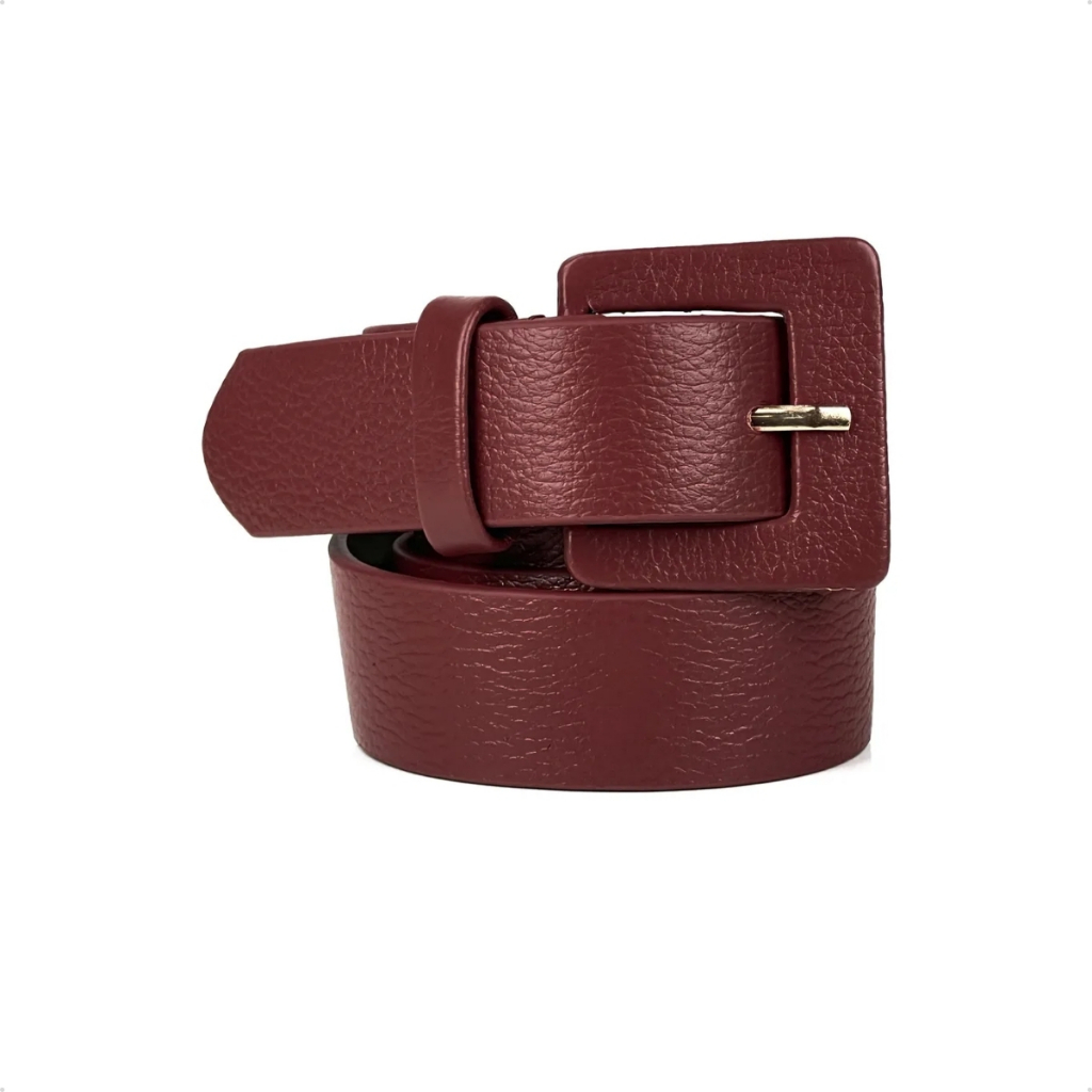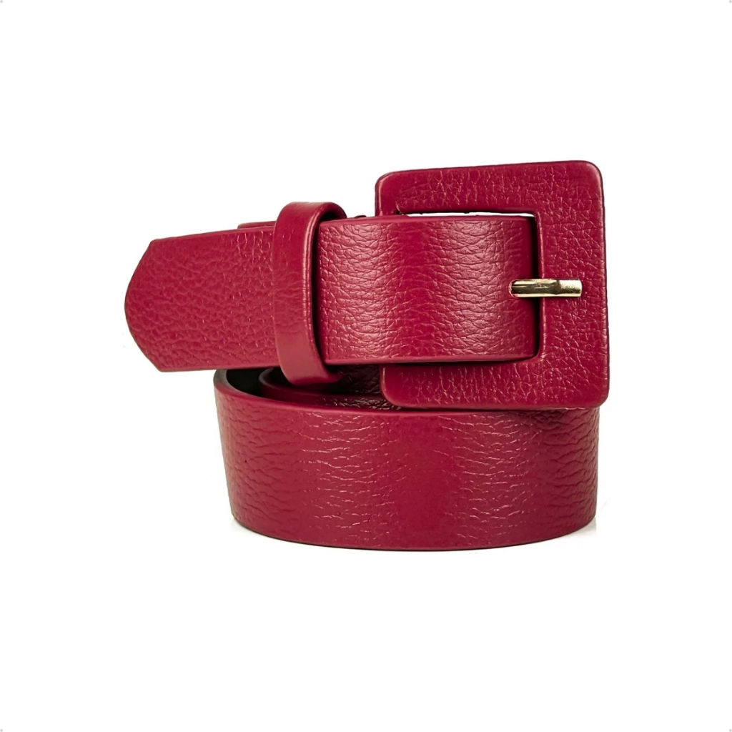 Cinto Feminino Fino Fivela Quadrada Encapada Em Couro Legítimo Blogueira Vitória Social Premium Moda