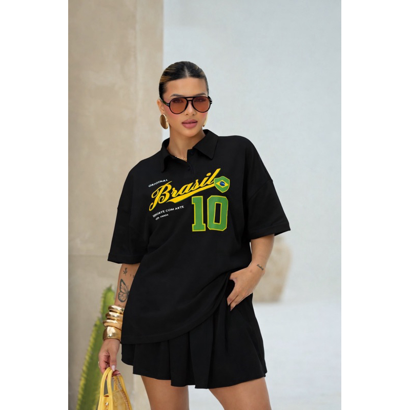Camiseta polo feminina Oversized Brasil 10 malha suedine premium copa