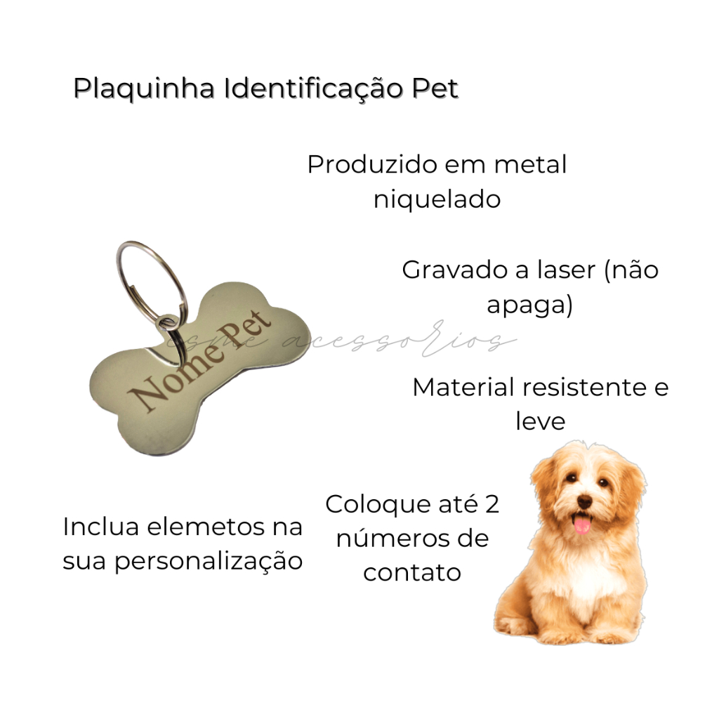 Plaquinha de Identificação Pet Pingente Personalizado Cachorro Gato Com telefone Tutor