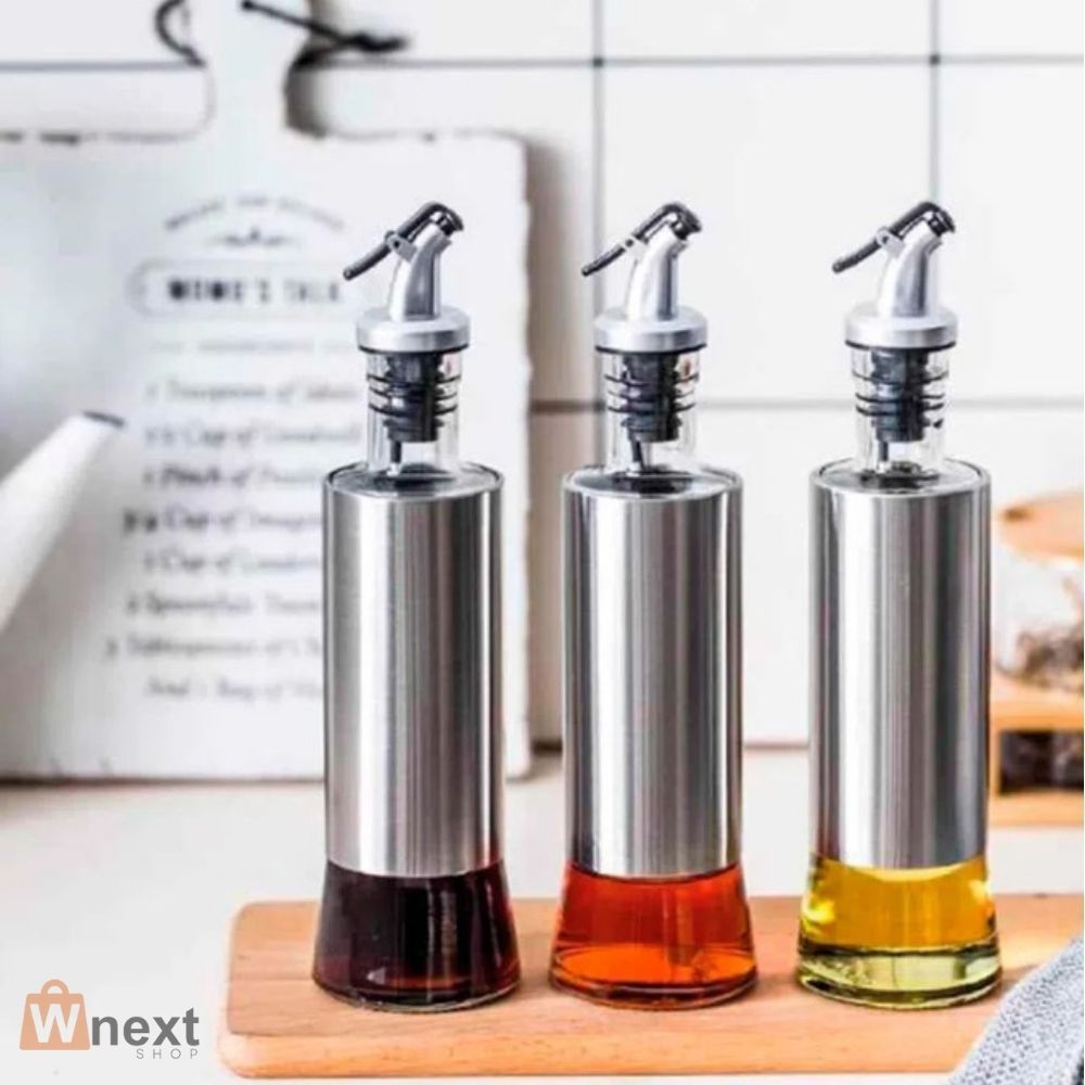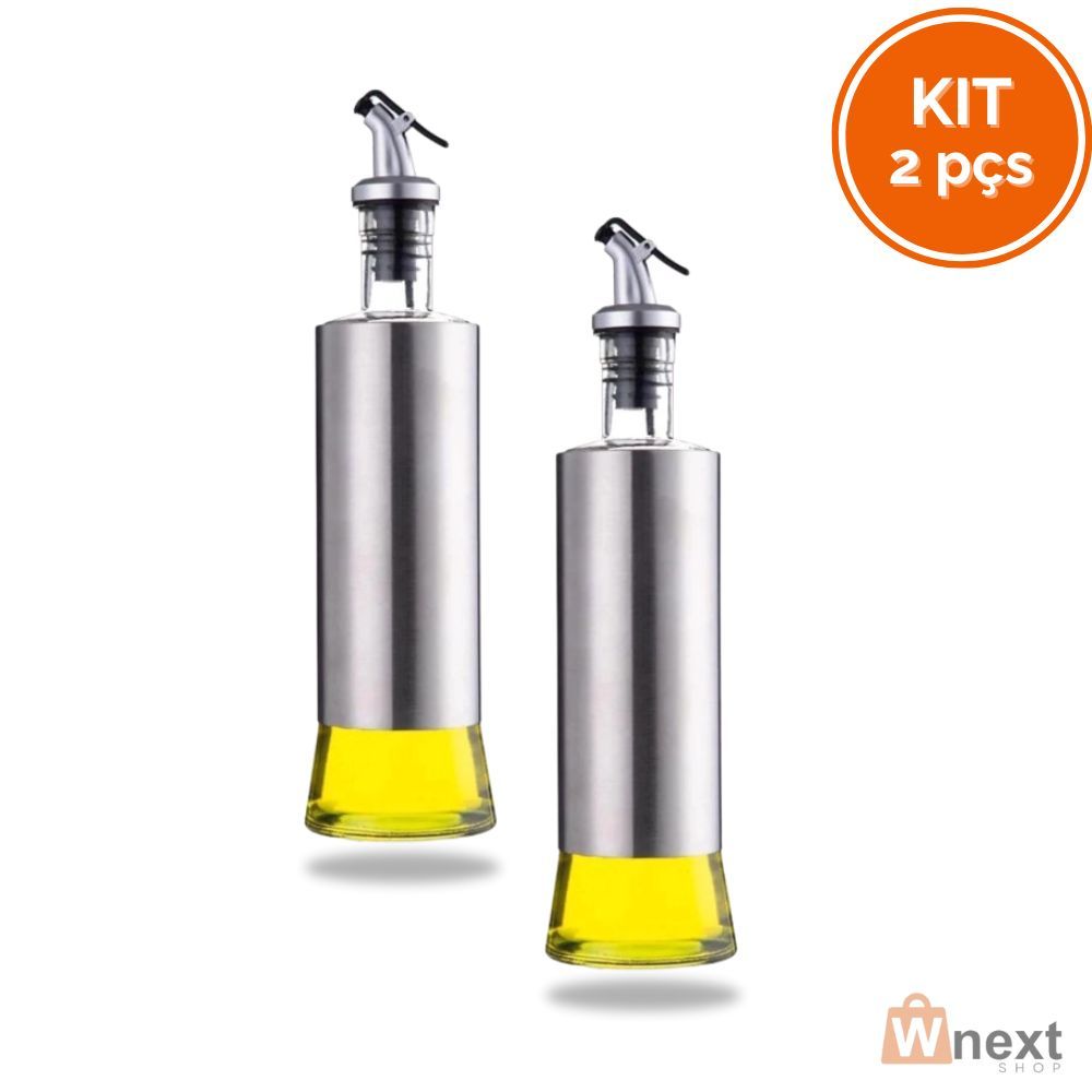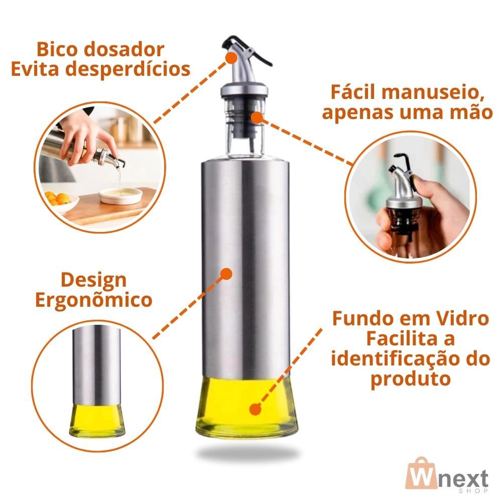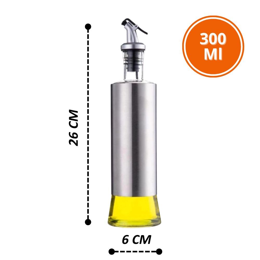 Galheteiro Porta Azeite Óleo Vinagre Shoyu 300 Ml Vidro Aço Inox Bico Dosador