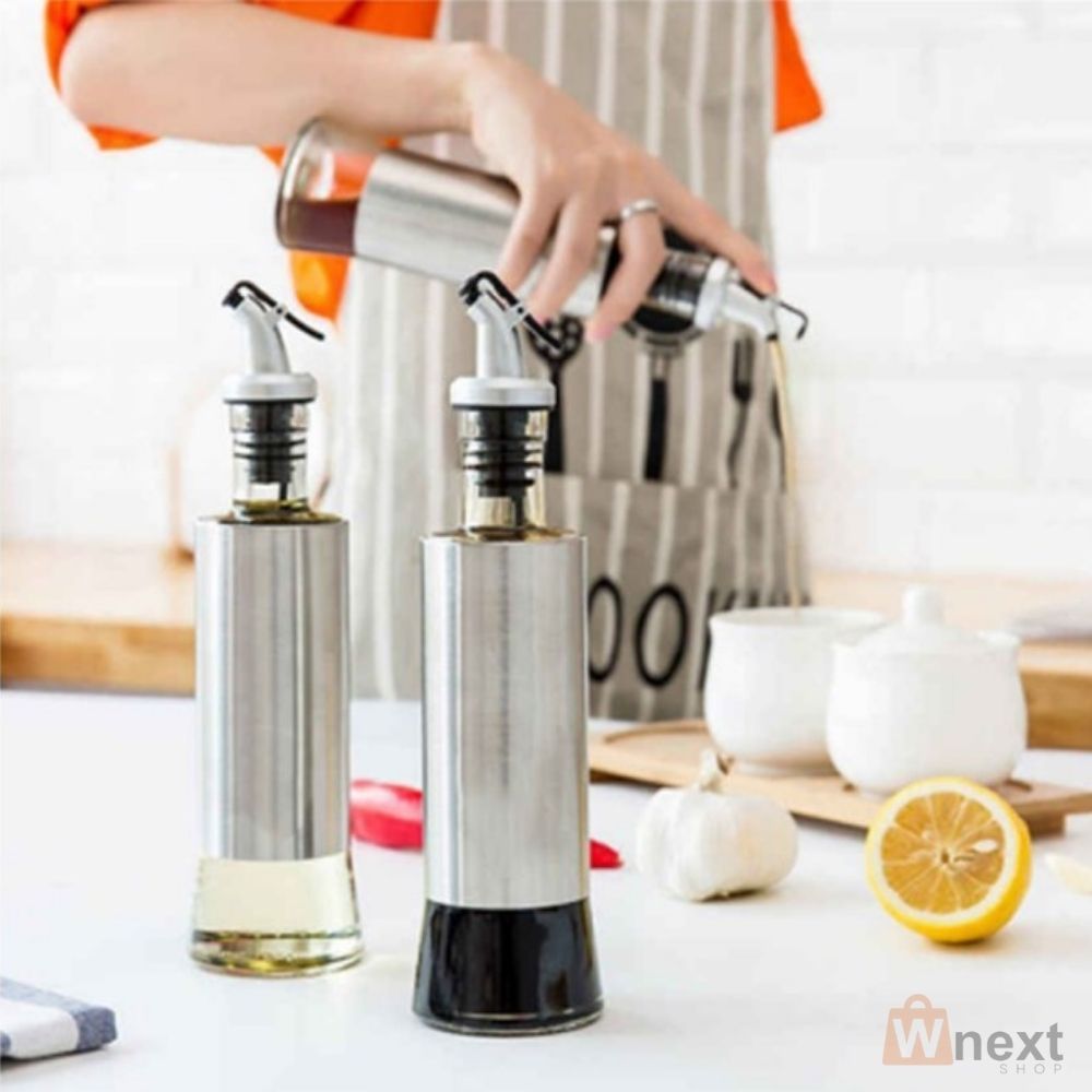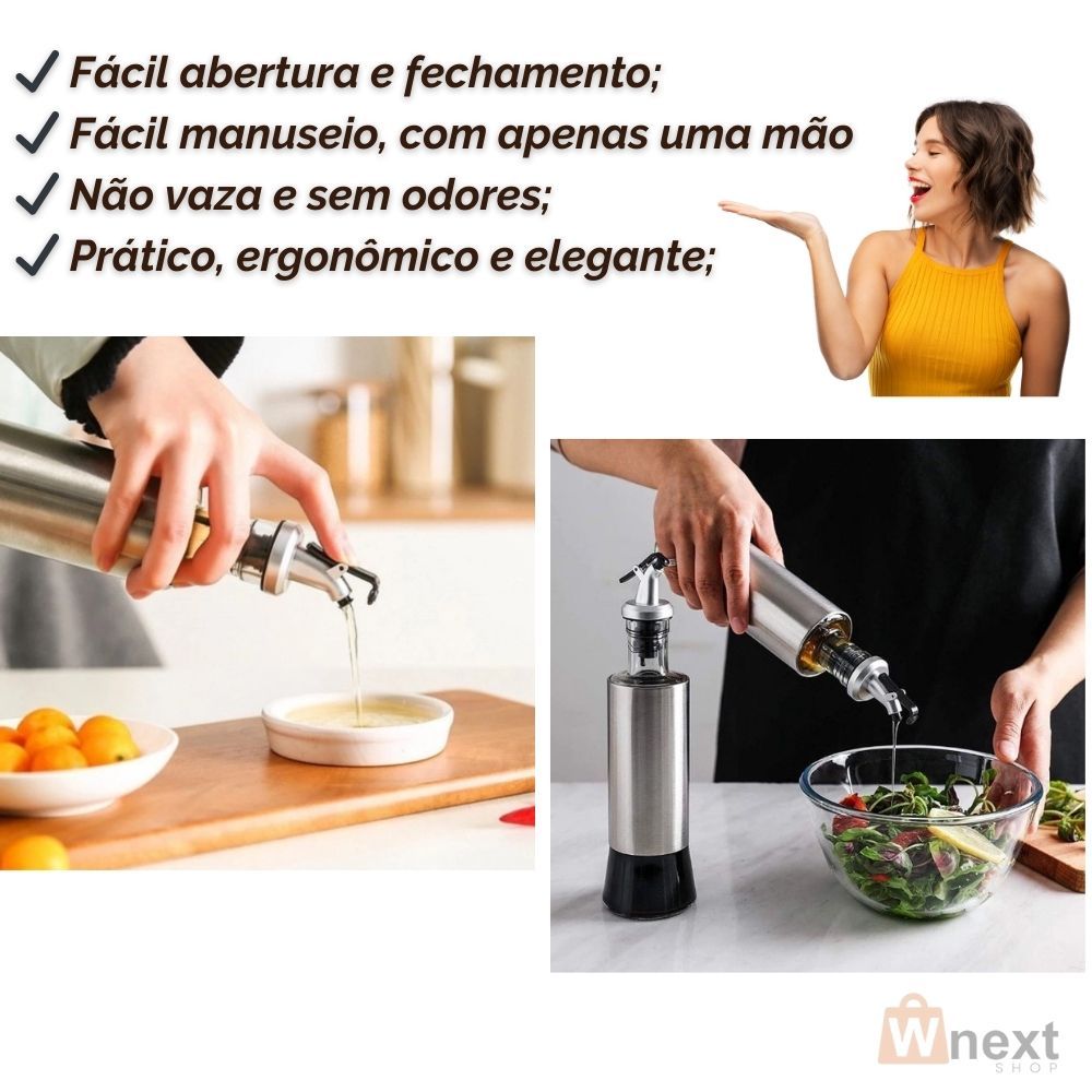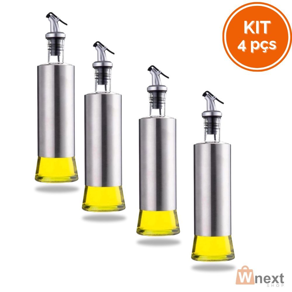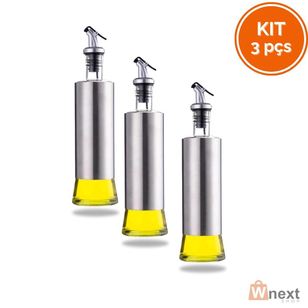 Galheteiro Porta Azeite Óleo Vinagre Shoyu 300 Ml Vidro Aço Inox Bico Dosador
