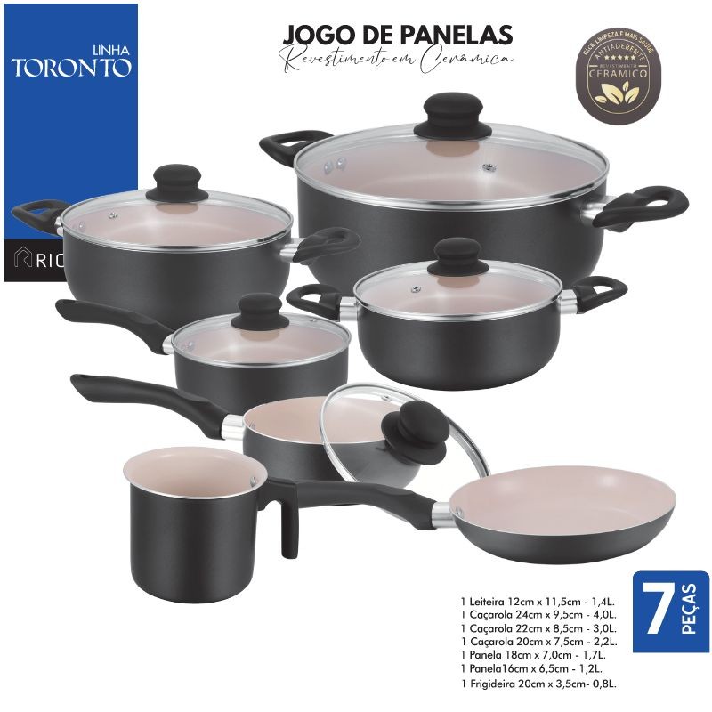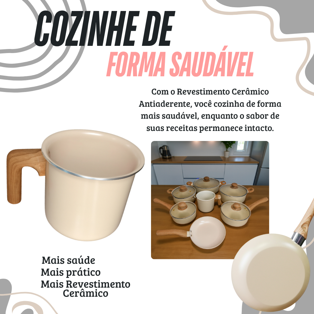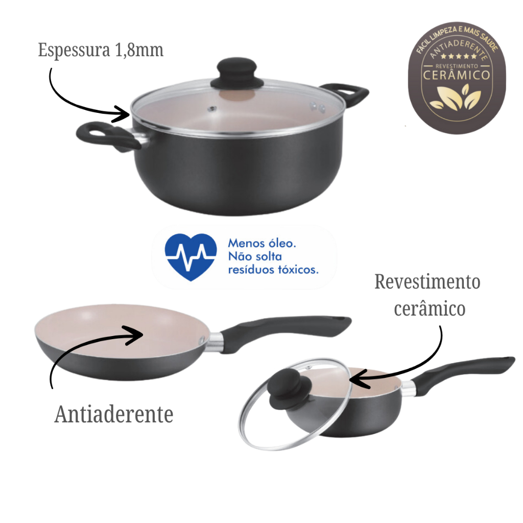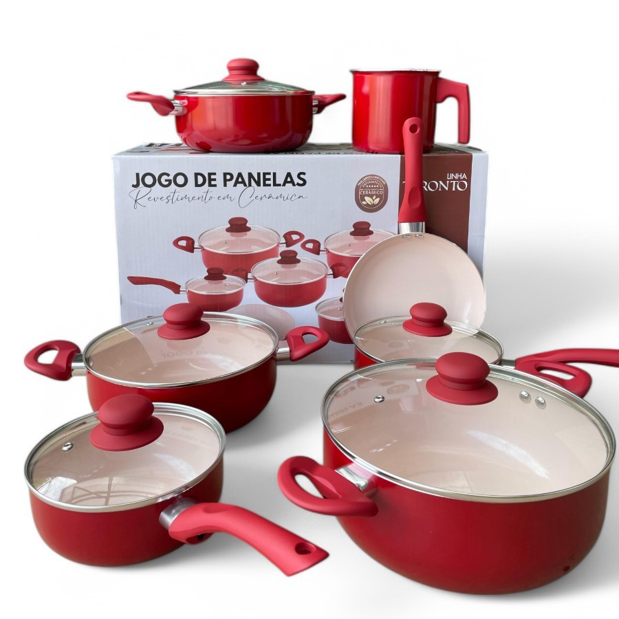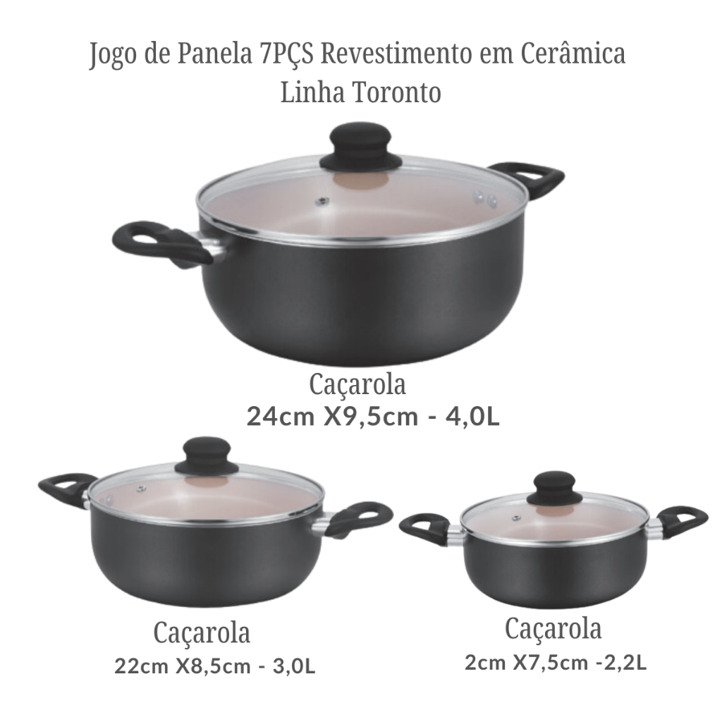 Jogo de Panela 7 peças Antiaderente Tampa de Vidro Luxo Revestida em Cerâmica