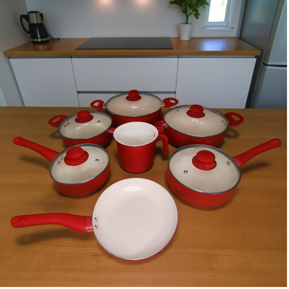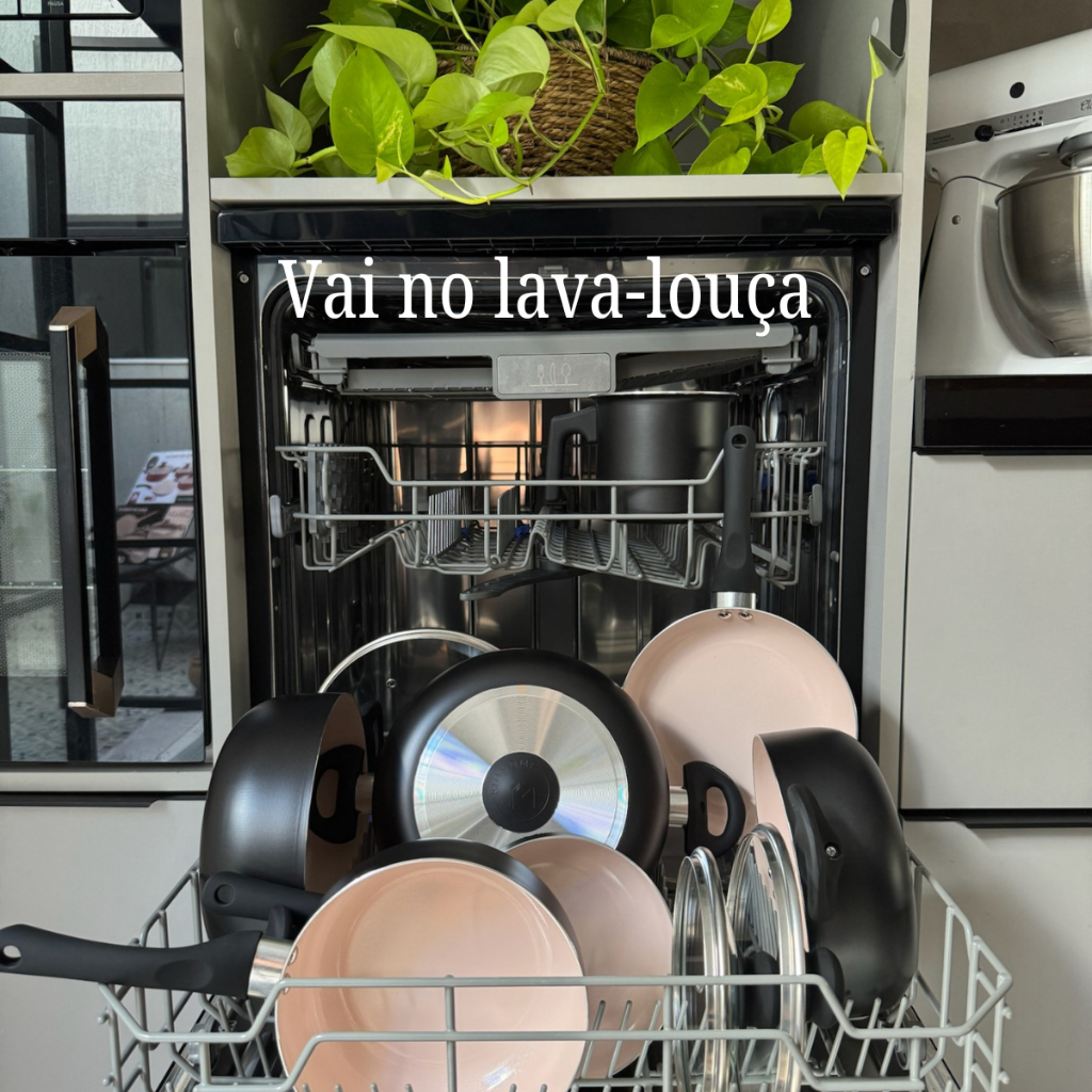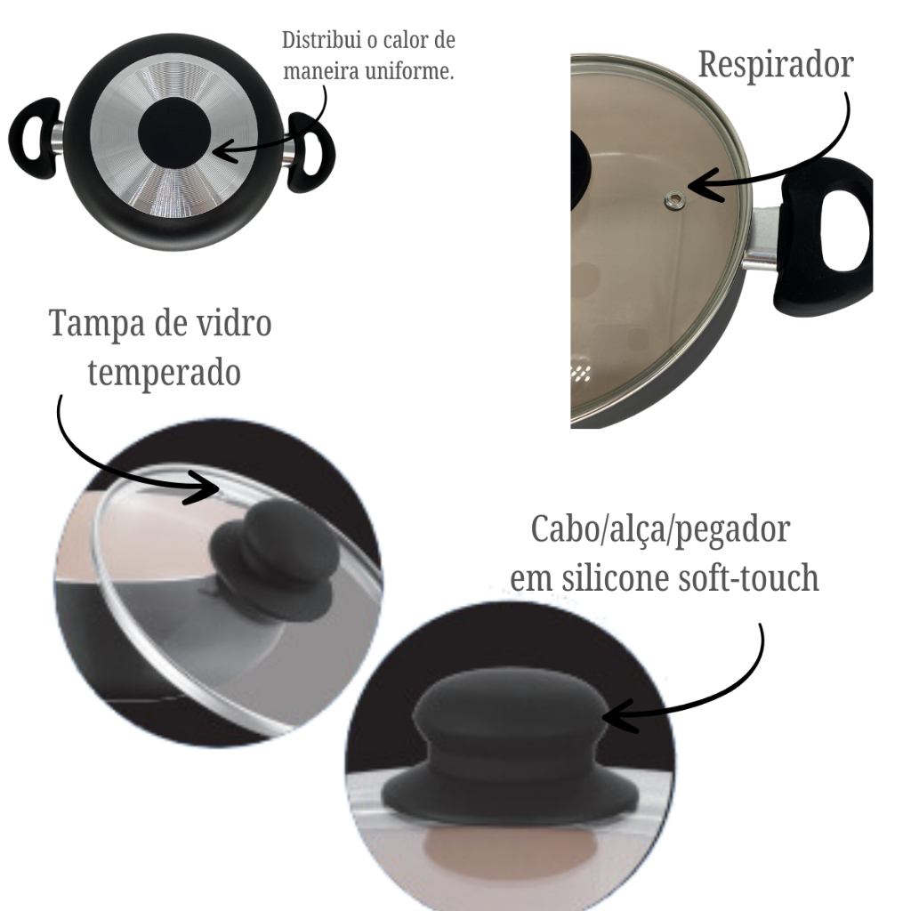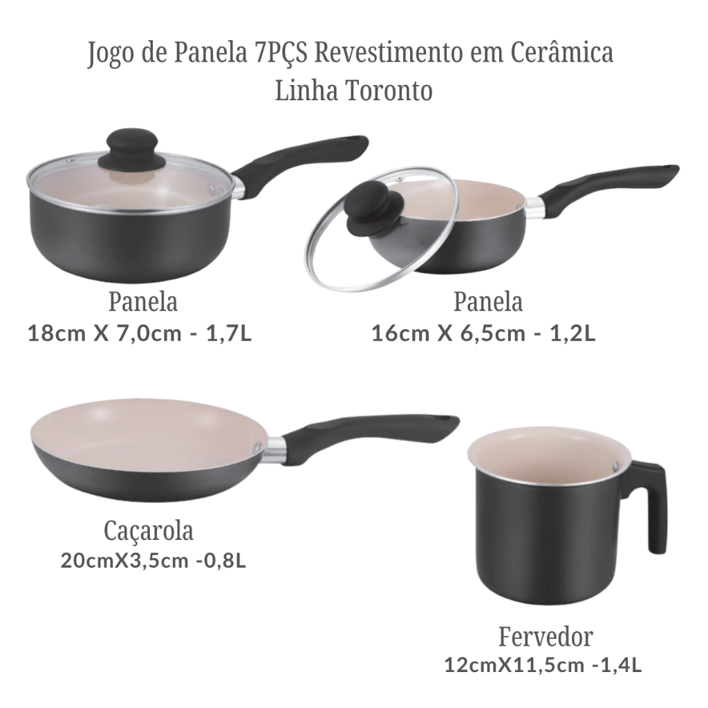 Jogo de Panela 7 peças Antiaderente Tampa de Vidro Luxo Revestida em Cerâmica