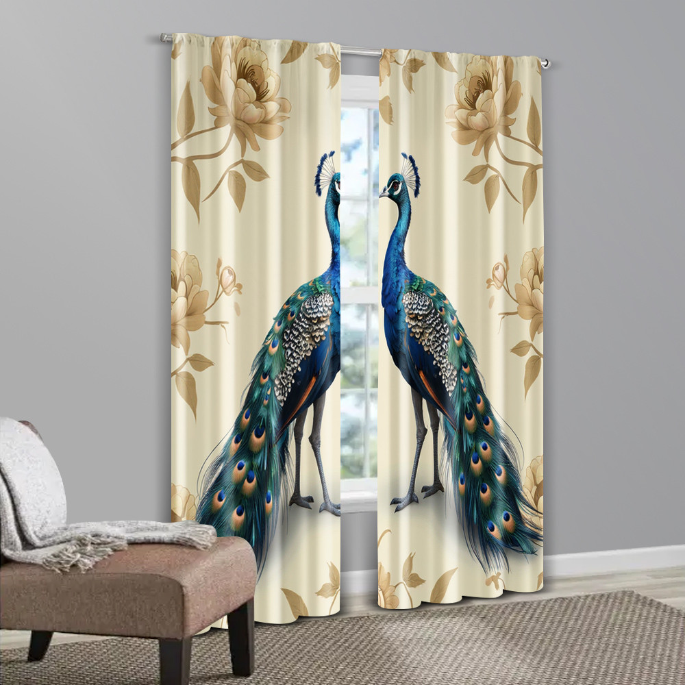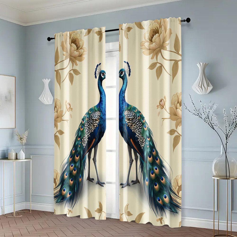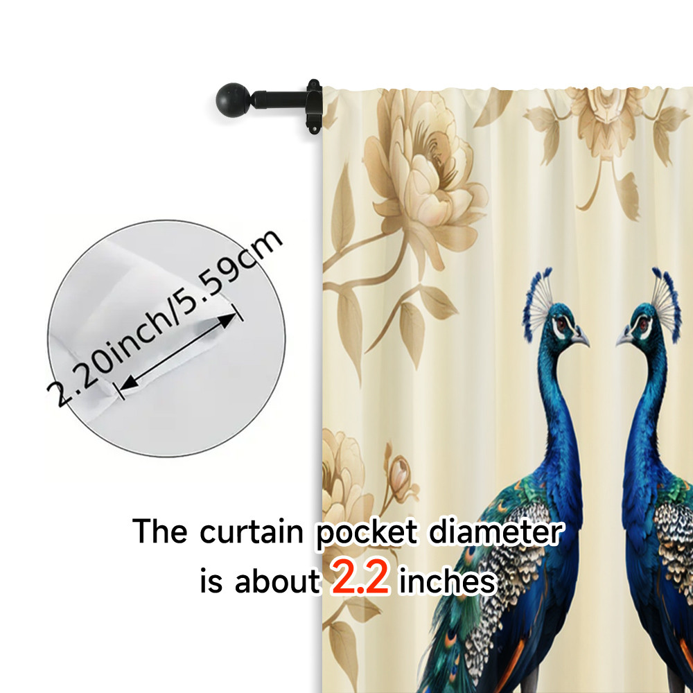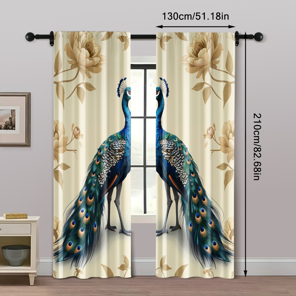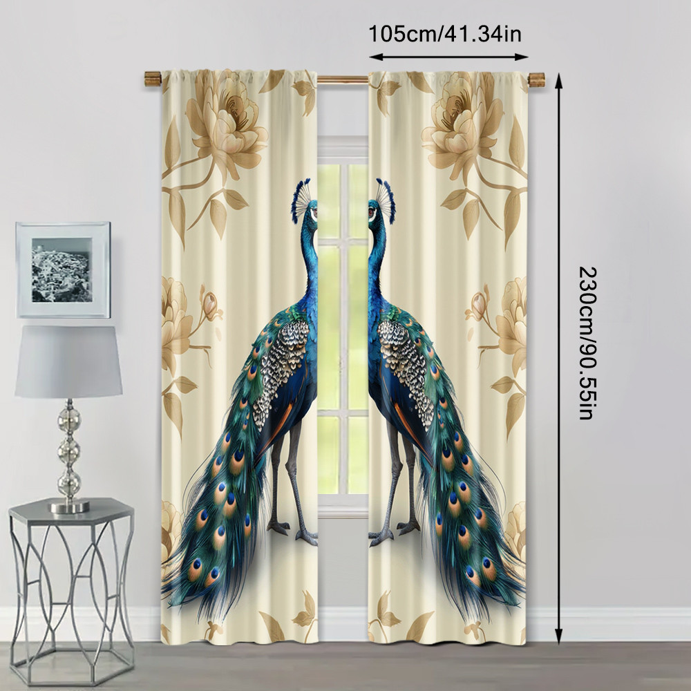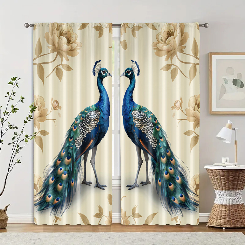 2 Peças , Conjunto De Cortina Pavão Dourado Poliéster Fácil Instalação (Sem Haste) Uso De Férias Para Quarto , Sala De E
