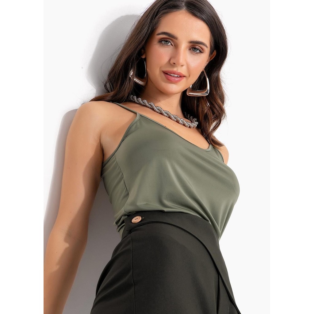Blusa Malha Fria Verde Oliva Verde Quintess