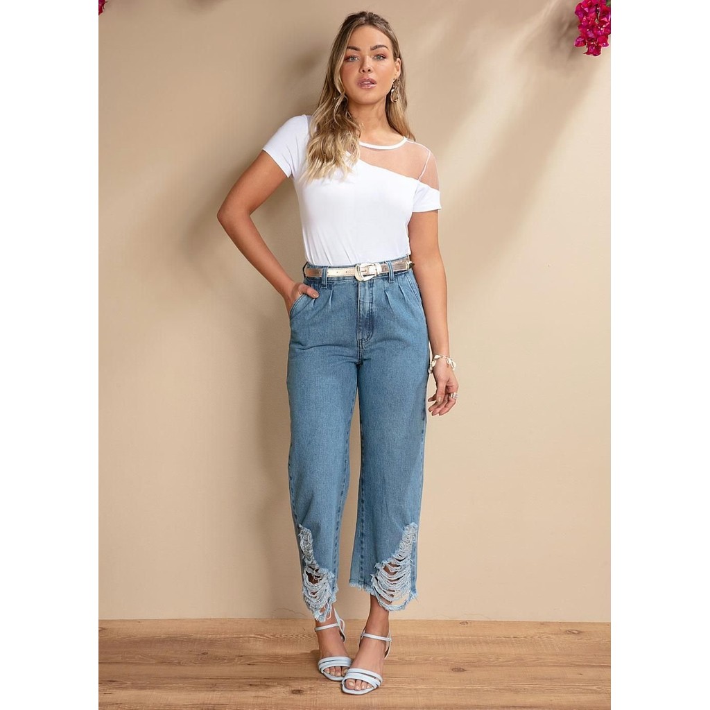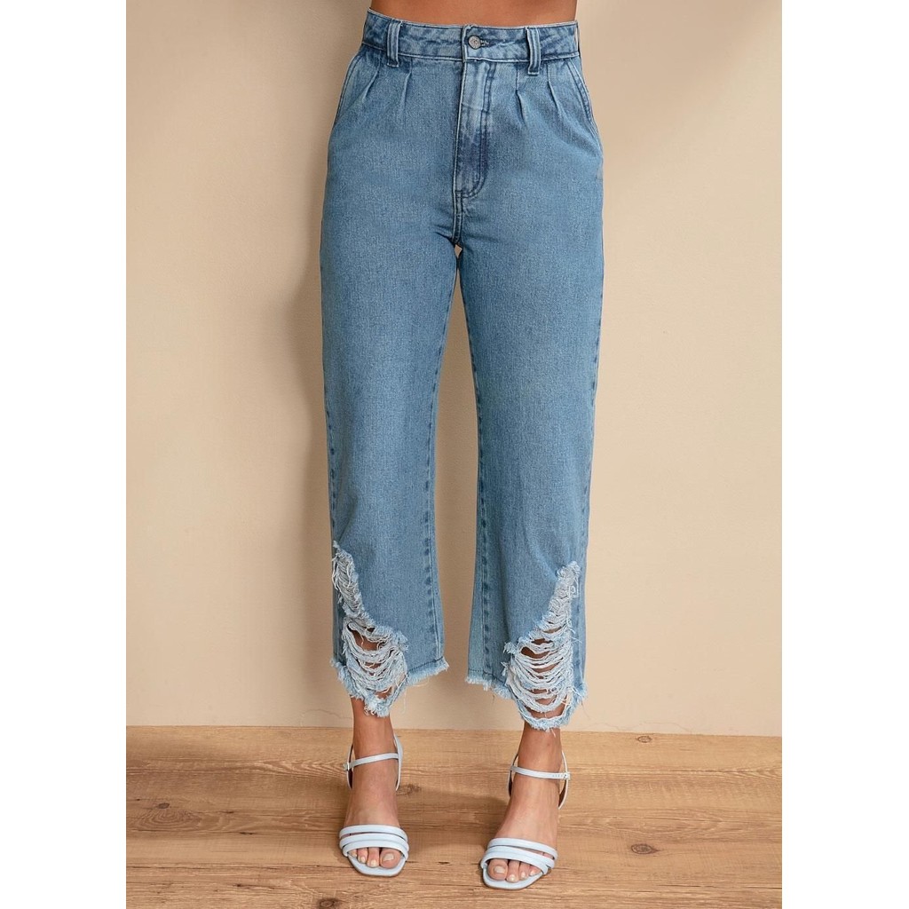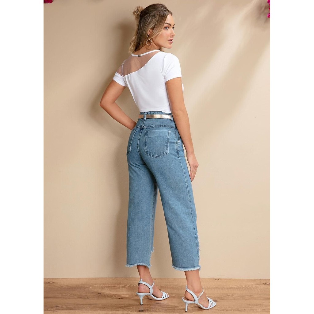 Calça Pantacourt Com Rasgados Azul Quintess