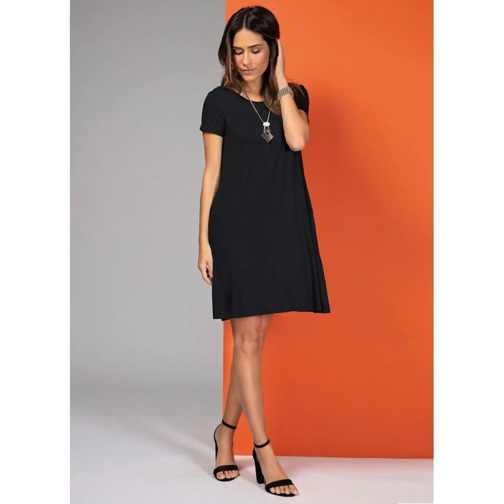 Vestido Com Bolsos E Mangas Curtas Preto Quintess