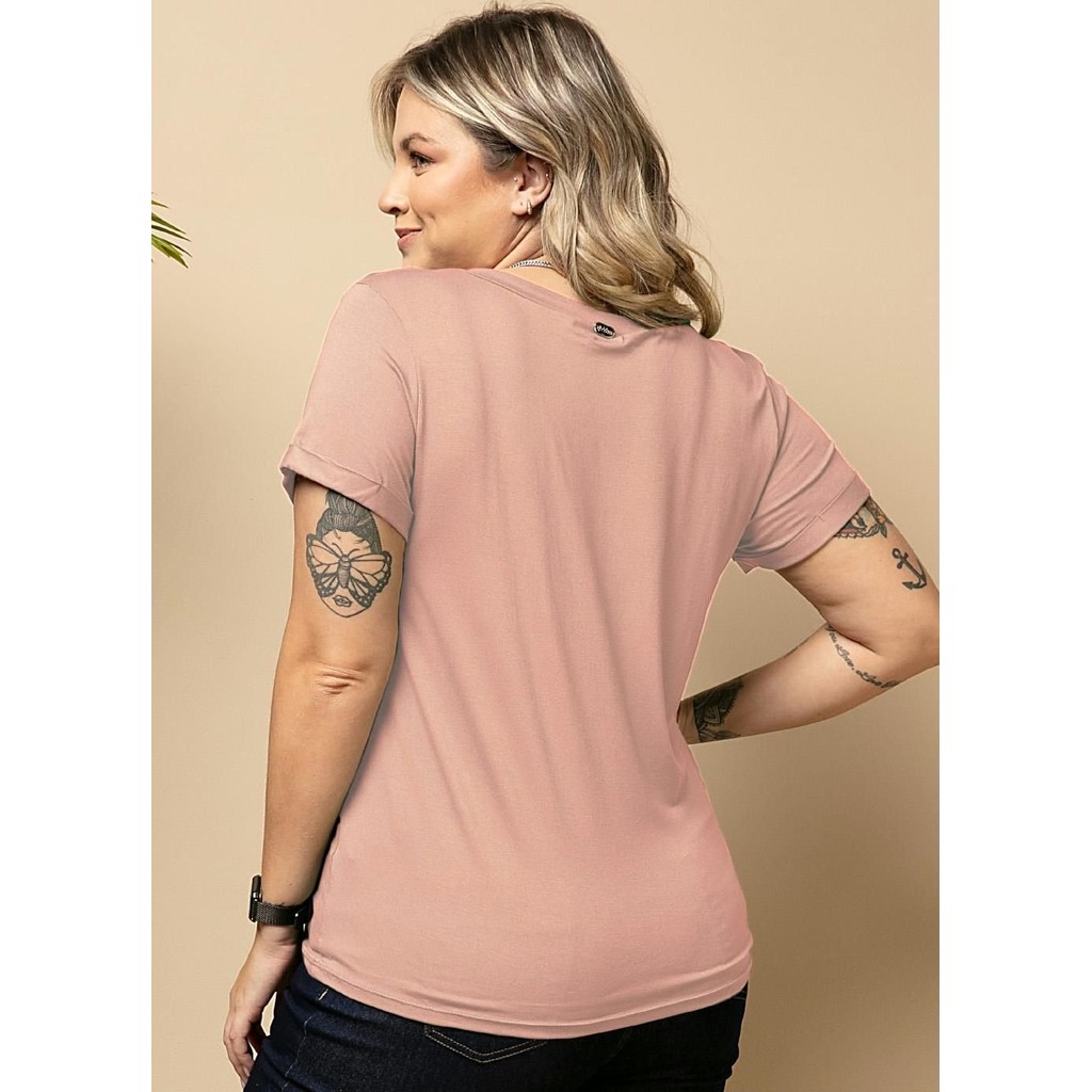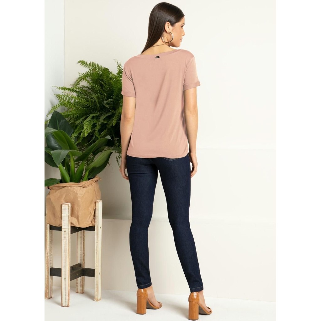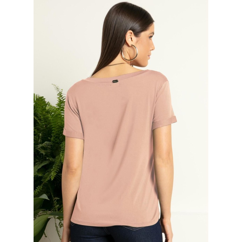 Blusa Com Decote V E Bolso Frontal Rosa Quintess