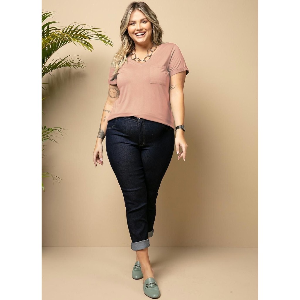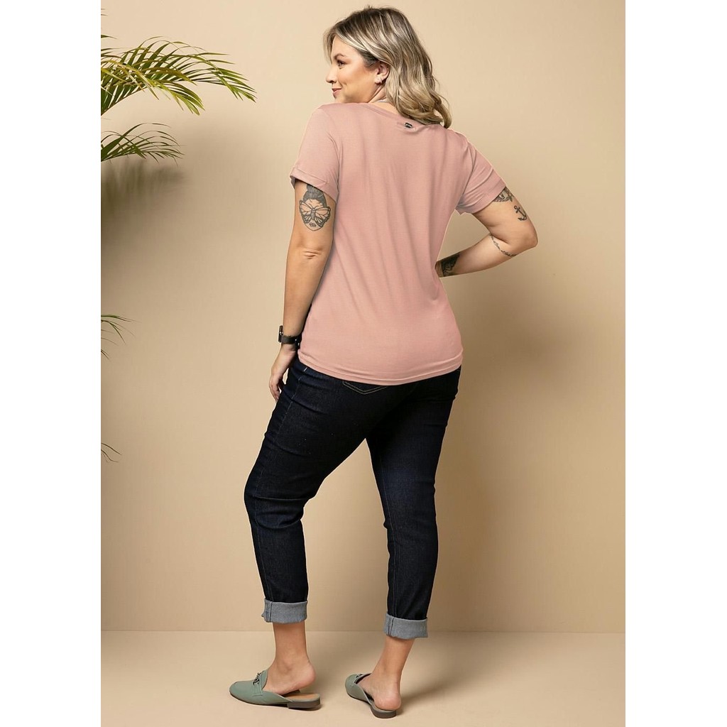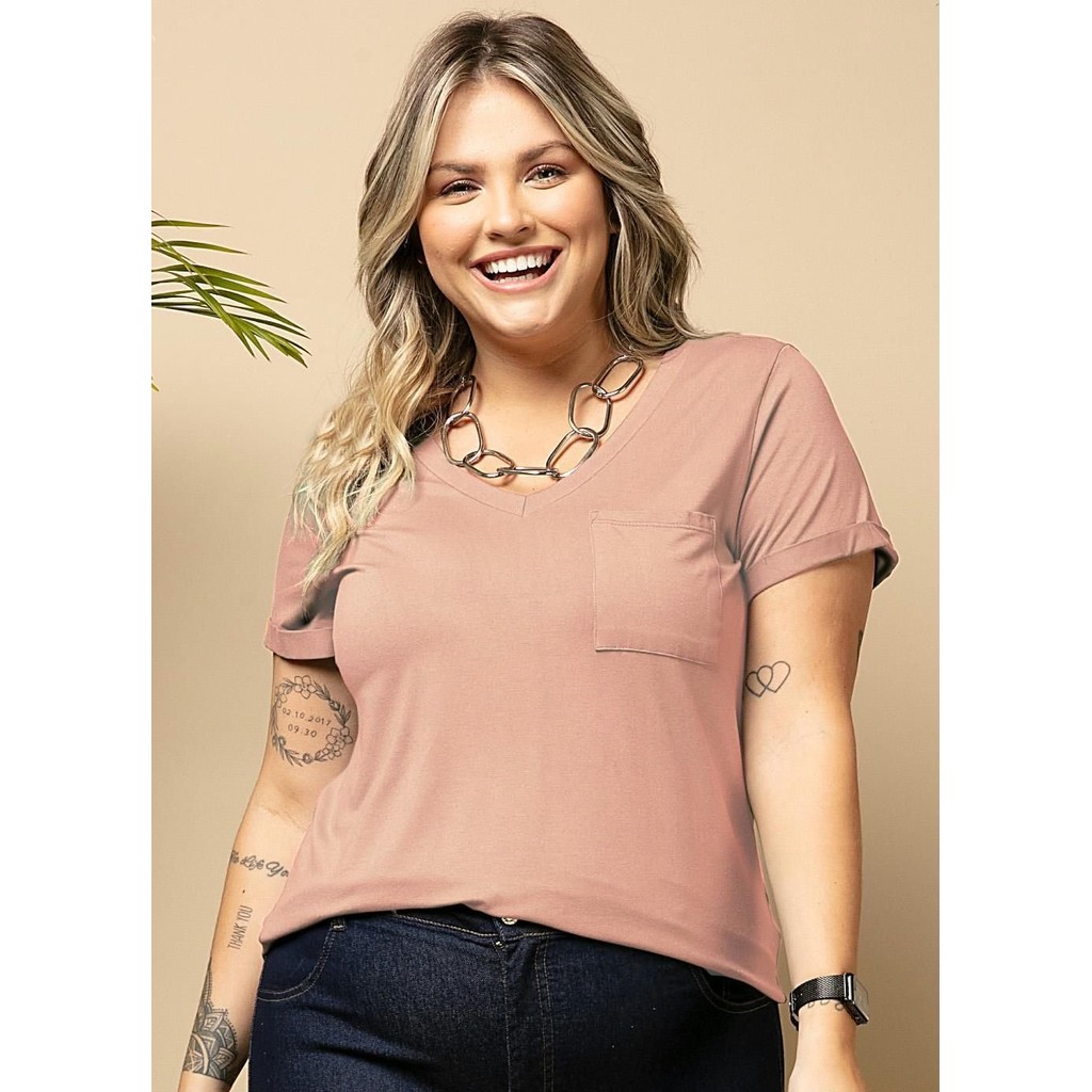 Blusa Com Decote V E Bolso Frontal Rosa Quintess