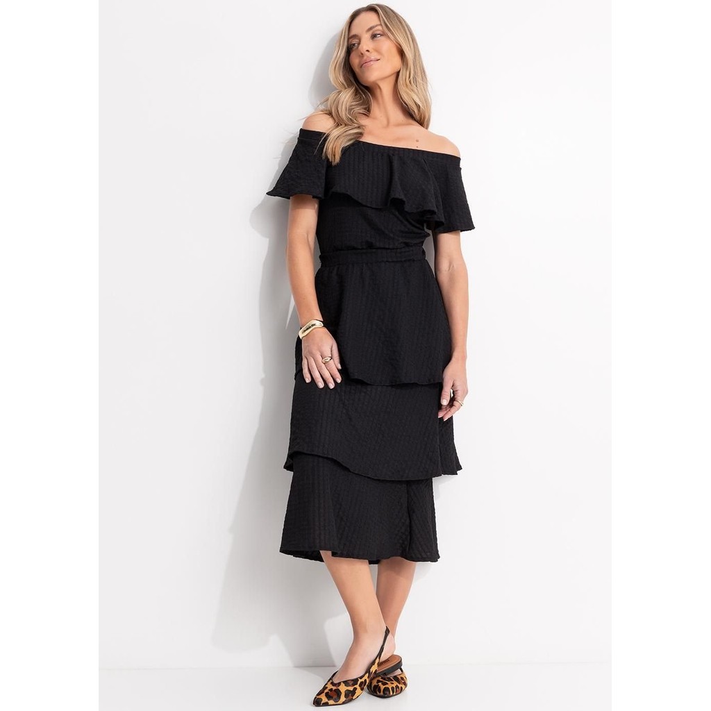 Saia Em Malha Canelada Texturizada Preta Quintess