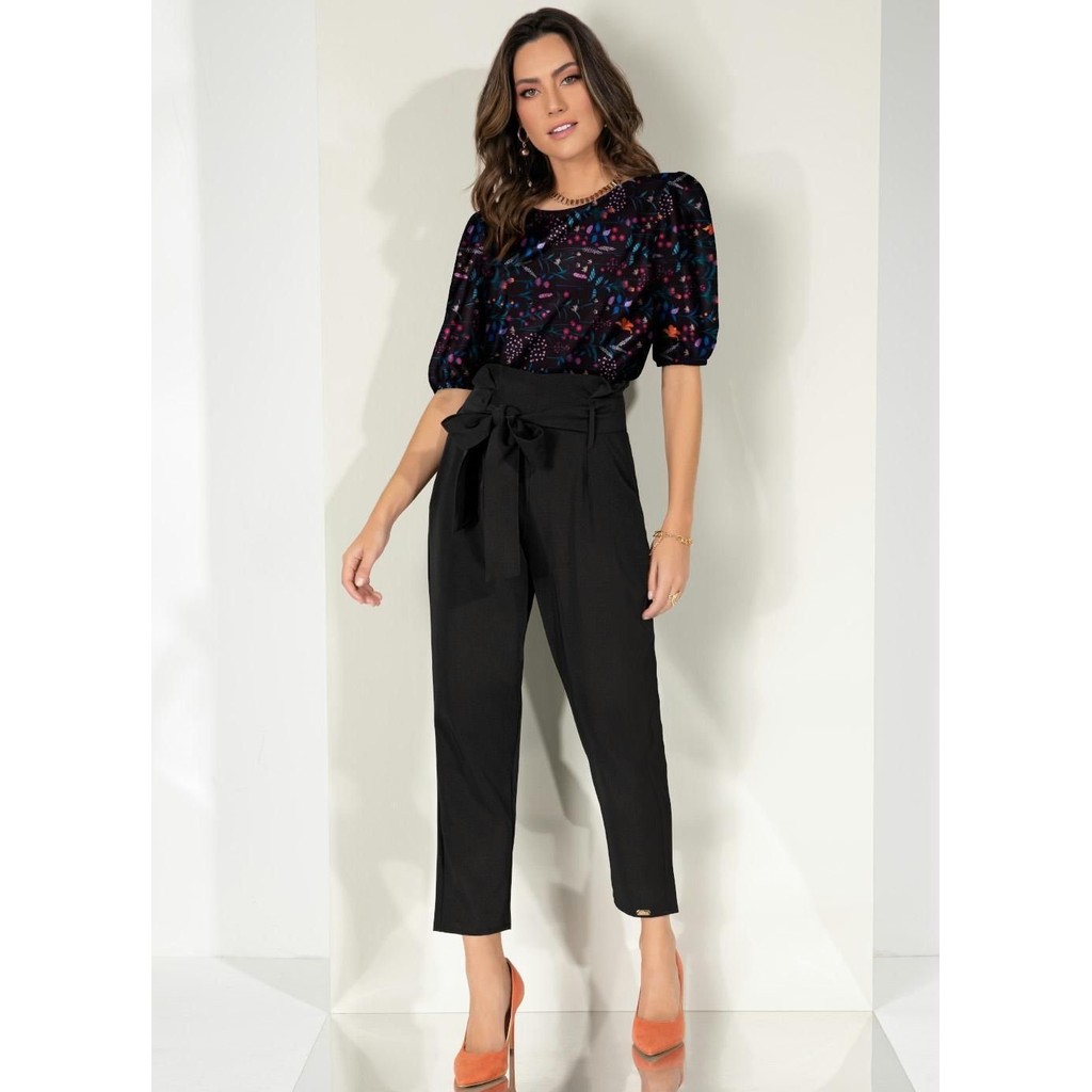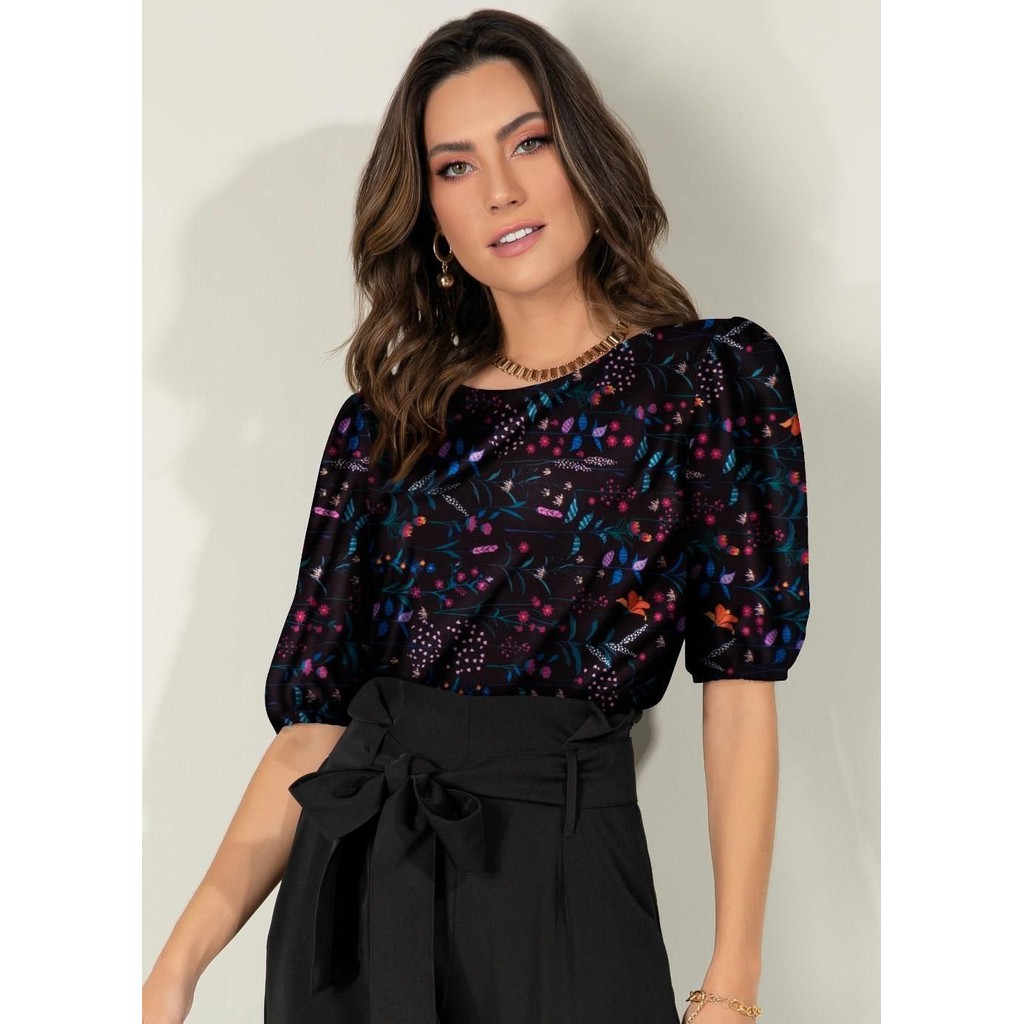 Blusa Com Mangas Bufantes Preto Quintess