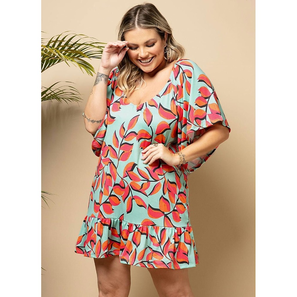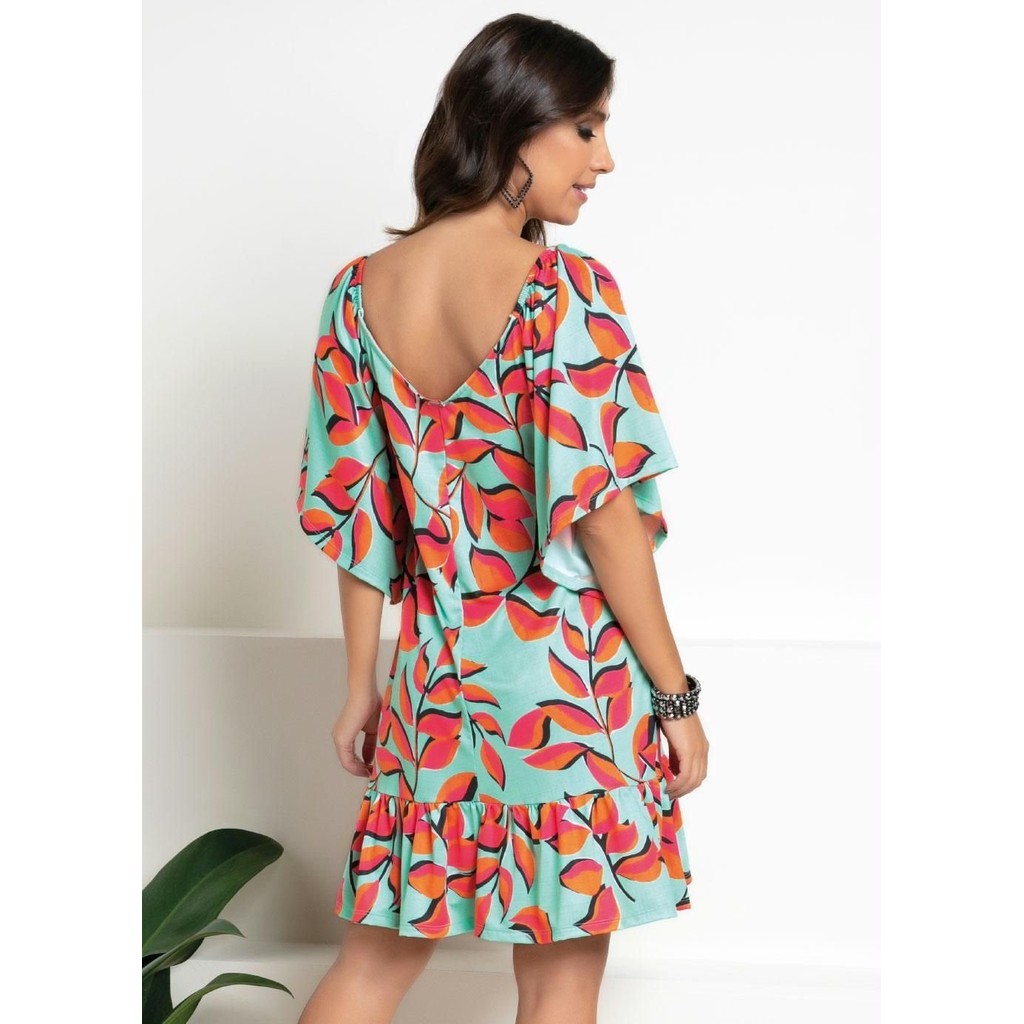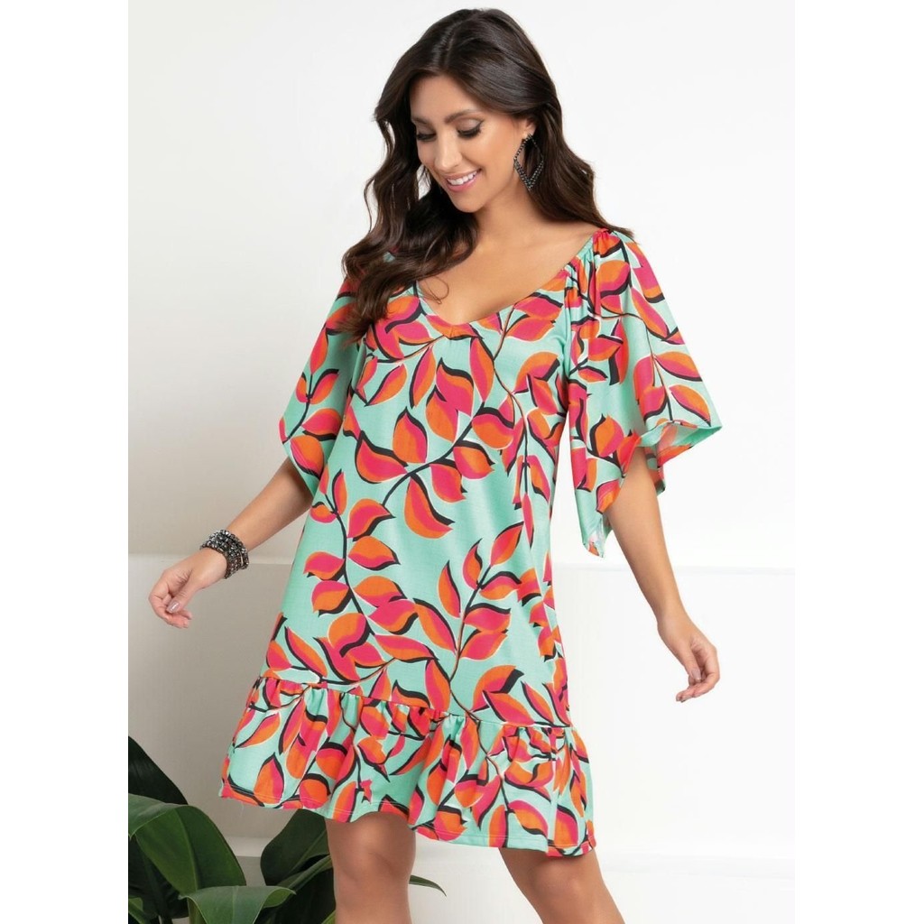 Vestido Curto Mangas Amplas 3/4 Verde Quintess