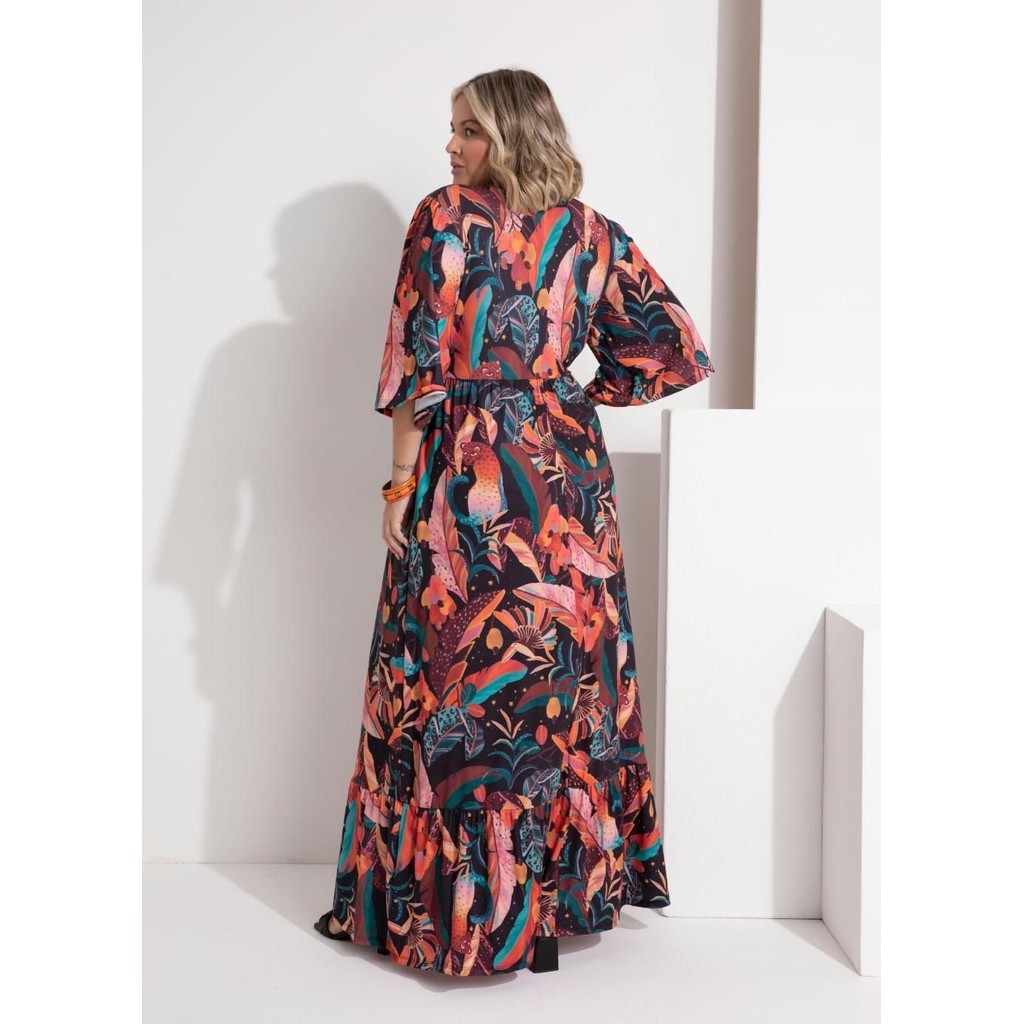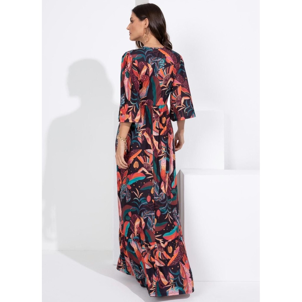 Vestido Longo Com Mangas Amplas Preto Quintess