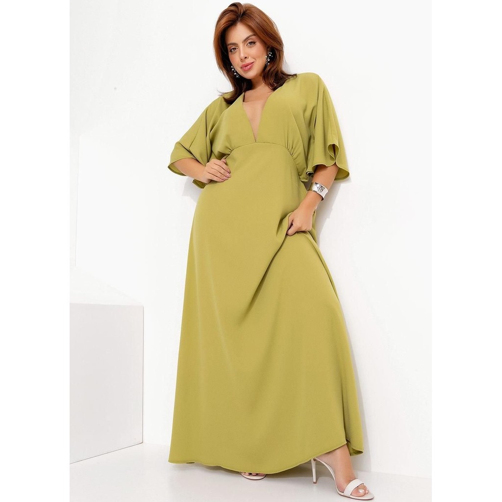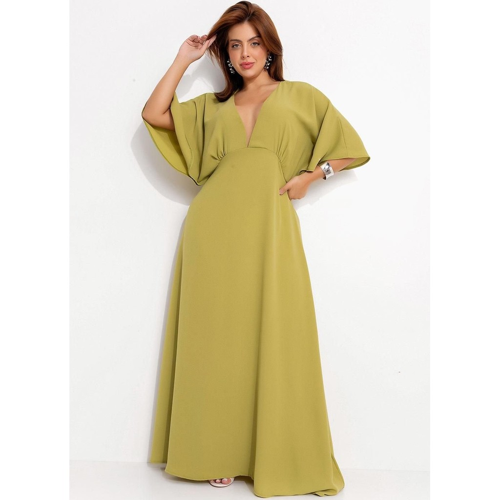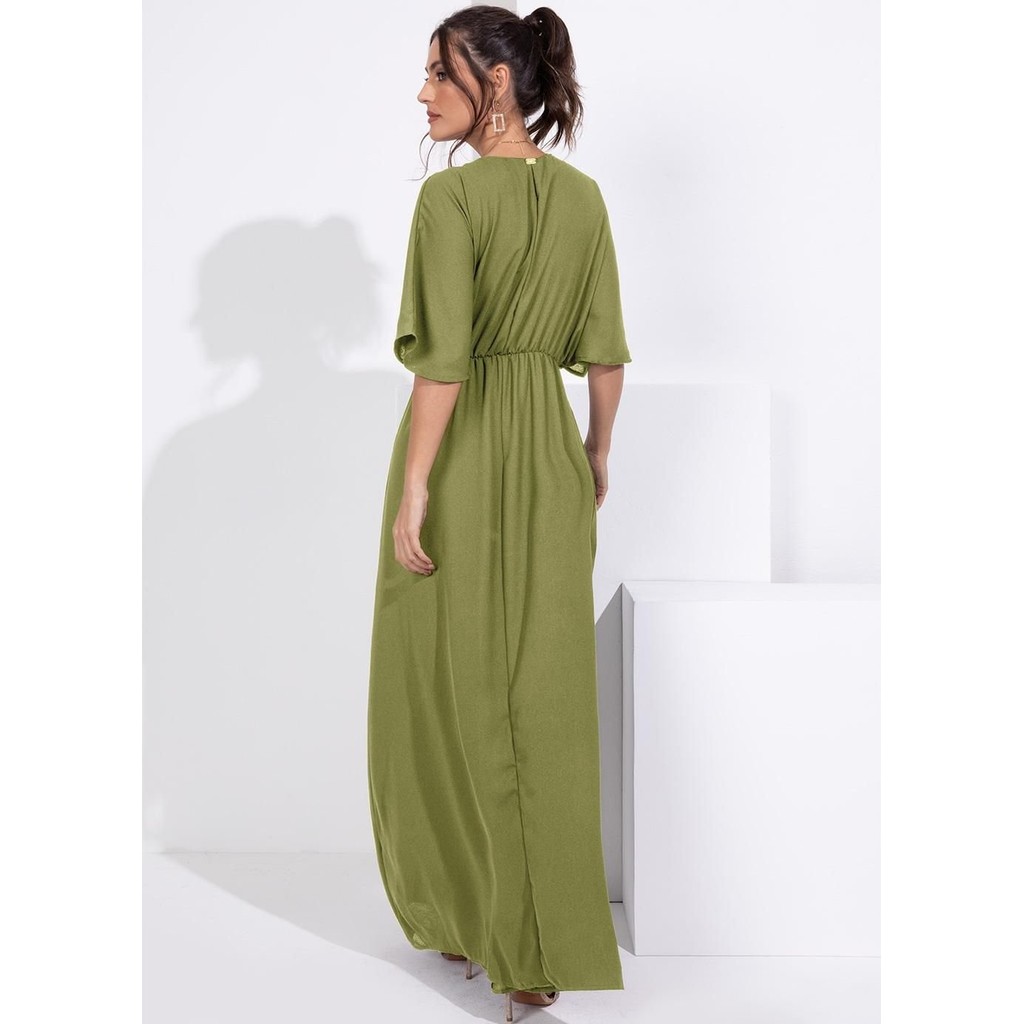 Vestido Em Crepe Plano Verde Quintess