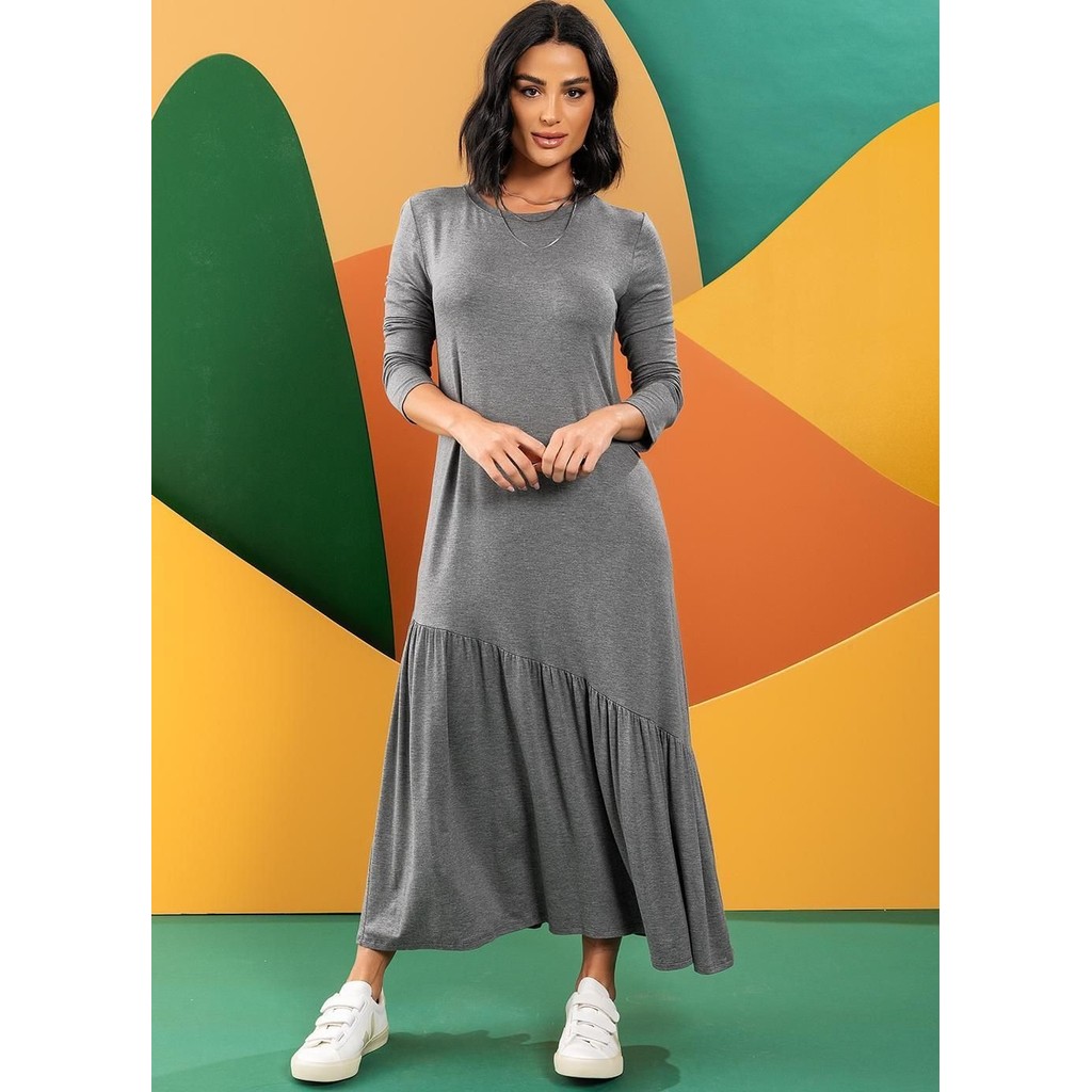 Vestido Em Malha De Viscose Cinza Quintess