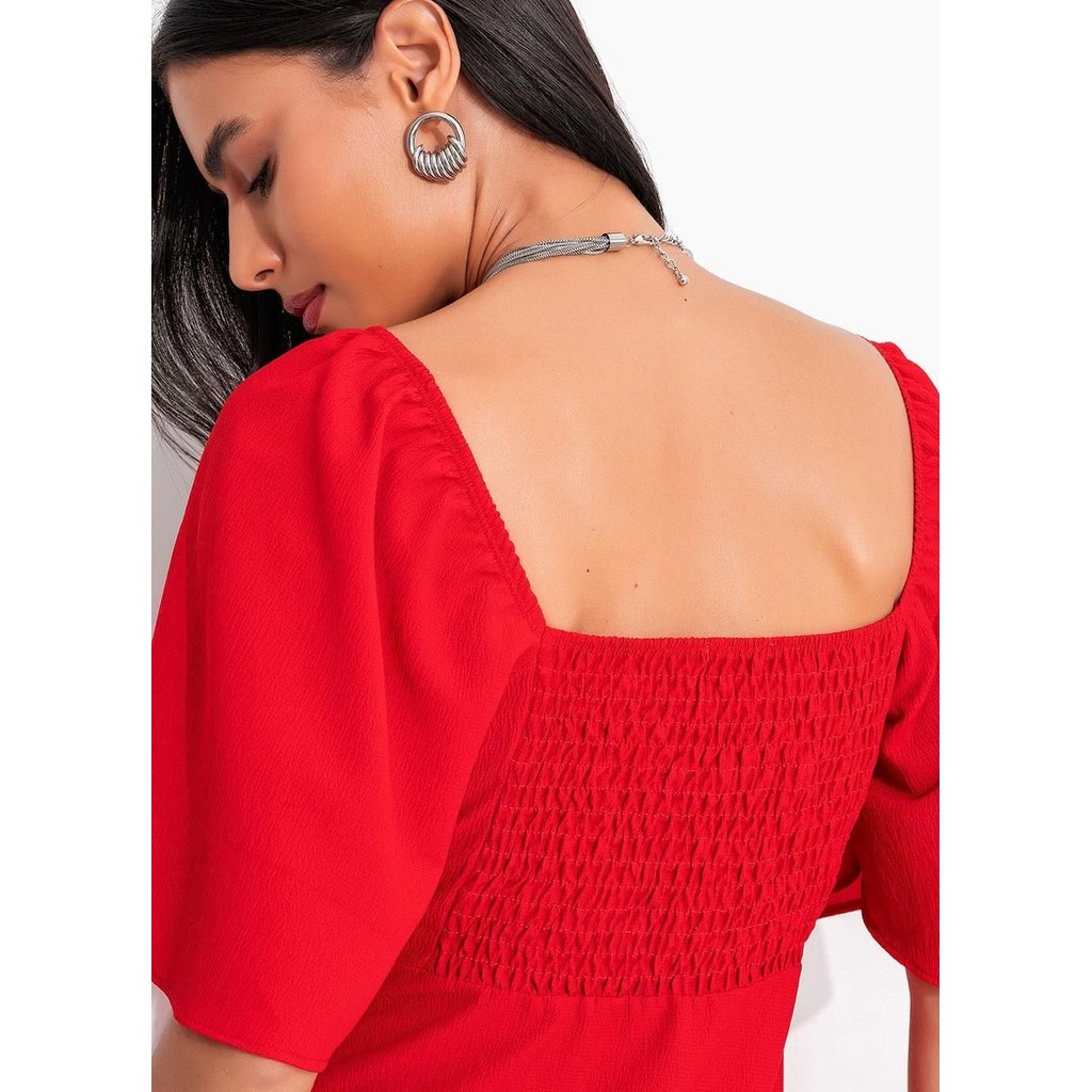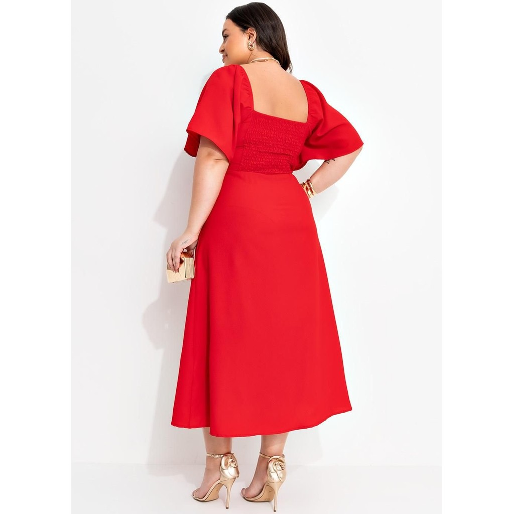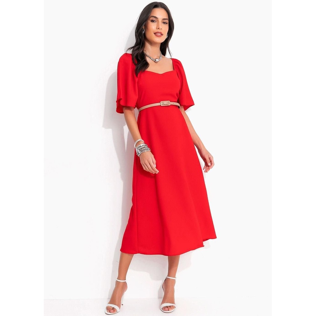 Vestido Em Crepe Plano Vermelho Quintess