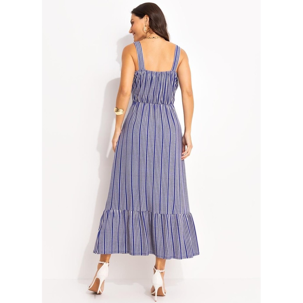 Vestido Em Malha De Viscose Listrado Azul Quintess