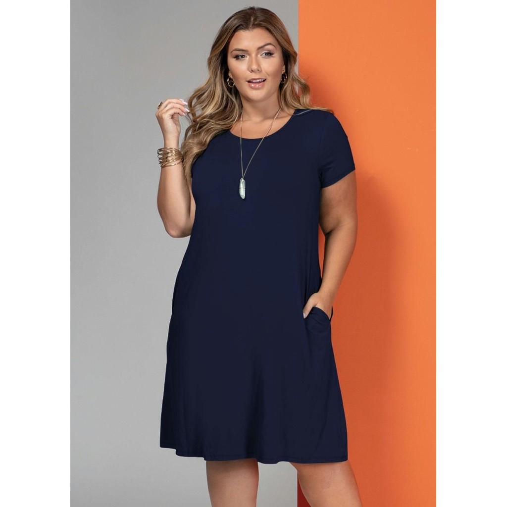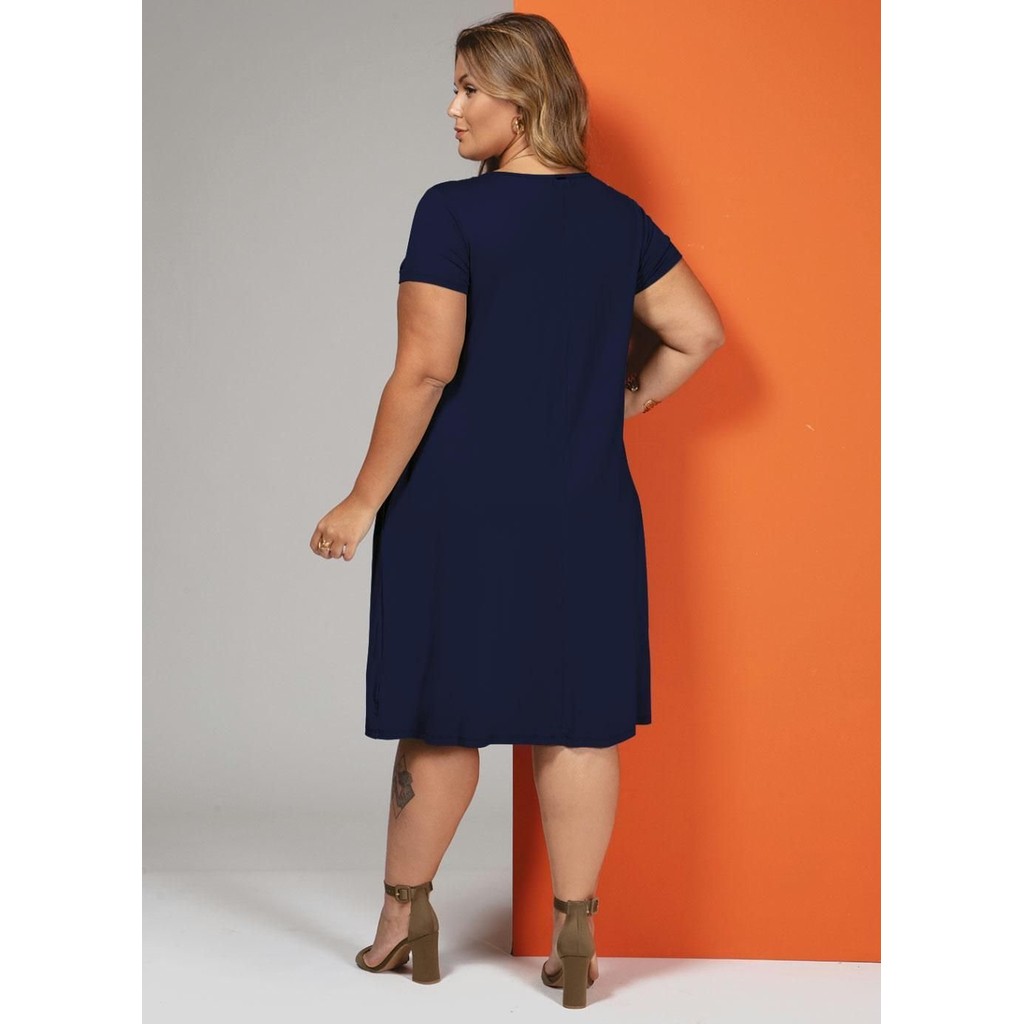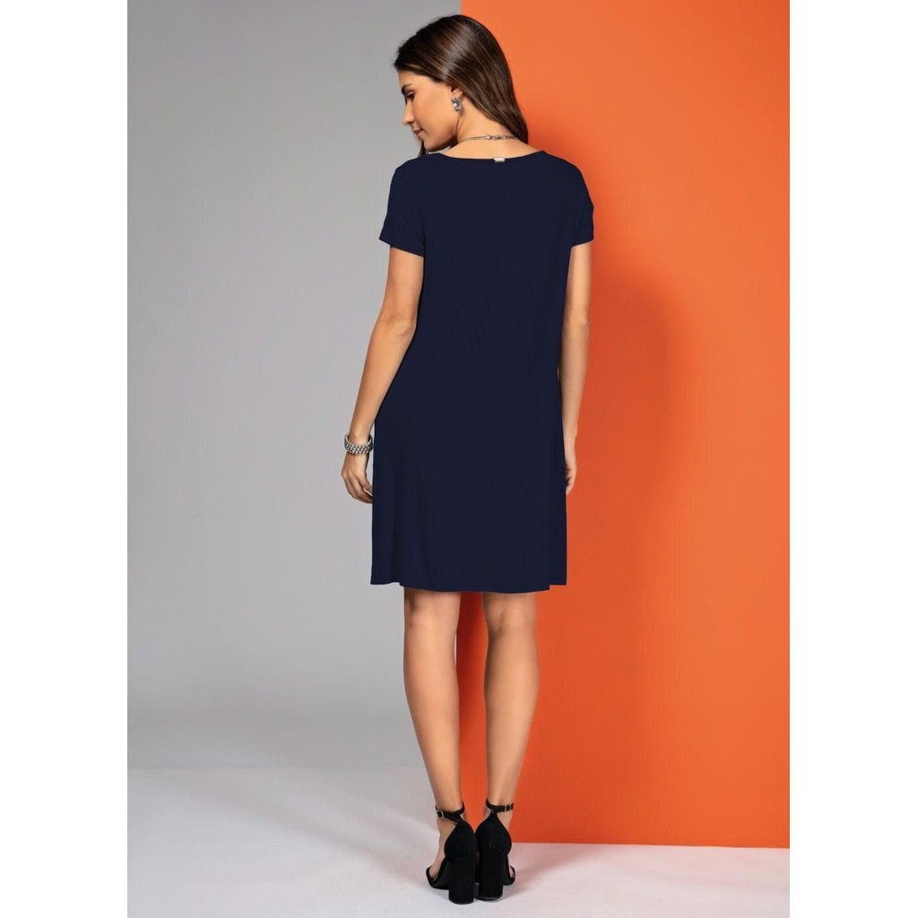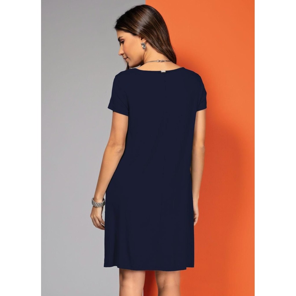 Vestido Com Bolsos E Mangas Curtas Azul Quintess