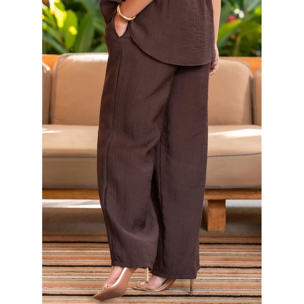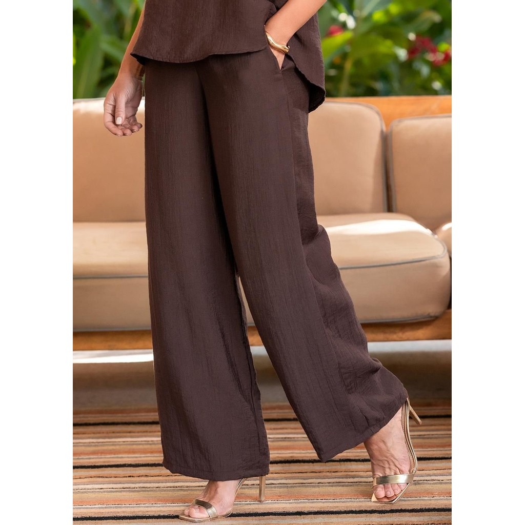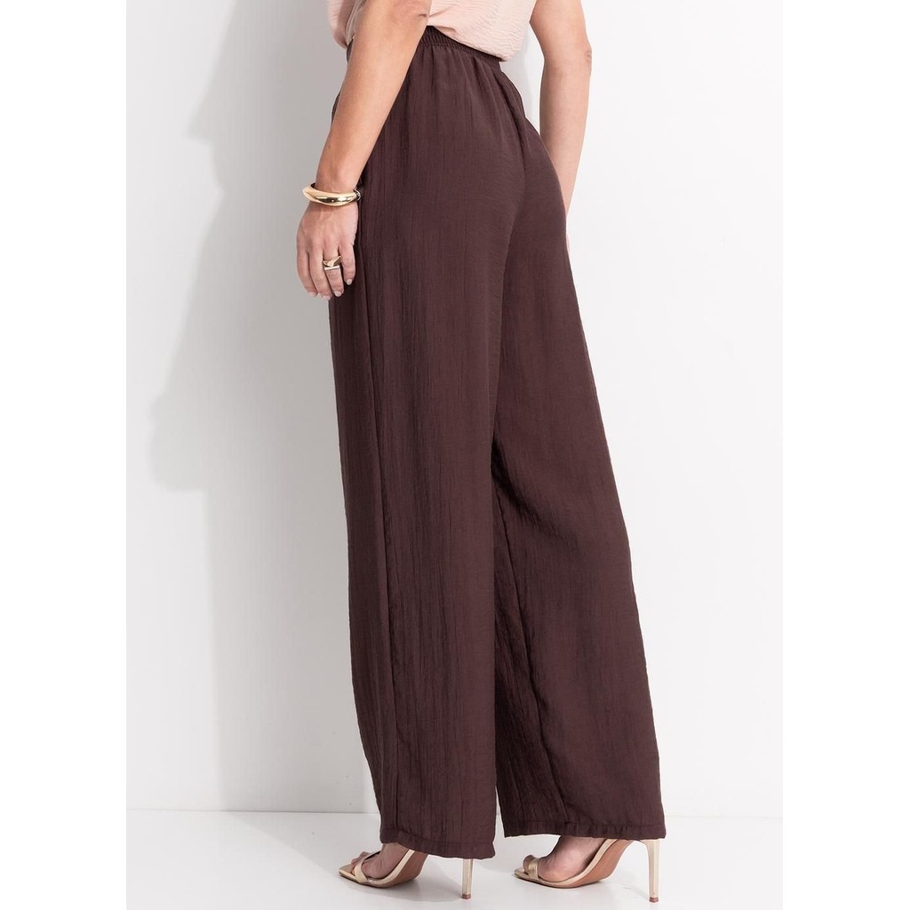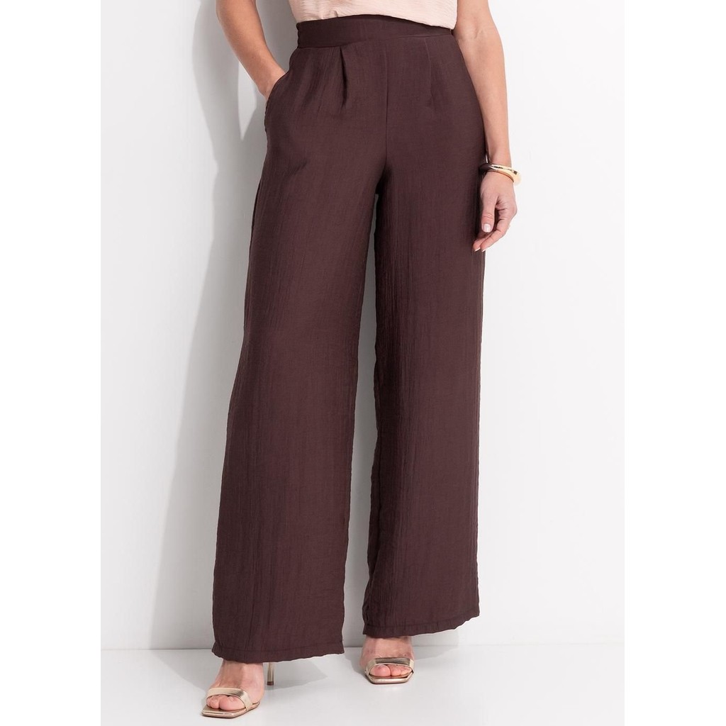 Calça Em Viscose Plana Sarjada Marrom Quintess