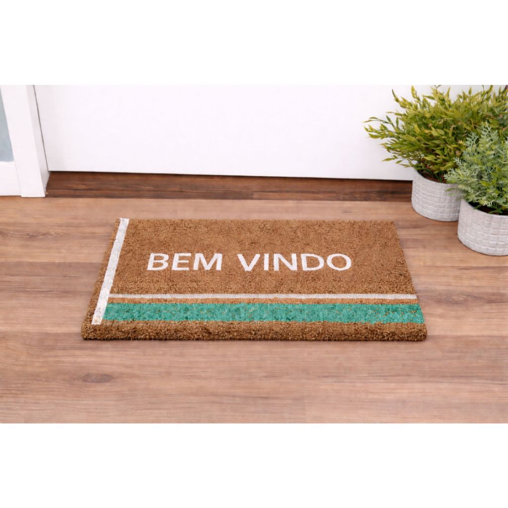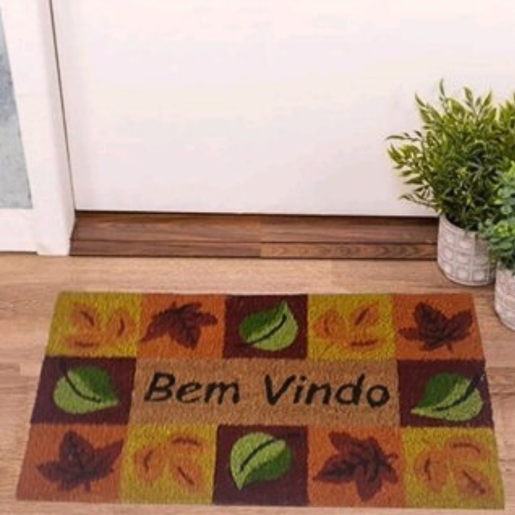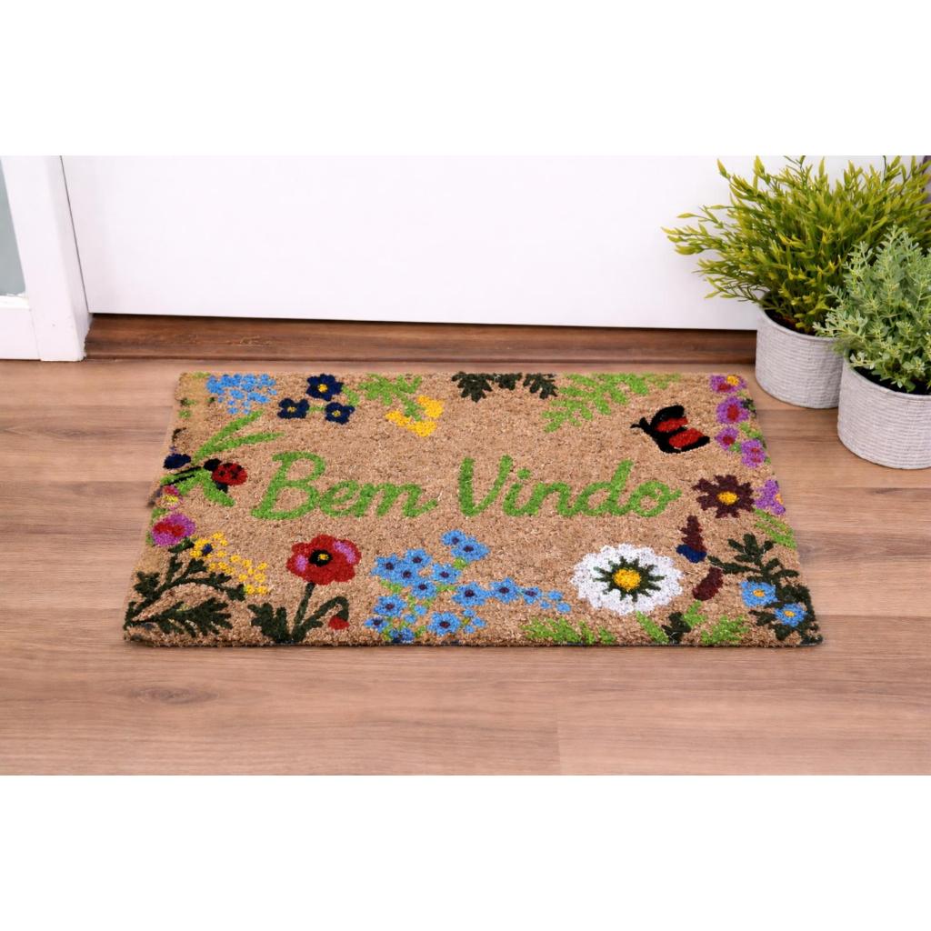 Tapete Capacho Para Porta De Entrada Bem Vindo Fibra De Coco Antiderrapante 33x60cm Resistente