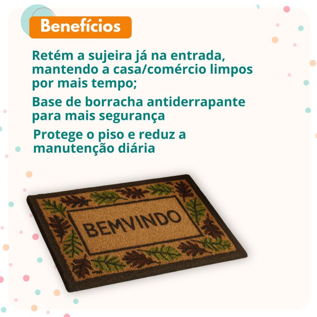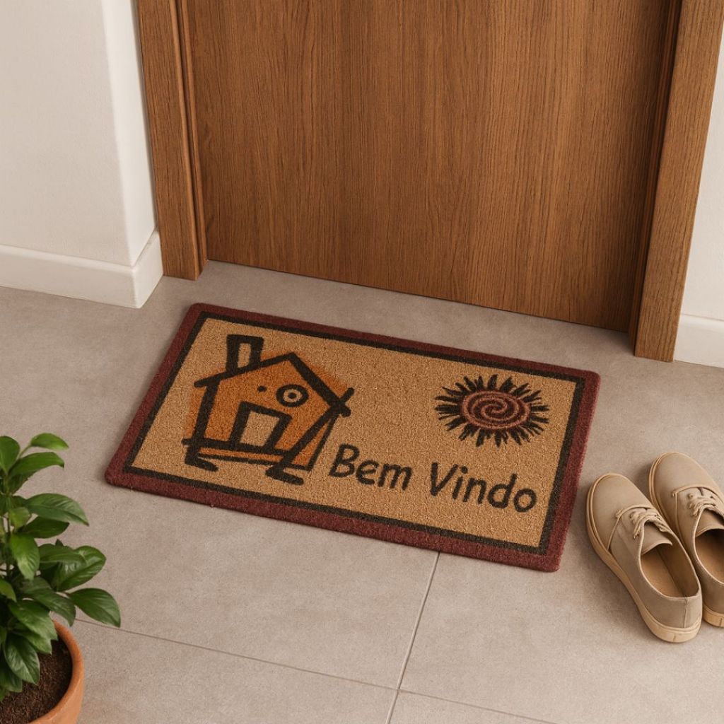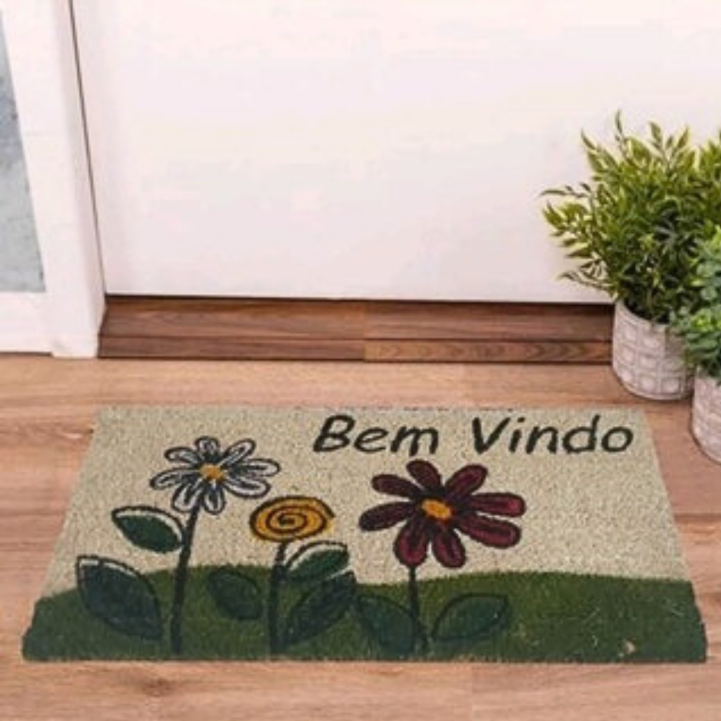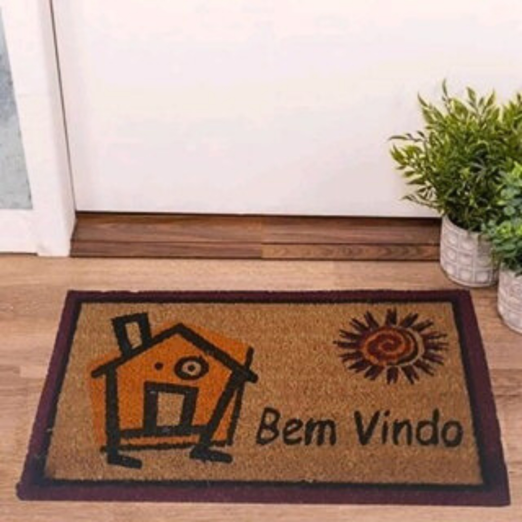 Tapete Capacho Para Porta De Entrada Bem Vindo Fibra De Coco Antiderrapante 33x60cm Resistente