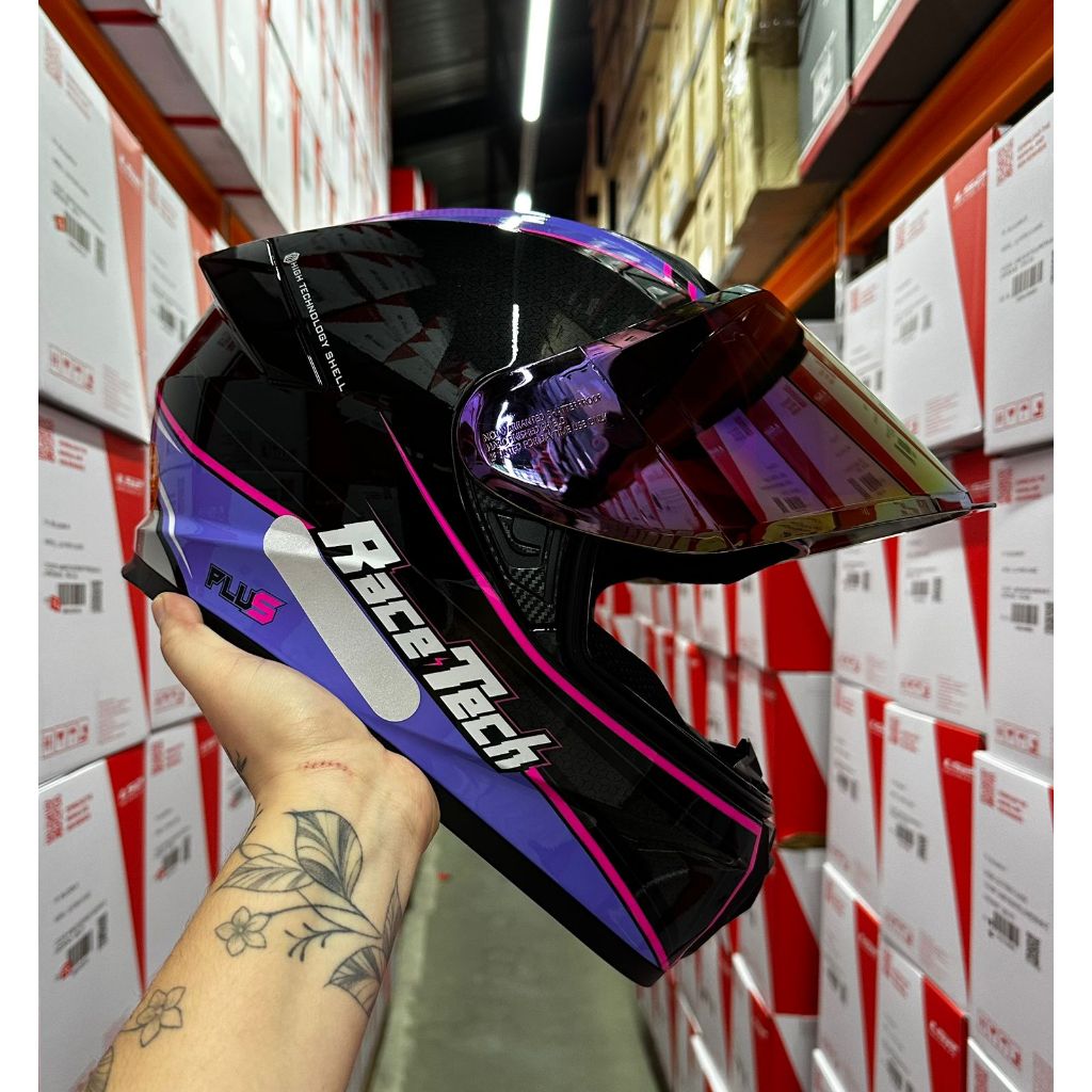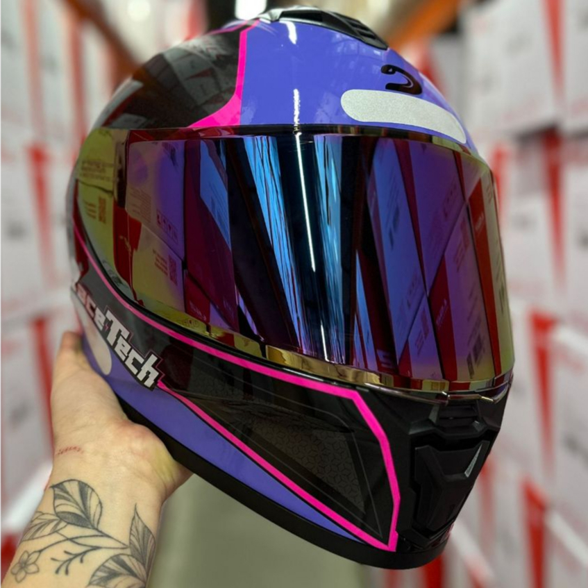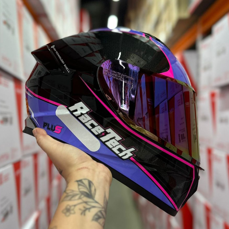 CAPACETE RACE TECH SUPER OFERTA EXCLUSIVO HIT PLUS PRETO/ROXO + VISEIRA CRISTAL + VISEIRA ROXA CAMALEÃO + BRINDE TOP