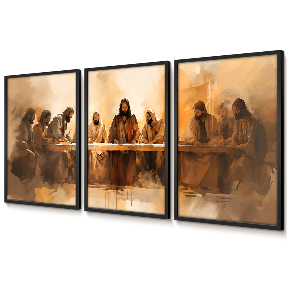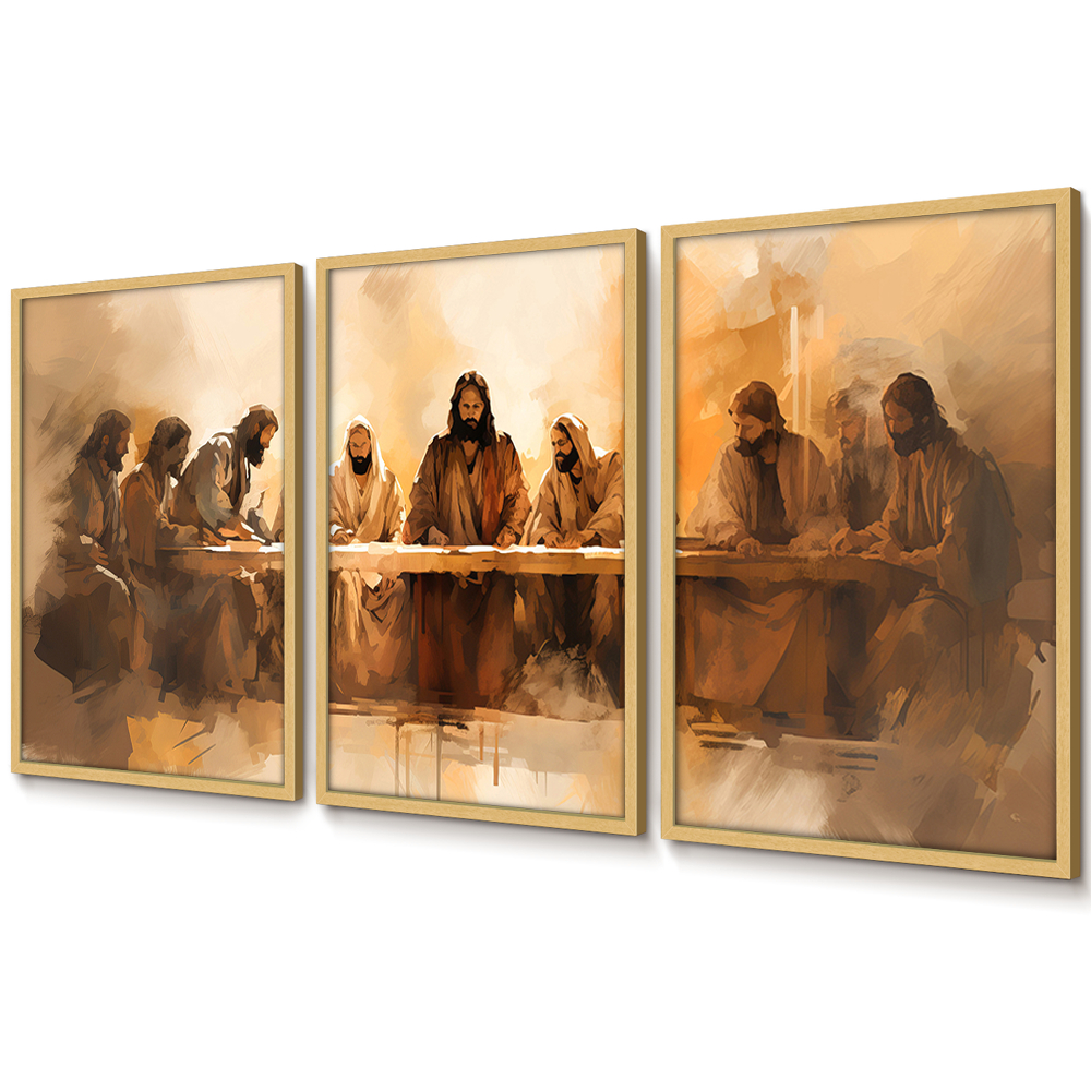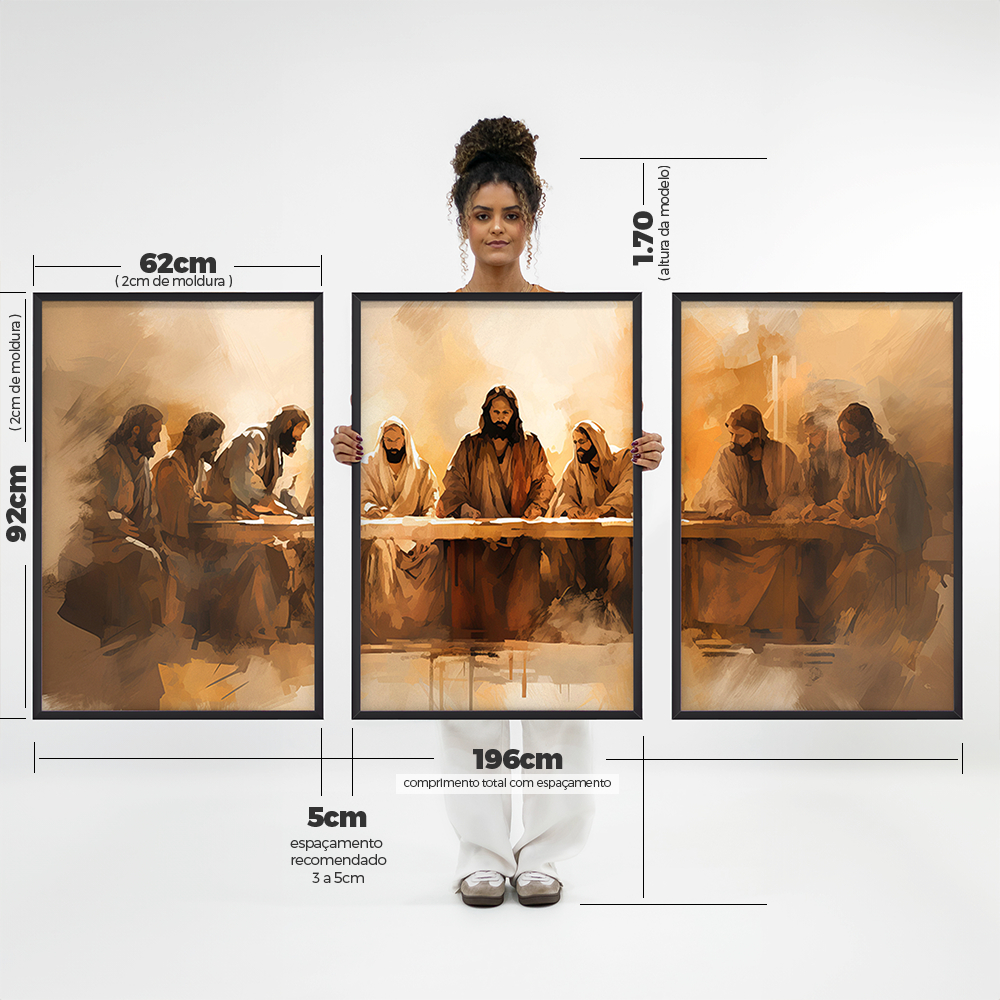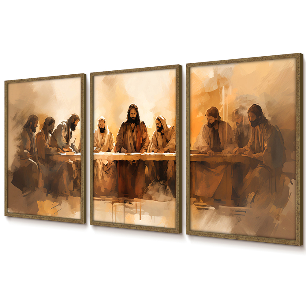 Quadros Decorativos Sala Quarto Grande Trio Com Moldura E Vidro Arte Santa Ceia Jesus E Apóstolos
