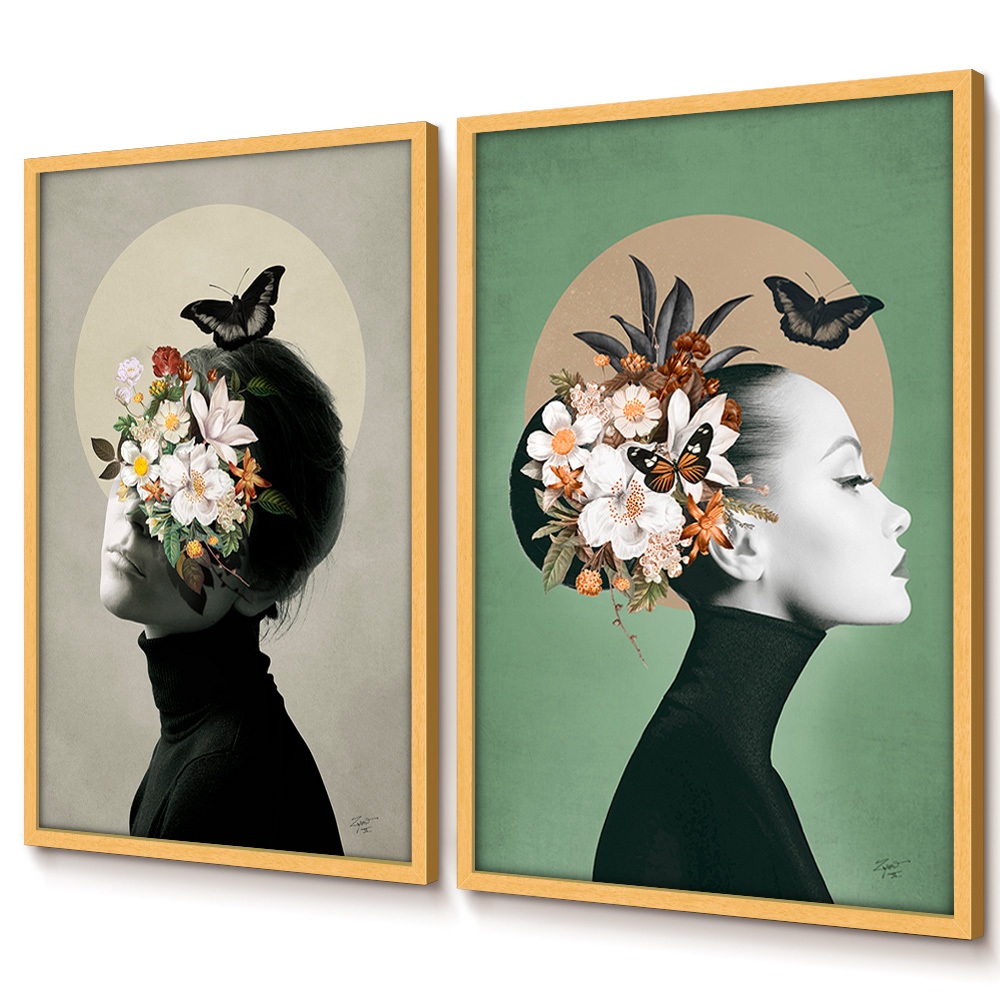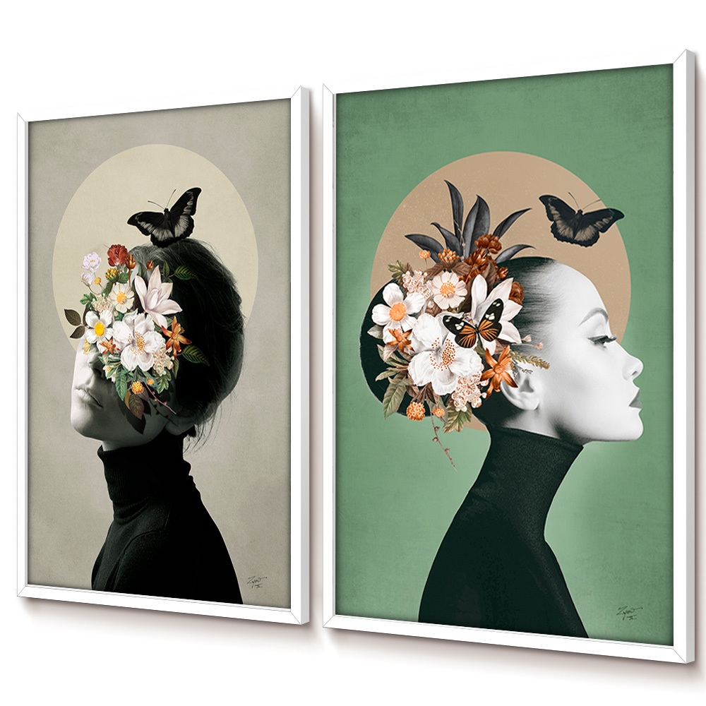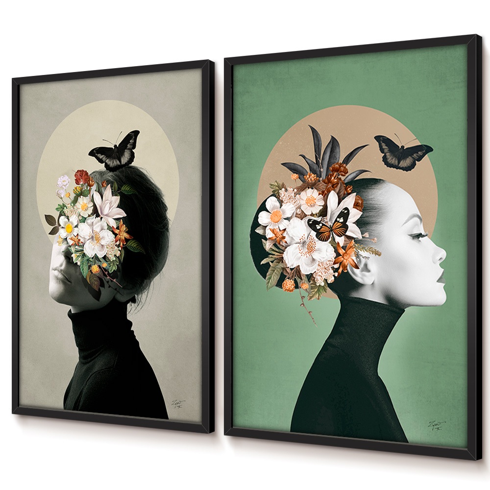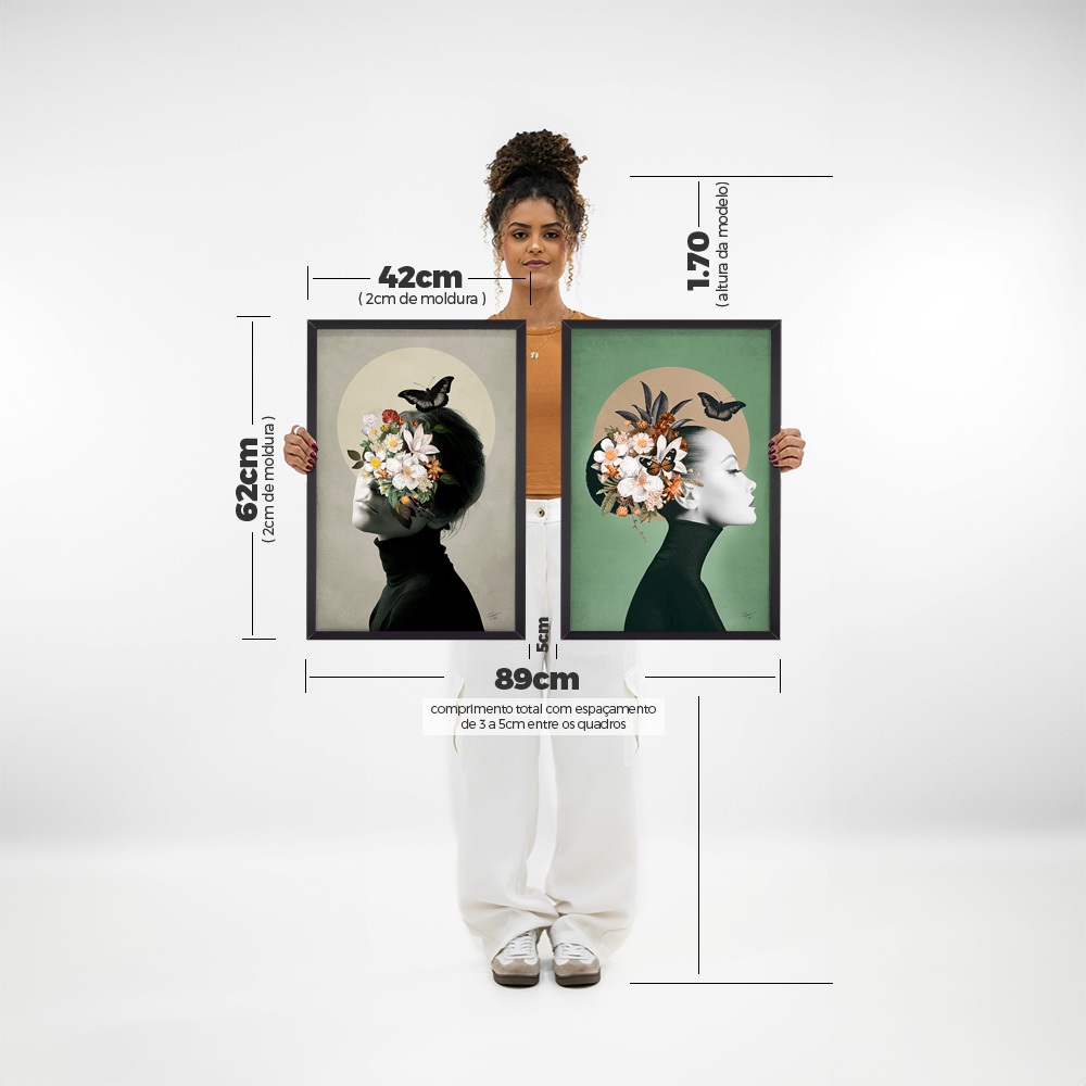 Quadros Decorativos Sala Quarto Casal Com MOLDURA Duo Floral Colagem Mulheres Flores Damas de Preto