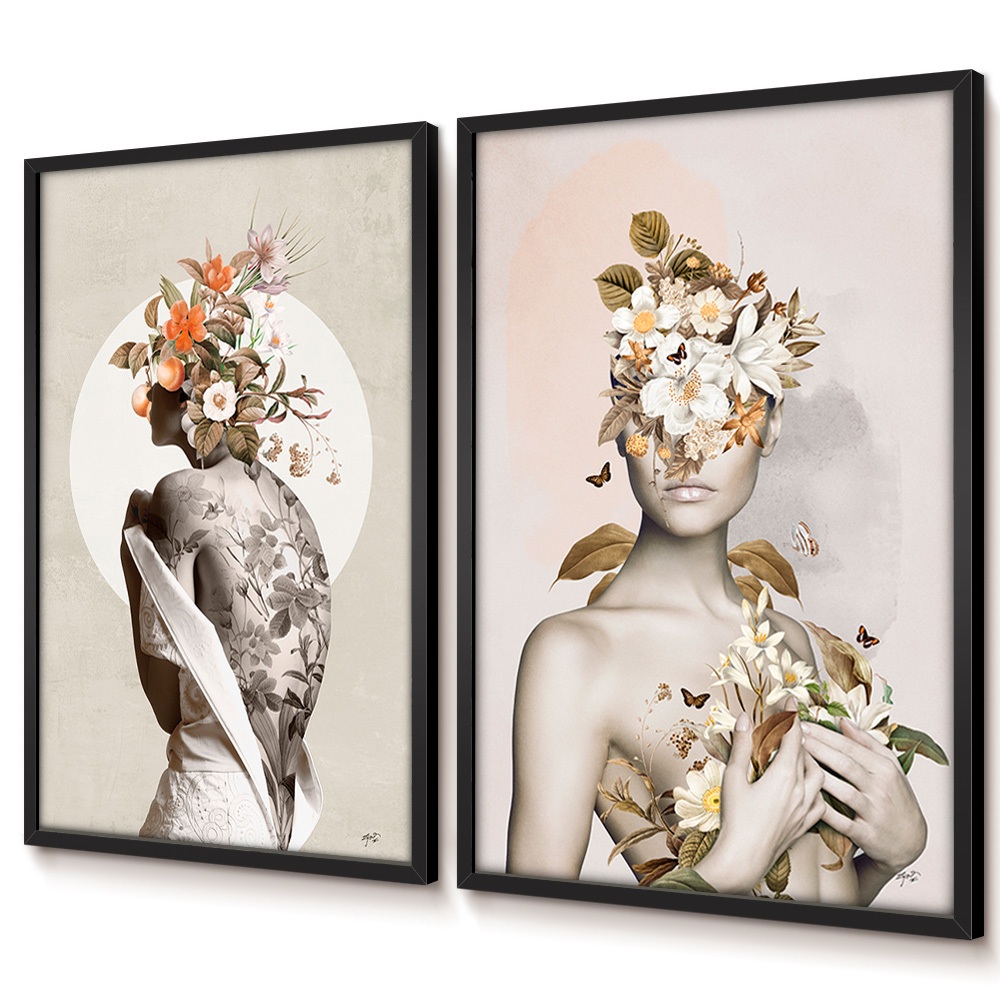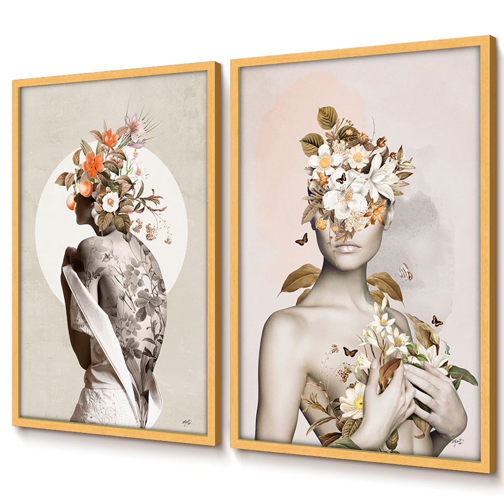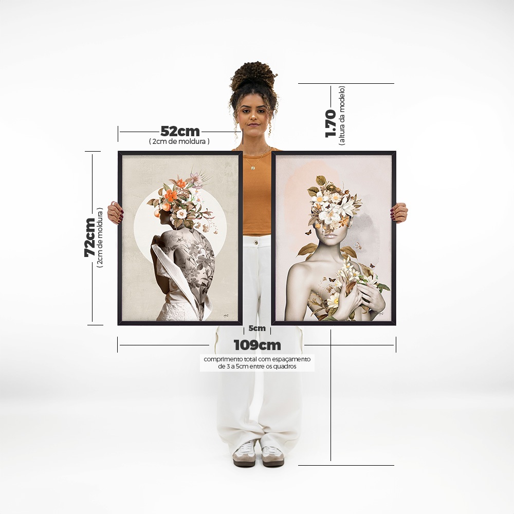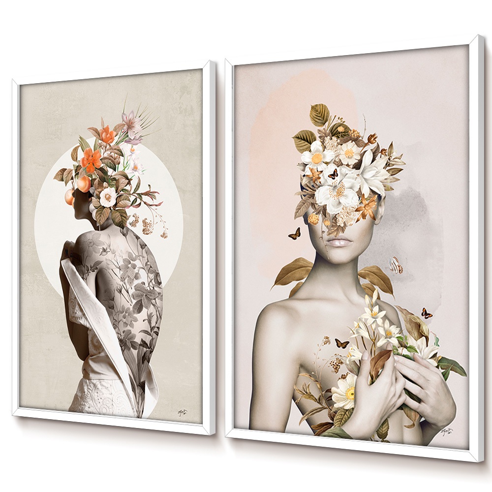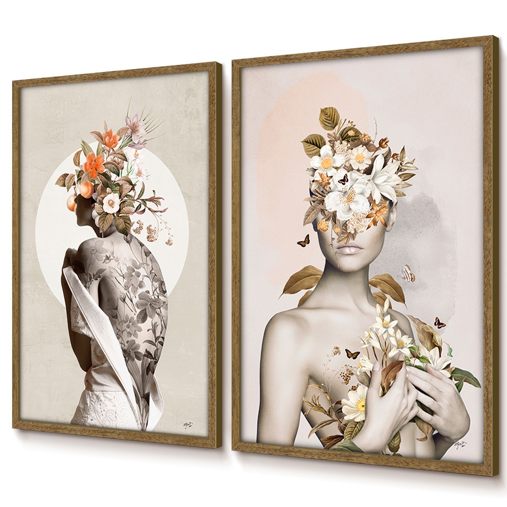 Quadros Decorativos Sala Quarto Escritório Com Moldura Duo Floral Colagem Das Flores Opção Com Vidro